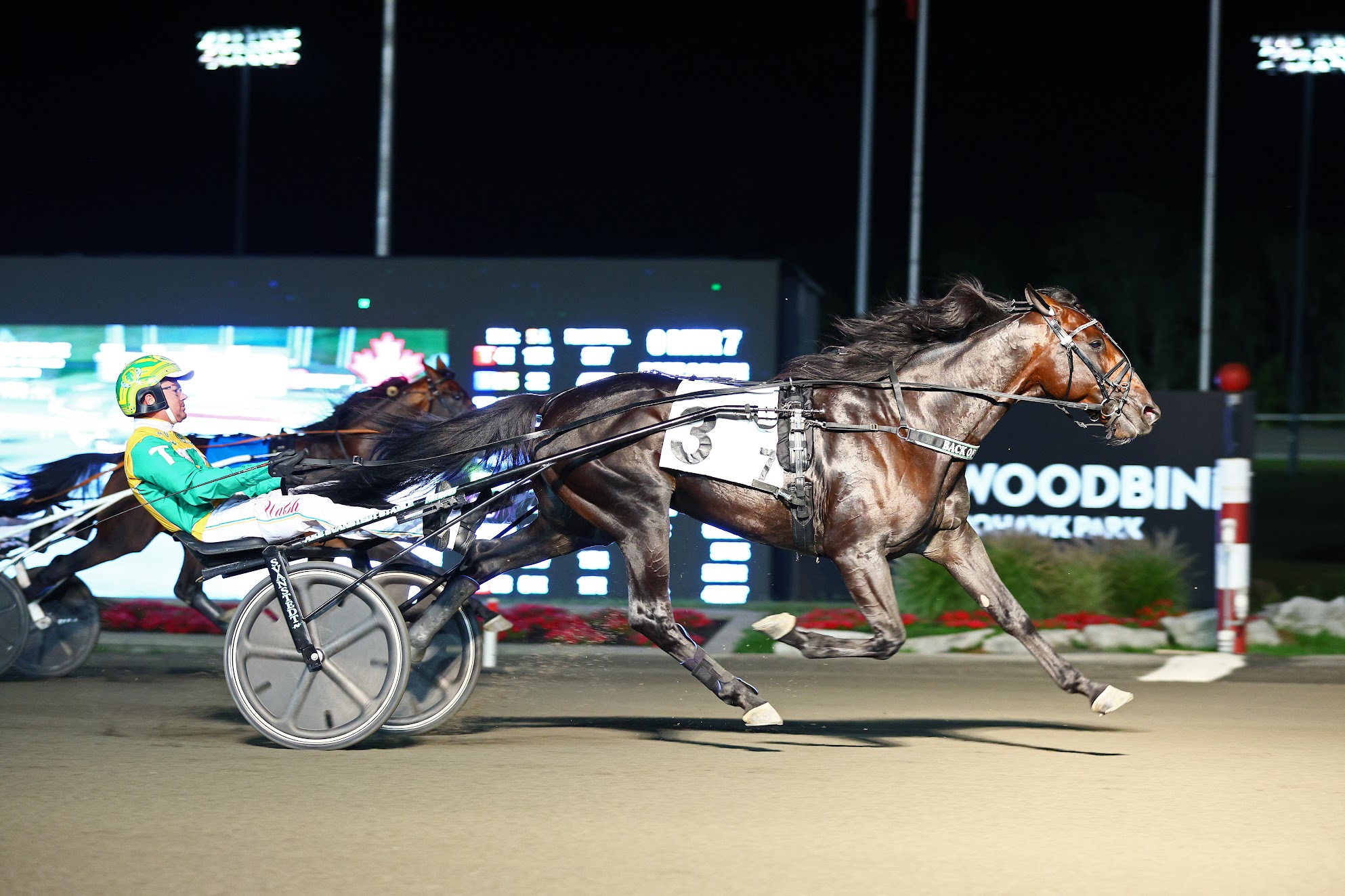 MILTON, September 3, 2022 – Back Of The Neck pulled off the 9-1 upset in another top-shelf edition of the $610,000 Maple Leaf Trot, stopping the clock in 1:51.0 on Saturday night at Woodbine Mohawk Park. Winless in three starts in 2022, Back Of The Neck came into the Maple Leaf Trot with far less fanfare than stablemate and fellow Ake Svanstedt trainee Ecurie D DK. By the time the mile was over, the 5-year-old son of Ready Cash-Big Barb was the one grabbing all the headlines. Back Of The Neck and Tim Tetrick winning the Maple Leaf Trot. (New Image Media) It was an early scrap for the lead in an all-star field with Fashion Frenzie eventually striking front, with Logan Park and Atlanta settling into third and fourth, respectively, around the first turn, and through a first quarter in :26.4. Back Of The Neck, with Tim Tetrick in the sulky, watched the proceedings from seventh. Yannick Gingras, in rein to Atlanta, then hustled the multiple stakes-winning mare to the front, 1 ½ lengths ahead of Fashion Frenzie, with Logan Park third and Back Of The Neck, still seventh, through a half timed in :55.1. Atlanta soon found herself under siege as the field straightened for home. Ecurie D DK, the 6-5 choice, came calling, as did Forbidden Trade and a hard-charging Back Of The Neck, fifth at the stretch call, and rolling, picking off rivals with each stride. Ecurie D DK emerged with the lead late, but the world-traveling trot titan, driven by Svanstedt, couldn’t fend off his stablemate. At the line, Back Of The Neck was a 1 ½-length winner, coming home in :26.4. Forbidden Trade was third and Fashion Frenzie fourth. Alrajah One IT, the morning line choice and also under the tutelage of Svanstedt, was scratched after sustaining a suspensory injury leading up to the race. “Well, this one was unexpected,” said Tetrick, who won his third (Market Share in 2013 and Guardian Angel AS in 2019 were the other) Maple Leaf Trot. “I got the phone call before the draw was announced. We got him worked out, we got a good post, and everything worked out. I followed Ake up and Ake led us right up there and the fractions were fair, and I came off Ake’s back and he did the rest. It was pretty easy.” “I mean, I wanted the other one [Alrajah One IT] in the race, especially with the connections,” offered Svanstedt. “It’s sad. I wanted to watch the other horse, because I’m a fan of him, he’s amazing. But lucky for me, I got to win.” Bred in Sweden by Order By Stable, who co-owns with Howard Taylor, Judith Taylor, and Svandstedt, Back Of The Neck is now 12-5-5 from 36 starts. He was originally a $150,000 purchase (Hip No. 6) at the 2018 Harrisburg Sale. He paid $20.40 for the win. Chris Lomon, Woodbine Communications / @WoodbineComms Share This:Share