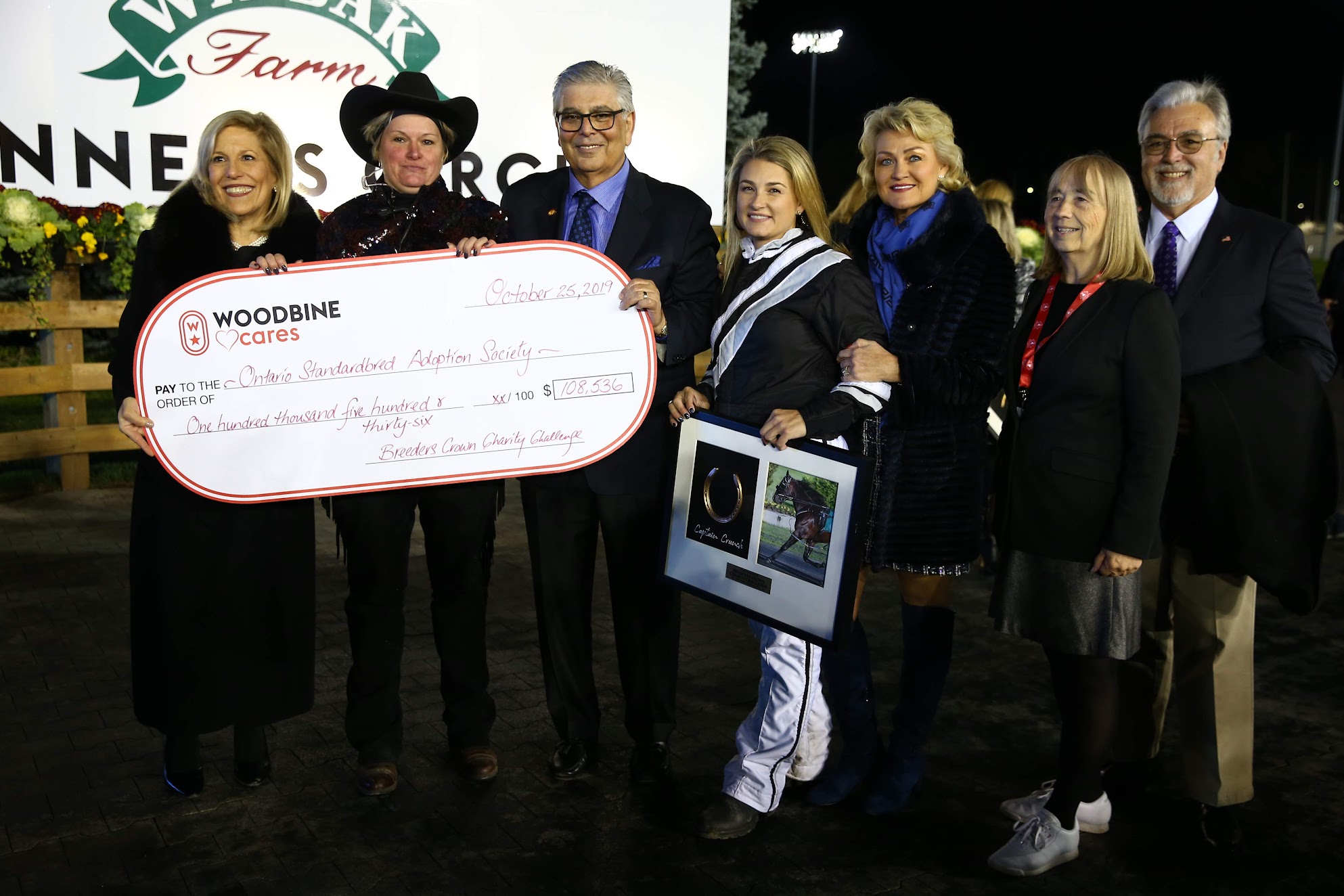 MILTON, July 11, 2022 – Woodbine Entertainment, Hambletonian Society and Breeders Crown presenting sponsor Libfeld-Katz Breeding Partnership today announced the return of the highly successful Breeders Crown Charity Challenge for 2022. Launched in 2019 at Woodbine Mohawk Park, the Breeders Crown Charity Challenge has raised over $800,000 for local charities of each year’s Breeders Crown host track. Last year’s challenge set a new event high, raising over $400,000 for charities in The Meadowlands (East Rutherford, New Jersey) area. This year’s challenge format will see four teams, consisting each of a prominent owner, their charity of choice, and a Woodbine leading driver vying to secure the largest donation amount possible from a minimum pool of $200,000. The four teams are listed below: Team Brad Grant/Doug McNair – Charity: Milton District Hospital Foundation Team Determination/Bob McClure – Charity: Kids Help Phone Line Team Steve Heimbecker/James MacDonald – Charity: Pine River Institute Team Libfeld-Katz/Louis-Philippe Roy – Charity: Toronto General Hospital Heart Research Centre – The SickKids Hospital Toronto Marvin Katz (third from left) and Lynn Katz (far left) present a cheque to OSAS at the 2019 Breeders Crown Charity Challenge presentation. (New Image Media) Each team has pledged $25,000, which guarantees their charity a minimum donation of that amount. An additional $100,000 has been raised through gracious donations by industry participants. With a minimum $25,000 guaranteed to each charity, the additional funds will be up for grabs through a DRIVER CHALLENGE and SOCIAL MEDIA CHALLENGE. The DRIVER CHALLENGE will distribute $50,000 to the charities based on each driver’s performance in the Ontario Sires Stakes (OSS) Lampman Cup standings. The team with the driver earning the most points in the OSS season will be awarded $20,000. The remaining $30,000 will be distributed $15,000, $10,000 and $5,000 based on each driver’s ranking in the standings. The SOCIAL MEDIA CHALLENGE, beginning September 1, will distribute $50,000 to the charities based on each team’s social media engagement. The team creating the most engagement by using #Crown22 and a team hashtag will earn $20,000. The remaining $30,000 will be distributed $15,000, $10,000 and $5,000 based on each team’s engagement numbers. In addition to the various challenges, the popular Cocktails For A Cause will again be held at the Lexington Selected Yearling Sale on Tuesday, October 4, serving as another avenue to raise funds for charity. The 2022 Breeders Crown presented by Libfeld-Katz Breeding Partnership will take place on Friday, October 28 and Saturday, October 29 at Woodbine Mohawk Park. The Breeders Crown Charity Challenge would not be possible without the generous support of the following individuals and group: Marvin Katz Al Libfeld Determination Brad Grant Steve Heimbecker Bob McClure Doug McNair James MacDonald Louis-Philippe Roy Diamond Pledges: Alagna Racing Bettors Delight Syndicate – Blue Chip Farms Hanover Shoe Farms Hunterton Farm/Southwind Farms Lindy Farms/Brittany Farms Muscle Mass – Bob Brady Seelster Farms Tara Hills Stud Winbak Farm Additional Pledges: Carmen Auciello John Bax Cameo Hills Farm Richard Moreau Share This:Share