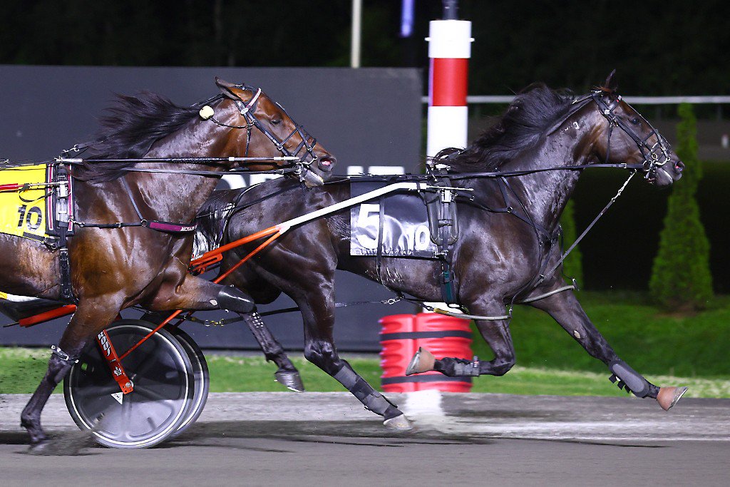 MILTON, June 16, 2025 – Fashion Frenzie became the co-fastest trotter in Canadian harness racing history on Monday night at Woodbine Mohawk Park. Shooting up the inside to win the $36,000 Preferred trot, Fashion Frenzie stopped the clock in 1:50.2 to match the all-age Mohawk and Canadian record for driver Louis-Philippe Roy and trainer Eric Nadeau. It was the second time in three nights that the all-age record was matched, as Emoticon Legacy also trotted 1:50.2 in Saturday’s Goodtimes Stakes for three-year-olds. Osceola cut the mile on Monday, posting fractions of :26.4, :55.3 and 1:23.2. Fashion Frenzie enjoyed a two-hole trip, while 3/5 favourite Gaines Hanover sat fourth throughout. In the stretch, the rail would open up and Fashion Frenzie powered through late to win by three-quarters of a length over Osceola. Gaines Hanover got up for third, beat just over a length. Sid The Kid was fourth. Fashion Frenzie (#5) winning Monday’s $36,000 Preferred Trot. (New Image Media) A seven-year-old son of Archangel, Fashion Frenzie picked up his first win since March 17 and his third win in seven starts this season. The latest victory gives him 30 career scores and lowers his career mark by two-fifths of a second. A career winner of over $1.3 million, Fashion Frenzie is owned by Ecurie Francis Richard Inc, Gestion Mario Bourgea Inc, Pierre Guillemette and Sylvain Richard. Fashion Frenzie joins Emoticon Legacy, Gaines Hanover, Alrajah One IT and Atlanta as the co-fastest trotters in Canadian racing. A $2 win ticket on Fashion Frenzie returned $25.70. Live racing resumes Thursday evening at Woodbine Mohawk Park. Post time is 6:35 p.m. Share This:Share