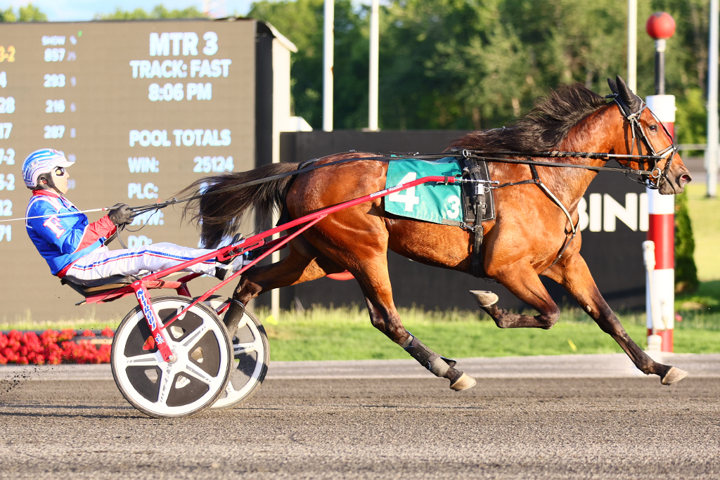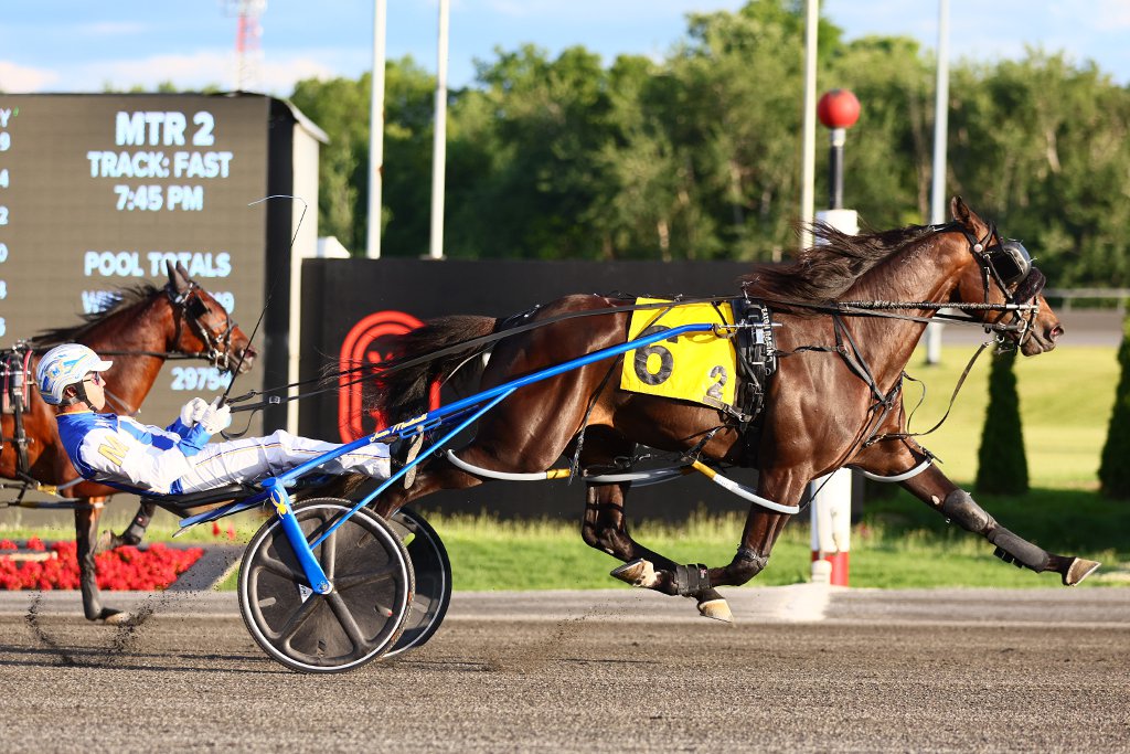 MILTON, June 27, 2024 – Wicked N Single and Incantation became the first two-year-old Grand Circuit winners of 2024 in Thursday’s Tompkins-Geers Stakes at Woodbine Mohawk Park. Administrated by the Hambletonian Society, the long-standing Tompkins-Geers for two-year-olds was moved to Woodbine Mohawk Park for the first time this year. Wicked N Single rallied by rivals with a :27 final-quarter to win the $46,845 Tompkins-Geers for two-year-old pacing fillies. Driven by James MacDonald, Wicked N Single took back to last in the field of six to watch how things played out. Saddlebags got to the lead ahead of Charlotte Station at a :27.3 opening-quarter. Heavy-favourite Famous Fast Words brushed to the lead from third to hit the half in :56.3 before catching a :30.2 breather. Wicked N Single started advancing around the far turn and sat in behind Saddlebags at the head of the lane. The Tony Beaton trained Wicked N Single swung out wide and surged by all to win in 1:54.3. Charlotte Station pushed up the rail to finish second by a length and a half. Famous Fast Words was third, while Saddlebags was fourth. Wicked N Single and James MacDonald winning the Tompkins-Geers. (New Image Media) “I was waiting to sit behind her, she was exciting to qualify,” said MacDonald post-race. “She’s a big strong filly, perfect gait, perfect mouth just like 99 per cent of Tony (Beaton’s). I just kind of settled in and let her do her thing. I knew she was going to give me a big kick finishing.” A daughter of Mcwicked, Wicked N Single was making her career debut on Thursday after a pair of winning qualifiers. She quickly racks up $23,422 for owners Lisa LeFort and David Mercer. Wicked N Single paid $9.50 to win. Hall of Fame trainer Bob McIntosh sent out Incantation to a 1:57.3 win in the $53,123 Tompkins-Geers for two-year-old trotting fillies. Race-favourite Monalishi made a break at the start to change outlook of the contest. The favourite’s stablemate Medley Seelster trotted out to command and led through fractions of :28.4, 1:00.1 and 1:29.4. Sitting fifth through the opening-half, Incantation got under way for driver Sylvain Filion on the far turn. The duo would force Exquisite Taste to pop the two-hole ahead of the three-quarter pole. In the stretch, Exquisite Taste would grab the lead briefly before making a mid-stretch break for the second consecutive start. This allowed Incantation to power by and win by 2 ½ lengths over Medley Seelster. Bright Green finished third, while Sister Sara was fourth. Incantation and Sylvain Filion winning the Tompkins-Geers. (New Image Media) “It was a great effort, Sylvain (Flion) did give her a great drive,” said McIntosh. “I’ve liked this filly all along…she’s been a beautiful gaited thing since day one. We made a couple of adjustments and it seemed to pay off. A homebred daughter of Muscle Mass, Incantation now has a win, a mark of 1:57.3 and $26,561 earned for Robert McIntosh Stables and Tyrone Valley Farm. McIntosh noted his delight with the move of the Tompkins-Geers to Woodbine Mohawk Park. “It’s a great thing for us here in Ontario and Canada…this is perfect.” Surprising the betting public, Incantation paid $37.30 to win. The Tompkins-Geers Stakes continue Friday night with rookie colts and geldings taking the spotlight. Post time for the 10-race card is 7:10 p.m. Share This:Share
