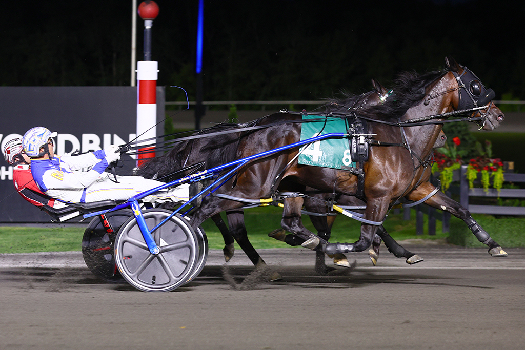 MILTON, June 15, 2024 – Highland Kismet, with Bob McClure in the race bike, stamped himself as a superstar-in-the-making courtesy of a stupendous score in the $225,000 Goodtimes Stakes on Saturday evening at Woodbine Mohawk Park. Sent on his way as the 2-5 choice in the Goodtimes, Highland Kismet arrived at his latest test off a polished 1 ¾-length winning performance in his elimination last week at the Milton oval. On this night, he took things to a whole new level. It was an early scramble as Top Mast, Private Access, and Shermont battled into the first turn, while Highland Kismet was fanned nearly four wide. Top Mast led the pack through an opening panel in :27.2, but Highland Kismet, in fourth, was given his cue by McClure and the son of Father Patrick responded by seizing command shortly before the half in :55.3. Private Access, the second choice on the board at 6-1, came calling on the leader soon after and then turned up the pressure into the turn for home. Highland Kismet, a neck on top after three quarters in 1:24.4, fended off his foe and then strolled away from his pursuers with ease down the lane. McClure sat chilly in the sulky as the bay colt stormed home in :26.4 to post a 3 ¼-length win over Private Access. Top Mast was third. The final time was a stakes-equaling and personal-best mark of 1:51.3. Highland Kismet and driver Bob McClure winning the Goodtimes Final on June 15, 2024 at Woodbine Mohawk Park (New Image Media) “He’s two fingers to drive,” said McClure. “You can start him up, shut him down. I didn’t mind. I was fully intending to half-miss the gate because I knew all the outside speed was going to be pushing so I wasn’t worried about them dropping in front of me. “This colt, super, super stepped up, and I couldn’t believe how big a kick he had coming home, and how easy he did it, and how great he’s been.” Unraced at two, the Mark Etsell trainee was a two-length winner in 1:54.4 in his May 2 debut. Scratched out of his next start, Highland Kismet returned on May 23, just missing top spot by a head. One week later, he was back on the winning track courtesy of a 5 ¼-length victory in 1:53.1. “He’s come a long way quick,” said Etsell. “He’s been a bit of a surprise, actually.” Added McClure, “He was a real troubled two-year-old. He had a lot of trouble with his gait, and you wouldn’t know it now with the job that Mark has done with him. He’s perfect.” Bred and owned by Highland Thoroughbred Farm of Ingersoll, Ontario, Highland Kismet paid $2.90 for his Goodtimes victory. The race presentation was made by John Bax, who campaigned world champion and Canadian Horse Racing Hall of Fame inductee Goodtimes to a 50-win career and over $2.2 million in lifetime earnings. Linedrive Hanover as good as gold in Mohawk Gold Cup Linedrive Hanover knocked it out of Woodbine Mohawk Park with a thrilling win in the $100,000 Mohawk Gold Cup Invitational Pace. Nine horses went postward in the evening’s eighth race, with Linedrive Hanover emerging the victor. Taurasi was a head back, with mutuel choice Abuckabett Hanover close behind in third. In rein to James MacDonald, the son of Betting Line paced the mile in a lively 1:47.2. “I was able to slip out at top of the stretch,” said MacDonald. “And the horse is just… he’s an amazing animal. He’s had a couple tough trips this year, and he just bounces back like a pro. That’s what great horses do.” Linedrive Hanover and driver James MacDonald winning the Mohawk Gold Cup on June 15, 2024 at Woodbine Mohawk Park (New Image Media) Trained by Anthony Beaton for owners West Wins Stable, McKinlay and Fielding, and Mac Nichol, the six-year-old bay gelding is now 18-8-7 from 44 starts, to go along with over $800,000 in lifetime earnings. A half-brother to North America Cup starter Legendary Hanover, Linedrive Hanover paid $23 for the win. Chris Lomon, Woodbine Communications Share This:Share