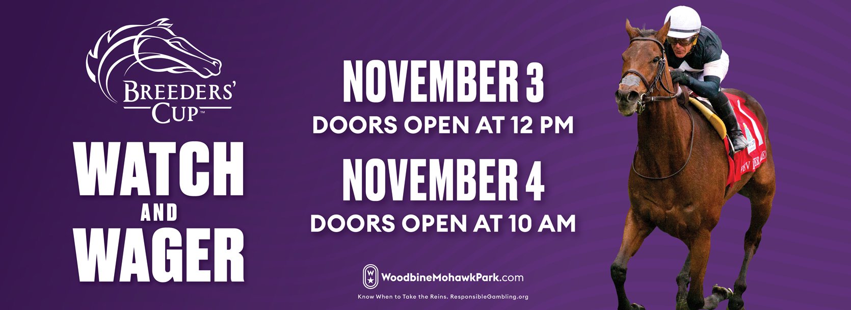 TORONTO, November 2, 2023 – The Breeders’ Cup World Championships are set to take place this Friday and Saturday at Santa Anita Park in Arcadia, California. Friday’s action features five Breeders’ Cup races, while Saturday’s racing will see nine championships contested, including the $6 million Breeders’ Cup Classic. Below are the details for those looking to watch and wager on the Breeders’ Cup: SIMULCAST AT WOODBINE AND WOODBINE MOHAWK PARK Woodbine Racetrack and Woodbine Mohawk Park will both be opening their simulcast areas at 10 a.m. on Friday and Saturday. Horseplayers can come out to watch and wager on all the action from Santa Anita and around the racing world. Post time on Friday from Santa Anita is 2:30 p.m., while Saturday is 1:10 p.m. Woodbine Racetrack will offer live racing on both Friday and Saturday afternoon at 1:05 p.m. running alongside the Breeders’ Cup action. Woodbine Mohawk Park will offer live racing both Friday and Saturday evening at 7:10 p.m. The final Breeders’ Cup race on Friday is scheduled for 7:40 p.m., while Saturday’s final Breeders’ Cup race is scheduled for 8 p.m. WAGER THROUGH HPIbet AND bet365 HPIbet and bet365 are the official platforms to wager on the Breeders’ Cup in Ontario. HPIbet is offering a special 4x Reward Points promotion on Woodbine Thoroughbred racing for both Friday and Saturday. For more details, click here. Horseplayers can access past performance programs and other handicapping resources through HPIbet. To sign-up for HPIbet, click here. WATCH THE BREEDERS’ CUP Fans looking to watch the Breeders’ Cup will have multiple options to watch live coverage from Santa Anita. HPIbet customers can watch the live stream of the Breeders’ Cup from Santa Anita by logging into their accounts. (Minimum wagering activity required for free stream or $5 daily subscription) Subscribers to HPItv will be able to watch all of the weekend’s races from Santa Anita. (Check local provider for details to order HPItv) NBC will provide live coverage of Saturday’s races from 3:30-7 p.m. (Check local provider for channel number) SOCIAL MEDIA For content surrounding the Breeders’ Cup, visit myrailbirds.com and follow Railbirds on X (formerly Twitter) and Instagram. The official X account of the Breeders’ Cup is @BreedersCup. Share This:Share