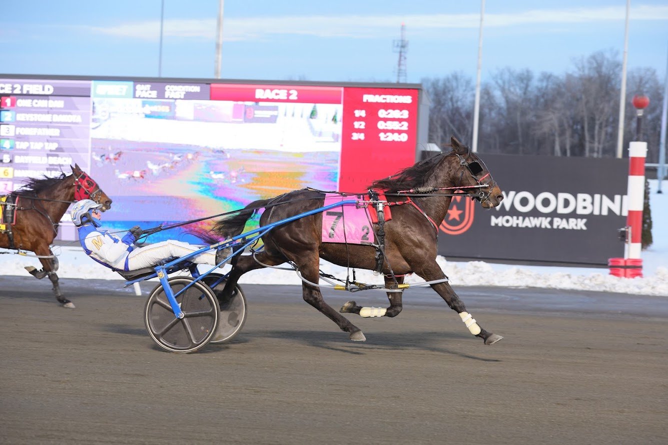 King James holds court Champion reinsman James MacDonald had a handful of reasons to celebrate his Saturday night at Mohawk, winning five consecutive races. The multiple O-Brien Award-winning driver got the party started with a 2 ¼-length victory courtesy of Better B Going in the second and capped it off with a two-length tally from Seriously Hanover in the sixth. MacDonald’s quintet of winners came for trainers Paul Court, Dave Menary, Dominic Gladu, Chantal Mitchell, and Garry Merner. The surge helped elevate MacDonald’s season win total to a track-best 63 scores. Better B Going. New Image Media photo Menary sets the pace Its Saturday Night and Brue Hanover teamed up to secure the exacta for trainer Dave Menary in Saturday’s $40,000 Open Pace. The former, who’s enjoyed a stellar start to the season with four wins, two seconds and a third across eight starts ($108,000), edged his stablemate by a nose to book his second straight visit to the winner’s circle. It was also another strong showing for Brue Hanover, who has been equally impressive this season with an identical stat line to Its Saturday Night. At 8-5, Its Saturday Night paid $5.30 for the win, while a 5-4 exacta paid $7. Its Saturday Night (#5). New Image Media photo As easy as $123 Maloucious, with Tyler Borth at the controls, rallied to win Sunday’s eight dash by a nose at 60-1. Trained by Carmen Auciello, the seven-year-old son of Sweet Lou recorded his seventh career win, stopping the teletimer in 1:54.1. Owned by Fox Racing Inc., the bay gelding, originally a $25,000 purchase in 2020 at Lexington, paid $123.80 for his latest trip to the winner’s circle. Maloucious now sports a 7-9-6 mark from 67 starts. Maloucious. New Image Media photo Share This:Share