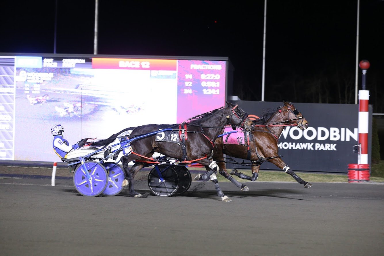A look at some of the top highlights from the past weekend of racing at Mohawk. Surfing to victory Makorori N tracked down his second win on Canadian soil with a gutsy come-from-behind effort in the eighth race on Woodbine Mohawk Park’s Saturday night program. With driver Jody Jamieson in tow, the 5-year-old New Zealand import showed great resolve, powering home in :27.2 to vault past then-leader Major Threat and hit the wire a head in front. The hard-fought triumph marked Makorori N’s first win since his maiden start in Ontario, which came February 21 at Mohawk. Now up to 2-2-0 across five starts this season for owner M T Stables Ontario Inc., Makorori N (7-2) paid $9.30. Makorori N (inside). New Image Media photo To the Victor… Trainer Victor Puddy left his mark on the penultimate contest on Saturday’s 13-race card, sending out stablemates and one-two finishers Livinthebeachlife and Legion Seelster. While seeing these two atop the final standings was the most likely betting outcome, Livinthebeachlife, as the 2-1 second choice, flipped the script on his fellow Puddy trainee and 1-2 favourite Legion Seelster. The pair of veterans paced neck-and-neck into the push for home, but Livinthebeachlife held firm for the narrow win. The 8-year-old Somebeachsomewhere gelding paid $6.30 for the win, while a 7-5 exacta paid $10.20. Livinthebeachlife (inside). New Image Media photo Domino effect Southwind Domino, with Travis Henry in the race bike, pulled off a 37-1 upset in Sunday evening’s second race. The 7-year-old son of Walner waltzed to a half-length score for owner Gino Toscani and trainer Garry Merner. It was the 18th career victory for the $28,000 purchase at the 2020 Lexington Select Sale. Southwind Domino, who won his first race on August 24, 2021, also at Mohawk, paid $76.90 for his latest win. Southwind Domino. New Image Media photo Share This:Share