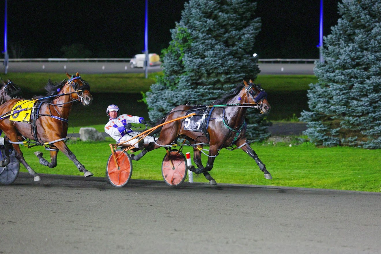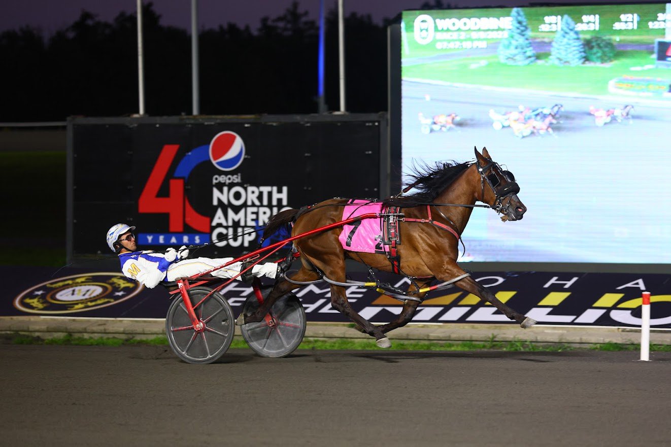 MILTON, September 9, 2023 – James MacDonald took advantage of a loaded lineup to win three of Saturday’s four Champlain Stakes divisions at Woodbine Mohawk Park. A total of four Champlain divisions, two for filly pacers and two for male pacers, were contested on a stakes-filled program. Champlain Stakes – 2-Year-Old Open Pace Legendary Hanover improved his record to a perfect five for five with a stakes record 1:50.0 victory in the $93,000 first Champlain division. The son of Huntsville and driver James MacDonald left from post-nine, landing fourth, before rushing to the lead in the second-quarter. Legendary Hanover cleared co-favourite Chain Gang, posting a half of :56.1 and then a three-quarter time of 1:23.3. In the stretch, Legendary Hanover would turn away the efforts of Chain Gang with a _ final-quarter for a length and a half victory. Captains Quarters finished third, while Cupid Shuffle was fourth. Legendary Hanover and driver James MacDonald winning the first Champlain division on September 9, 2023 at Woodbine Mohawk Park (New Image Media) “Nine hole is tough, especially when you’ve got a good colt like Chain Gang inside,” said MacDonald. “I turned for home with him on my back, he’s a great horse and I know what kind of engine he’s got. I knew my horse was going to have to give me 26 and change to hold him off. He’s just a special horse and I’m happy to be along for the ride.” Trained by Tony Beaton, Legendary Hanover now has two victories in 1:50.0 and has topped $150,000 for owners Eric Good, West Wins Stable and Mark Dumain. With victories in the Dream Maker, Nassagaweya and Champlain, Legendary Hanover will now turn his eyes to next Saturday’s Metro Pace eliminations. “Going into those big races you want to really move him to the front and draw off and win if you can, if the horse can,” said MacDonald. “But at the same time you want him prepped and ready and just chomping at the bit when those big stakes come around. I think going into the Metro he seems razor sharp. It’s the first time he’s got stretched out a bit so it’s good to see him answer the bell when one got to him” A $2 win ticket on Legendary Hanover returned $4.20. Remember The Alamo rushed to the top at the half and never looked back to win the $94,000 second Champlain division in 1:51.0. Remember The Alamo and driver Phil Hudon winning the second Champlain division on September 9, 2023 at Woodbine Mohawk Park (New Image Media) With driver Doug McNair unable to make Saturday’s races due to travel delays, Phil Hudon reunited with Remember The Alamo to pick a redemption victory. The duo had teamed in the Dream Maker final, finishing fifth with broken equipment. Remember The Alamo got away fourth and would attack the lead at the half in :56.2. After reaching three-quarters in 1:24.0, the Tony Alagna trainee kicked home in :27 and kept his rivals at bay to win by a neck over charging stablemate Captain Luke. Nijinsky rallied for third, while Storm Shadow was fourth. A son of Captaintreacherous, Remember The Alamo now has two wins in four starts and over $70,000 earned for owners Riverview Racing, Marvin and Lynn Katz, and Remember The Alamo Racing. Remember The Alamo is eligible to the Metro Pace elimination. He paid $5.90 to win. Champlain Stakes – 2-Year-Old Filly Pace Pass Line kicked off Saturday’s stakes action with an effortless 1:50.2 victory in the $89,500 first division. Fresh off matching the track record of 1:49.3, Pass Line was sent off as the 1/9 favourite and lived up to the billing. The daughter of All Bets Off and driver James MacDonald left from the outside post-seven to drop in fourth before brushing to the lead at the half. Pass Line led by the half in :55.3 and three-quarters in 1:23.4 before kicking home in :26.4 under no urging to win by 3 ½ lengths. Elodie Hanover, who handed off the lead to Pass Line, finished second, while Bettors Sisters was third and Odds On Platinum was fourth. Pass Line and driver James MacDonald winning the first Champlain division for 2-year-old fillies on September 9, 2023 at Woodbine Mohawk Park (New Image Media) Trained by Dave Menary, Pass Line improved her record to seven wins from nine starts and over $300,000 earned. The rookie filly is a homebred for Burke Racing Stable and Weaver Bruscemi LLC and co-owned by Frank Baldachino. The Champlain Stakes victory is the first Grand Circuit win for Pass Line. She is not eligible to the upcoming Shes A Great Lady. Pass Line paid $2.10 to win. MacDonald and Menary teamed up again to win in the $89,500 second division with Its A Love Thing. Sent off as 1/9, Its A Love Thing got away fourth as a wild :25.3 opening-quarter was posted by Wicked Weather. Genie Hanover moved to the top entering the backstretch before Watching You and Its A Love Thing moved to the outside. Watching You led to three-quarters in 1:22.3, while Its A Love Thing was able to tuck in behind briefly. In the stretch, Its A Love Thing powered by to a 2 ¾ lengths victory in a stakes-record equaling time of 1:50.2. Its a Love Thing and driver James MacDonald winning the second Champlain division for 2-year-old fillies on September 9, 2023 at Woodbine Mohawk Park (New Image Media) Watching You finished second, while Wicked Weather and Tea Party Hanover rounded out the top-four. A daughter of Bettors Delight, Its A Love Thing improves to four for seven with over $200,000 earned for owners Eric Good, Thomas Biederman and Josh Green. The win behind Its A Love Thing gave MacDonald his fifth victory on the card. Its A Love Thing, who is eligible to the Shes A Great Lady, paid $2.30 to win. Mark McKelvie, Woodbine Communications / @WoodbineComms Share This:Share