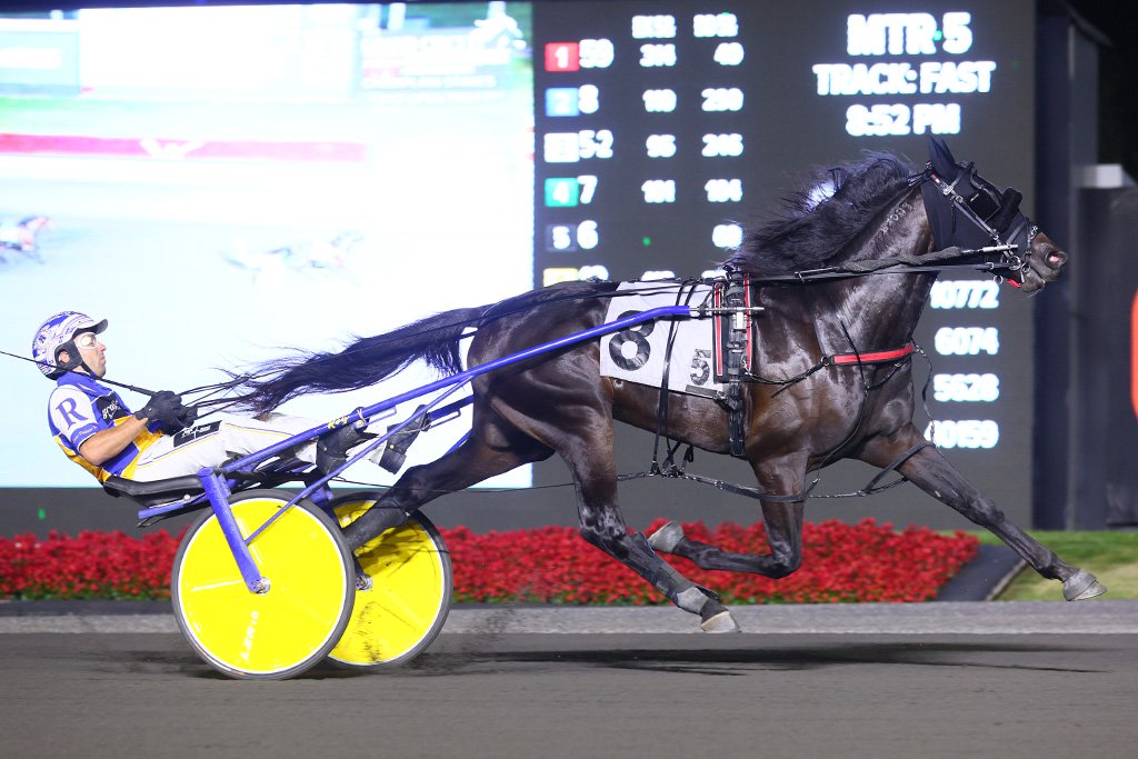 MILTON, September 13, 2024 – Trainer Blake MacIntosh led the way with winners in two of Friday’s three Champlain Stakes at Woodbine Mohawk Park. The MacIntosh stable swept both divisions of the Champlain for two-year-old trotting fillies, while Luc Blais trainee Emoticon Legacy captured the lone Champlain event for rookie colt and gelding trotters. Peaceful Way final winner Monalishi held off Lasting Dream by a nose for a coast-to-coast victory in the first $85,623 Champlain Filly division. Driven by James MacDonald, Monalishi got out to the lead and posted fractions of :29, :59.1 and 1:27.3, while Lasting Dream sat on her back. Monalishi got some separation at the head of the lane, but Lasting Dream was in full flight late to make it a photo finish. The MacIntosh trained Monalishi trotted home in :27.1 for the 1:54.4 victory, while the Blais trained Lasting Dream delivered a :26.4 final-quarter. Grand Reserve, who made a first-up challenge on the far turn, finished third. A daughter of Green Manalishi S, Monalishi is now an impressive five for seven on the season and has surpassed $400,000 in earnings for owners Tim Klemencic and MacIntosh. MacIntosh confirmed post-race that Monalishi does have a spot in next Saturday’s Mohawk Million. A $2 win ticket on Monalishi returned $3.70. Monalishi (inside) digs in to win the Champlain on Friday evening. (New Image Media) Not to be overshadowed by her stablemate, Medley Seelster dug in to win the $84,622 second Champlain Filly division in 1:56.4. Medley Seelster and driver Jody Jamieson took a look at the early lead, but were forced to settled into a two-hole position. The duo looped around to the lead at the half in :59.1 and would face pressure the rest of the way. In the stretch, Medley Seelster fought gamely to reach the wire first, holding off a charging Beersnsunshine Deo by a neck and first-up challenger Southwind Milk. A daughter of Wheeling N Dealin, Medley Seelster was entering the Champlain off an Ontario Sires Stakes Gold victory on September 6. She is now four for 10 with over $180,000 earned for owner Glenn Dyke. Medley Seelster paid $10.90 to win. Medley Seelster (7) winning her division of the Champlain on Friday. (New Image Media) Emoticon Legacy turned in an eye-catching final-quarter to win the $164,785 Champlain Open Trot in 1:55.1. Driver Louis-Philippe Roy showed plenty of patience with Emoticon Legacy, as the pair got away seventh and would end up third-over in sixth heading around the final turn. The stretch drive saw Emoticon Legacy sweep his rivals with a powerful :27.1 final-quarter to win comfortably by 3 ¾ lengths. Tregaron, who was spotted just in front of the eventual winner turning for home, finished in second, while Wildturkey Hanover finished third after tailing ‘Emoticon’ in a fourth-over position. A homebred for Determination, Emoticon Legacy is by the standout stallion Walner and out of the champion mare Emoticon Hanover. He now has three wins in four starts and has earned nearly $150,000. Emoticon Legacy is also expected to compete in next Saturday’s Mohawk Million. He paid $5.30 to win. Emoticon Legacy and Louis-Philippe Roy winning the Champlain Stakes. (New Image Media) Grand Circuit action continues Saturday evening at Woodbine Mohawk Park with the Milton Stakes Final, plus eliminations for the Metro Pace, Canadian Trotting Classic, Shes A Great Lady and Elegantimage. Post time is 7:10 p.m. Share This:Share