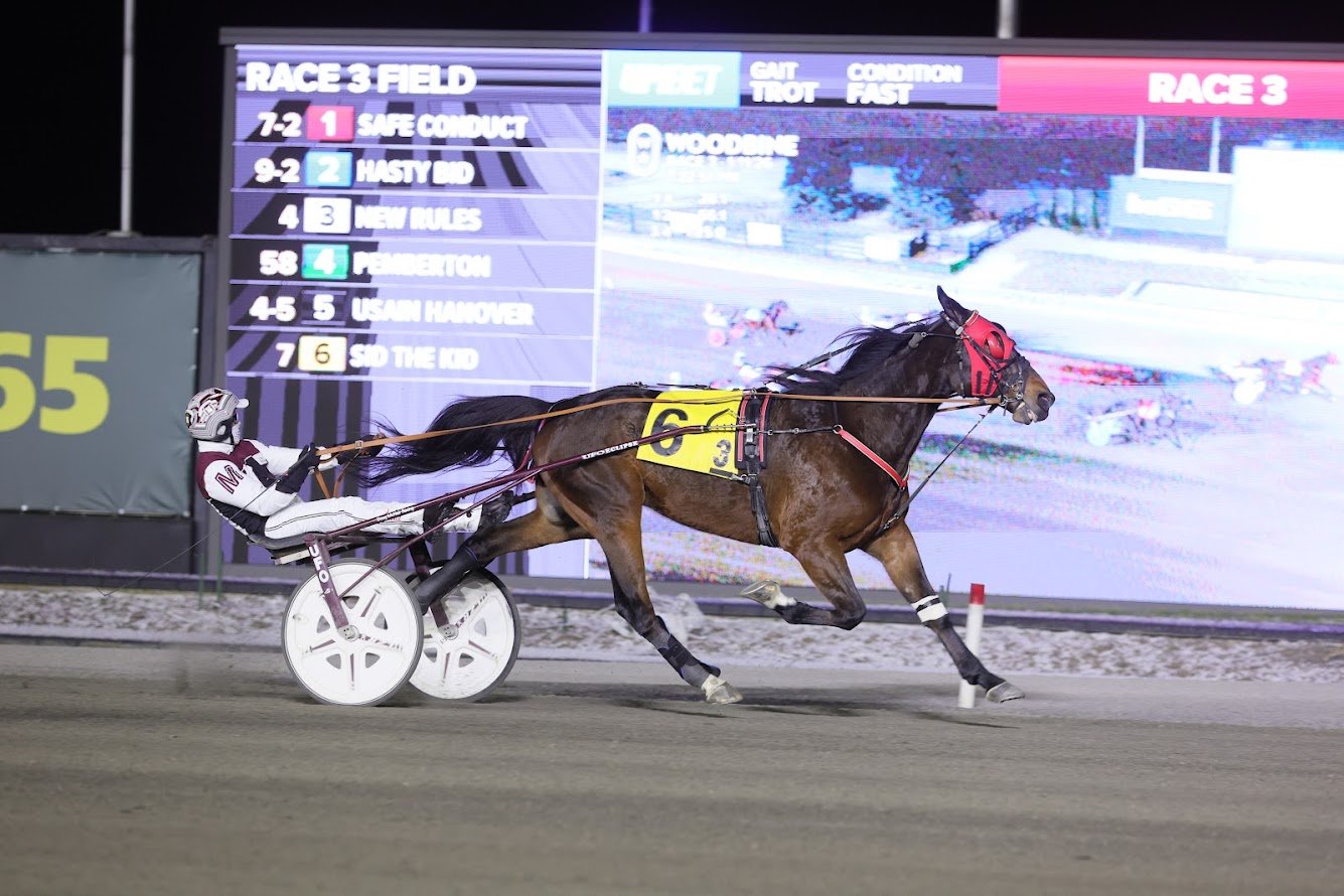 MILTON, February 20, 2026 – Sid the Kid, named after NHL and Team Canada superstar Sidney Crosby, will chase gold on Sunday evening at Woodbine Mohawk Park. Trained by Ben Baillargeon, Sid the Kid, a five-year-old son of Alarm Detector-Miss Congeniality, will look to rebound from an off-key seventh-place performance last time out when he goes postward in the $40,000 Open Trot, slated as the ninth dash on the 10-race card. Doug McNair, who recently surpassed the 5,000-win mark in his decorated career, will pilot the five-year-old bay gelding. “He’s been a very nice horse,” said McNair. “I got to drive him last year and you could tell he’s a nice one. The talent is definitely there.” Sid the Kid and driver Doug McNair at Woodbine Mohawk Park (New Image Media) Tabbed as the 5-2 second choice in the morning line, Sid the Kid has compiled a 13-13-8 mark to go along with $293,350 in purse earnings from 69 lifetime starts. Bred and owned by Thomas and Elizabeth Rankin, he went 5-9-4 from 33 races in 2025 and is 2-0-0 from 4 starts this year. Sid the Kid won back-to-back dashes, January 11 and January 18, the former a 6 ½-length score and the latter a gutsy head victory. He earned his first career win on May 23, 2024, a three-length triumph in 1:56.4 at Mohawk. “He’s one that always tries, goes out there and you know that you are going to get that 100 percent effort,” said McNair. “He can race any way. You can put him on the front and he’s tough, but he’s actually better off the helmet.” McNair, in the sulky for the consecutive wins last month, expects the trotter to bounce back from the off-the-board finish on February 8. “Ben is a great trainer and knows what he is doing. That is the first time I ever drove him where he didn’t perform like himself, but as he’s shown in the past, he can shrug those off and be at the top of his game next time.” The decorated driver is also hoping Canada’s men’s hockey team can net Olympic gold in Italy hours before the first race gets underway at Mohawk. “It is a very good race, some nice horses, for sure. Six horses, but everyone seems to have a chance to win. Hopefully, we work out the right plan and get it done – would love to see Team Canada do the same thing.” First post is set for 6:15. Field for the Open Trot Post – Horse – Driver – Trainer 1 – Usain Hanover – JR Plante – Dave Menary 2 – Pemberton – John Bernard Renaud – Julie Walker 3 – Mr Bluebird – Travis Cullen – Jodie Cullen 4 – R Peaky Blinders – Tyler Borth – Ben Baillargeon 5 – Devils Arch – Louis-Philippe Roy – Jean-Francois Maguire 6 – Sid the Kid – Doug McNair – Ben Baillargeon -30- Chris Lomon, Woodbine Mohawk Park Share This:Share