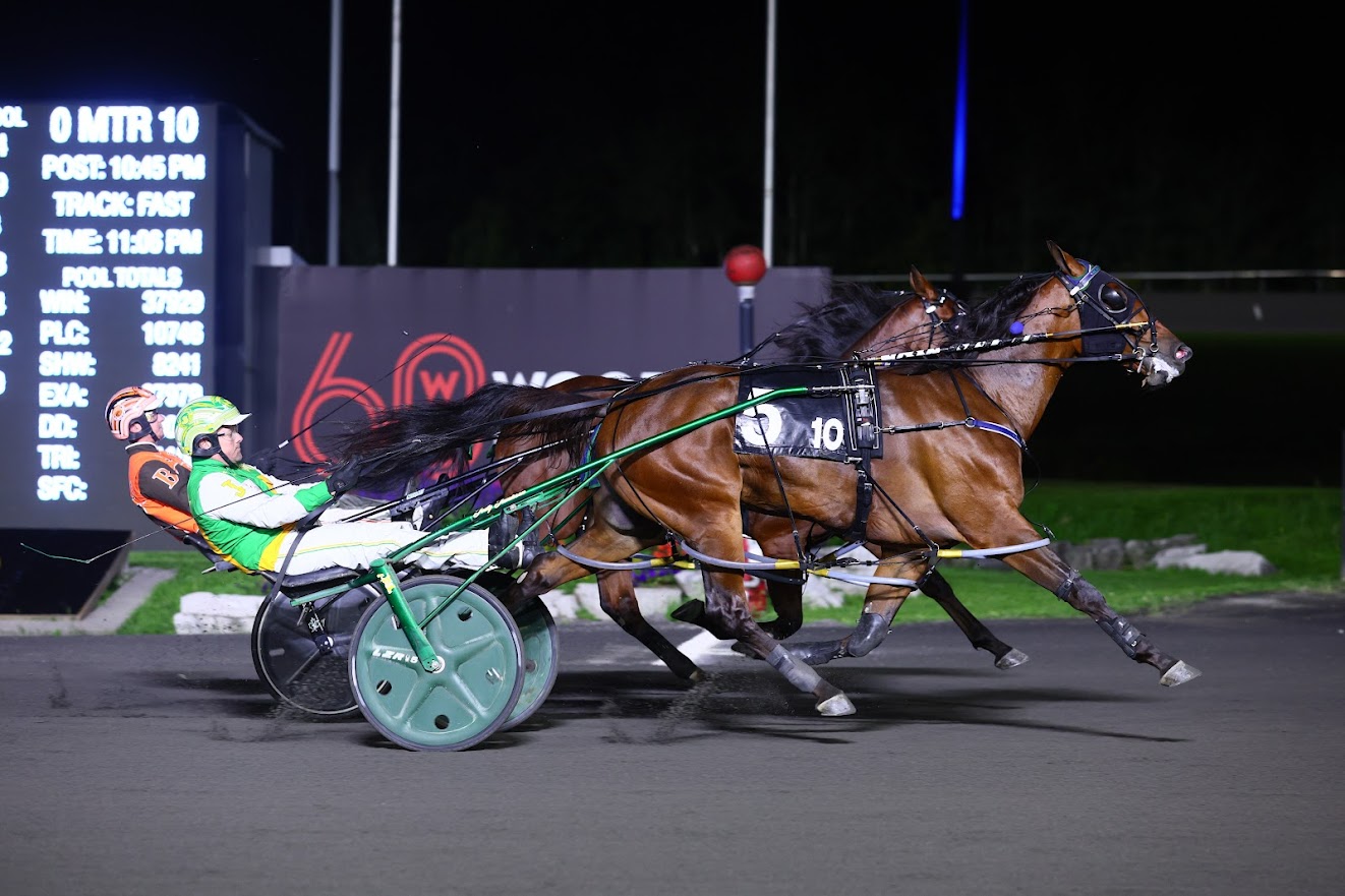MILTON, September 9, 2023 – A trio of Simcoe Stakes divisions for three-year-old pacers were part of Saturday’s stakes-filled lineup at Woodbine Mohawk Park. The Simcoe Stakes for three-year-old pacing fillies required two divisions, while the open category needed just one division. Sylvia Hanover returned to her winning ways with a 1:51.2 victory in the $79,600 first Simcoe Stakes division. Driven by her regular pilot Bob McClure, Sylvia Hanover took her time by dropping in fourth in the field of seven. Bettors Punch shot out to the lead and got the opening-half easy, leading through clips of :27.1 and :56.4. The Shawn Steacy trained Sylvia Hanover got her cue to go nearing the half and worked up towards the leader throughout the entire far turn. Bettors Punch hit three-quarters in 1:25.0. In the stretch, Sylvia Hanover took care of business, powering on by and cruising to a 2 ¼ lengths victory. Mollop Hanover got up for second, while One Last Wish held third over a closing Lady Get Lucky. Sylvia Hanover and driver Bob McClure winning the first division of the Simcoe Stakes for three-year-old pacing fillies on September 9, 2023 at Woodbine Mohawk Park (New Image Media) “Tonight, she was pretty easy,” said McClure. “She always wants to leave and then she landed. When she decides to move there’s not a whole lot of discussion, you have to move right then. Once she got out there, I just left her alone, kicked for home, I spoke to her and she was waiting on them like she always does. If anything had of come at her she would’ve kicked again.” Sylvia Hanover showed everyone, including her connections, that she was back on track after making a miscue in her most recent start on August 19 at Pocono. “I wasn’t the least bit concerned,” said McClure. “It was a mishap in Pocono. It’s a tough track for some big horses, it happens, but I wasn’t concerned at all about her coming back here and getting back into form. She’s a superstar.” A daughter of Always B Miki, Sylvia Hanover has now won seven of eight starts this season and 15 of 17 in her career. She surpassed $1.3 million in earnings with her Simcoe score for owner Hudson Standardbred Stable. Sylvia Hanover paid $2.20 to win. The $79,600 second Simcoe Filly division saw Bellisima Hanover wear down Sweet Amira for a career-best 1:50.1 victory. Driven by Jody Jamieson, Bellisima Hanover was spotted third around the far turn before angling out first-up to advance towards the leader Sweet Amira. The leader would race by three-quarters in 1:23.1. In the stretch, Sweet Amira and Bellisima Hanover would square off for a lengthy duel that ultimately saw Bellisima Hanover power by to win by a neck. Cheesy Smile rallied from last to finish third, while Savethelastdance was fourth. Bellisima Hanover and driver Jody Jamieson winning the second division of the Simcoe Stakes for three-year-old pacing fillies on September 9, 2023 at Woodbine Mohawk Park (New Image Media) A daughter of Captaintreacherous, Bellisima Hanover was just one for five on the season coming into the Simcoe. The Tony Alagna trainee now sports career numbers of five wins and $286,936 earned for owners Riverview Racing, Alagna Racing, Caviart Farms, Daniel Plouffe and Steve Head. Bellisima Hanover paid $9.80 to win. Whatchulookin At reached up to score a 31-1 upset in the $171,300 Simcoe Stakes for three-year-old pacers. With all eyes on Stockade Seelster at 1/9, Whatchulookin At and Moment Is Here would overtake the heavy favourite for their own duel to the wire. Whatchulookin At prevailed by a half a length in a career-best 1:49.3. Whatchulookin At and driver Chris Christoforou the Simcoe Stakes on September 9, 2023 at Woodbine Mohawk Park (New Image Media) Chris Christoforou got the last second call behind Whatchulookin At after travel issues caused Doug McNair to miss Saturday’s card. “He was just a real gentleman, did everything I asked, very calm horse, very smart horse and he was a pleasure to drive,” said Christoforou. “They let me know very firmly that this horse has had some bad luck, some real bad racing luck lately. They thought he had a real good sprint to him if I save as much ground as possible and use him late and I thought it worked out great” Stockade Seelster made the lead at a :26.4 opening-quarter and then got things his own way, posting clips of :26.4 and :55.2. Moment Is Here got a two-hole trip, while Whatchulookin At sat third. In the stretch, Stockade Seelster would surrender the lead and watch as the Whatchulookin At edged Moment Is Here. Stockade Seelster held on for third over Redwood Hanover. A gelded son of Hes Watching, Whatchulookin At now has three wins in 11 starts this season after capturing three of seven as a rookie. The Gregg McNair trainee’s biggest victory pushes him over $260,000 in earnings for owners Gregg McNair, Jim Newton, Bloomingwood Farms and Paul Kidd. Whatchulookin At paid $64.30 to win. Mark McKelvie, Woodbine Communications / @WoodbineComms Share This:Share