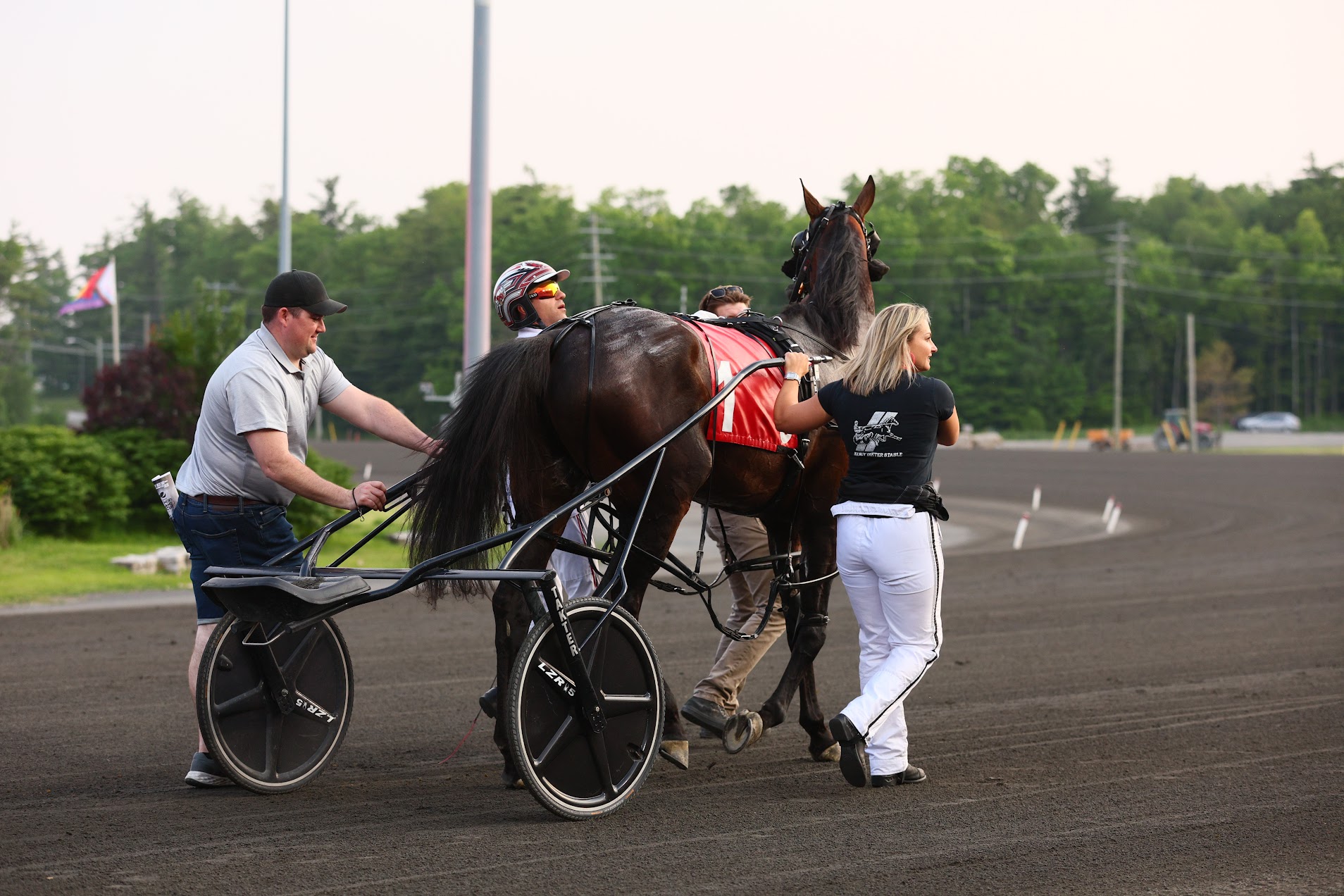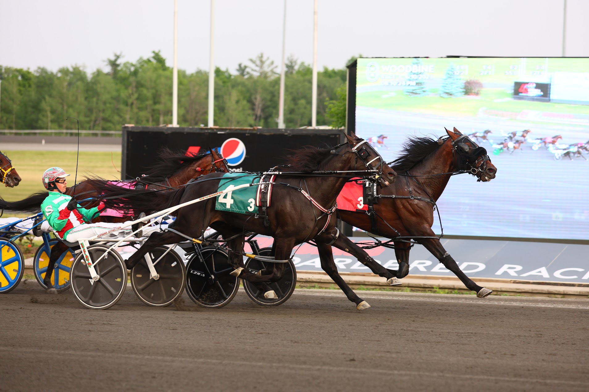 MILTON, June 14, 2023 – Nancy Takter always finds a way to rise to the Cup challenge. The multiple stakes winning trainer with nearly 650 career victories has fashioned a perfect two-for-two record in the Pepsi North America Cup, having saddled Captain Crunch and Tall Dark Stranger to victory in 2019 and 2020, respectively. On Saturday night, in the 40th edition of the $1 million classic for three-year-old pacers, Takter will have two chances at notching her third Cup crown when Christchurch and Save America go postward under the Woodbine Mohawk Park lights. The road to the final, just like her other two appearances, wasn’t a straight line. “This year with four eliminations and having to finish second to guarantee your spot, that’s quite an accomplishment for anyone looking to get a horse to the final,” said Takter, whose stable has surpassed $4 million in earnings in each of the last four seasons. “There are a lot of very good horses who didn’t make the final, so it’s definitely a great accomplishment by our team to get to this race.” Nancy Takter (New Image Media) Christchurch near and dear to Takter’s heart A son of Always B Miki-Darlinonthebeach, Christchurch rolls into the final in winning form. In the first Cup elimination, there was drama right after the start when 1-2 Voukefalas took some awkward steps around the first turn before settling back into stride. Moment Is Here assumed command through an opening panel in :27.1 before Ervin Hanover struck front and took his seven rivals through a half in :55.0, as Dexter Dunn, in rein to Christchurch, sat a patient third. Rounding the turn for home, Christchurch blasted by his foes in early stretch to take the lead. Voukefalas, with Jordan Stratton in the bike, came calling with a powerful late brush, but had to settle for second, a head back. The final time was 1:48.4. Christchurch and driver Dexter Dunn winning the first Pepsi North America Cup Elimination on June 10, 2023 at Woodbine Mohawk Park (New Image Media) Owned by Diamond Creek Racing, Farhi Standardbreds Corp, and Spreydon Racing, he is now 4-1-0 from nine starts, along with $52,275 in purse earnings. “He came first-up in that third quarter and that’s a far way to go first-up, to clear and keep going at Mohawk,” started Takter. “They were moving pretty quick at that point, so he went really fast. I was really impressed with how much handier he’s been. I made some equipment changes on him going into the elimination and they seemed to be the right ones. I’m really happy with how he’s entering the final.” It was an even sweeter score considering Takter trained his mother, $1.1 million earner Darlinonthebeach. “She was my second really good horse after JK She’salady. She came very early on in my career and I had a lot of success with her. I actually took care of her myself throughout most of her racing career, so she is definitely a very special horse to me. To have her first foal and have him in the NA Cup final is an awesome feeling. I actually watched him foal on their foal cam, so he’s always had a special place in my heart. Last year, we just took our time with him, taught him how to race a little bit. He has a great set of lungs, a great gait, so he has all the tools to be great.” Christchurch and connections after winning the first North Amercia Cup elimination on June 10, 2023 (New Image Media) Bred by White Birch Farm, Christchurch, named after the city on the South Island of New Zealand, which is also the hometown of Dexter Dunn, paid $9.50 for the win. A win by Christchurch would be an emotional triumph for Takter and others. “It’s kind of interesting with this horse because Steve Williams, who was the farm manager for White Birch Farm when I trained ‘Darlin,’ my dad had Always B Miki then. He always said that we were going to breed Darlinonthebeach to Always B Miki and have some great babies with these two. She had a mark of 1:48.1 and Always B Miki had his 1:46 mark. I actually have a photo of these two jogging beside one another when they were both racing. Steve loved this picture and always had it on his Facebook page. Unfortunately, Steve passed away, so he didn’t get to see Christchurch, but it’s part of his legacy, and hopefully it works out well on Saturday.” Christchurch and connections in the winner’s circle after winning the first North Amercia Cup elimination on June 10, 2023 (New Image Media) Save America ready for the big dance A $300,000 yearling purchase, Save America went 4-2-1 in 11 freshman starts with $440,000 in earnings and a mark of 1:49.4 — which he recorded twice, including his 2022 Metro Pace elimination. Other victories for the son of Captaintreacherous-My Lady Day came in a leg of the Kindergarten and divisions of the Nassagaweya and Champlain. “The first couple of starts at Mohawk he was a little bumpy at times,” said Gingras, after the Metro elimination win. “Last week, he was too aggressive on top of that, tonight I got the horse back that I really liked in the spring baby races. He was a gentleman to drive, two finger, I did whatever I wanted with him with no steps. “He was loaded with pace tonight, he only won by a length, but I never really called on him, didn’t kick the plugs. It was a crazy good mile, especially off a half in :56 and I was sitting at least five lengths back. He was the colt I thought I had at the beginning of the year. I loved him.” That love affair has continued for Gingras and co. Owned by 3 Brothers Stables and Caviart Farms, Save America brings a 5-3-1 mark from 14 career dashes into his NA Cup date. A half-brother to $1 million earner and Metro Pace winner Stag Party, Save America finished second to Its My Show in the third Cup elimination on June 10. Save America before the third Pepsi North America Cup elimination on June 10, 2023 (New Image Media) “I thought he raced exceptionally well,” praised Takter. “Yannick [driver, Gingras]