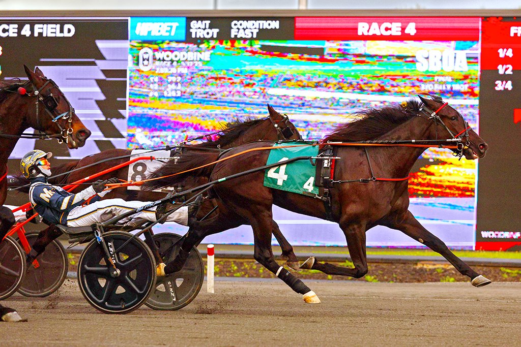 MILTON, May 17, 2025 – Ontario sired three-year-olds took centre stage on Saturday at Woodbine Mohawk Park for the SBOA Stakes Finals. All four divisions for sophomores saw finals contested on Saturday, on a windy evening at the Campbellville oval. Chantilly, the 2024 Canadian Horse of the Year, improved her undefeated record to 10 for 10 with a victory in the SBOA Filly Pace. To read about Chantilly’s season debut victory, click here. Ontario Super Stakes champion Crack Shot overpowered his rivals to win the $126,912 SBOA Final for three-year-old pacing colts and geldings. Driven by Doug McNair, Crack Shot was one of several to show early speed and would eventually drop in third coming out of the first turn. The Gregg McNair trainee didn’t sit long and would rush towards the lead, clearing just after a :54.3 first-half. Crack Shot would open up on nearest rival Fifth And Five at three-quarters and never looked back for a 3 ¾ length victory in 1:51. Sterling Choice finished second, while Boxer Seelster and Time Passer completed the Superfecta. A son of Bettors Delight, Crack Shot improved to two for two on the season and is now a seven-time winner from 10 starts for owners Gregg McNair, Dale Hunter, Frank Brundle and George Keer. Crack Shot’s victory was the latest victory for co-owner Hunter, the head coach of the Ontario Hockey League champion London Knights. The Knights captured their second consecutive OHL title on Thursday. “It’s been a busy week, but an enjoyable week when you win,” said Hunter. “To win this race and to get to go to the Memorial Cup, I love it. It’s all about sports, that’s what is a joy about it, you don’t know what’s going to happen.” With the SBOA victory, Crack Shot remains as one of the leading contenders for this year’s Pepsi North America Cup. “It’s hard to win,” said Hunter. “There’s a lot of good horses and for me it’s teams, there’s a lot of good teams in the hockey world. When you win, you’ve got to appreciate every moment.” Crack Shot’s latest win puts him over $300,000 in career earnings. He paid $2.40 to win. Crack Shot and Doug McNair. (New Image Media) Team McNair had a big night at the office on Saturday, as Doug guided the Gregg-trained Galen Erso to victory in the $130,913 SBOA Trot for three-year-old colts and geldings. A son of Green Manalishi S, Galen Erso had to grind first-up around the far turn and held off a late push from longshot Fast Snap to win in 1:55.0. Chicago Hall was third, while Cousin Halifax was fourth. Galen Erso was making his first for new owner Brad Grant, after being sold by Marcus Melander. The son of Green Manalishi S is now one for two this season and four for nine overall, with over $270,000 earned. Galen Erso paid $3.10 to win. Galen Erso. (New Image Media) The $136,513 SBOA Filly Trot went to 8-5 second-choice Green Glider for driver Bob McClure and trainer Scott McEneny. A daughter of Green Manalishi S, Green Glider showed plenty of determination by marching first-up from fifth around the far turn and powering down the lane to win by three-quarters of a length in 1:54. McClure was driving Green Glider for the first time Saturday, as regular driver Trevor Henry was out of town. “I talked to Trevor before he left and he told me just how much he liked her and how nice she was and her lines just speak for themselves,” said McClure. “I wasn’t too worried about first up, I figured it was between me and Monalishi and the way mine’s been finishing I didn’t think she could get by me.” Sprite Seelster moved to the lead in the second-split and took the field by fractions of :56.3 and 1:25.3. Green Glider would wear down Sprite Seelster throughout the stretch drive for the score. Race-favourite Monalishi, who sat second-over behind the eventual winner, just edged Sprite Seelster for second. Green Glider is now two for three to start her three-year-old season after winning twice in eight starts at age two. Her SBOA Final win takes her to $122,764 earned for owners Andrea Lea Racingstables Inc. A $2 win ticket on Green Glider returned $5.30. Green Glider. (New Image Media) Live racing resumes Monday evening at Woodbine Mohawk Park. Post time is 6:35 p.m. Share This:Share