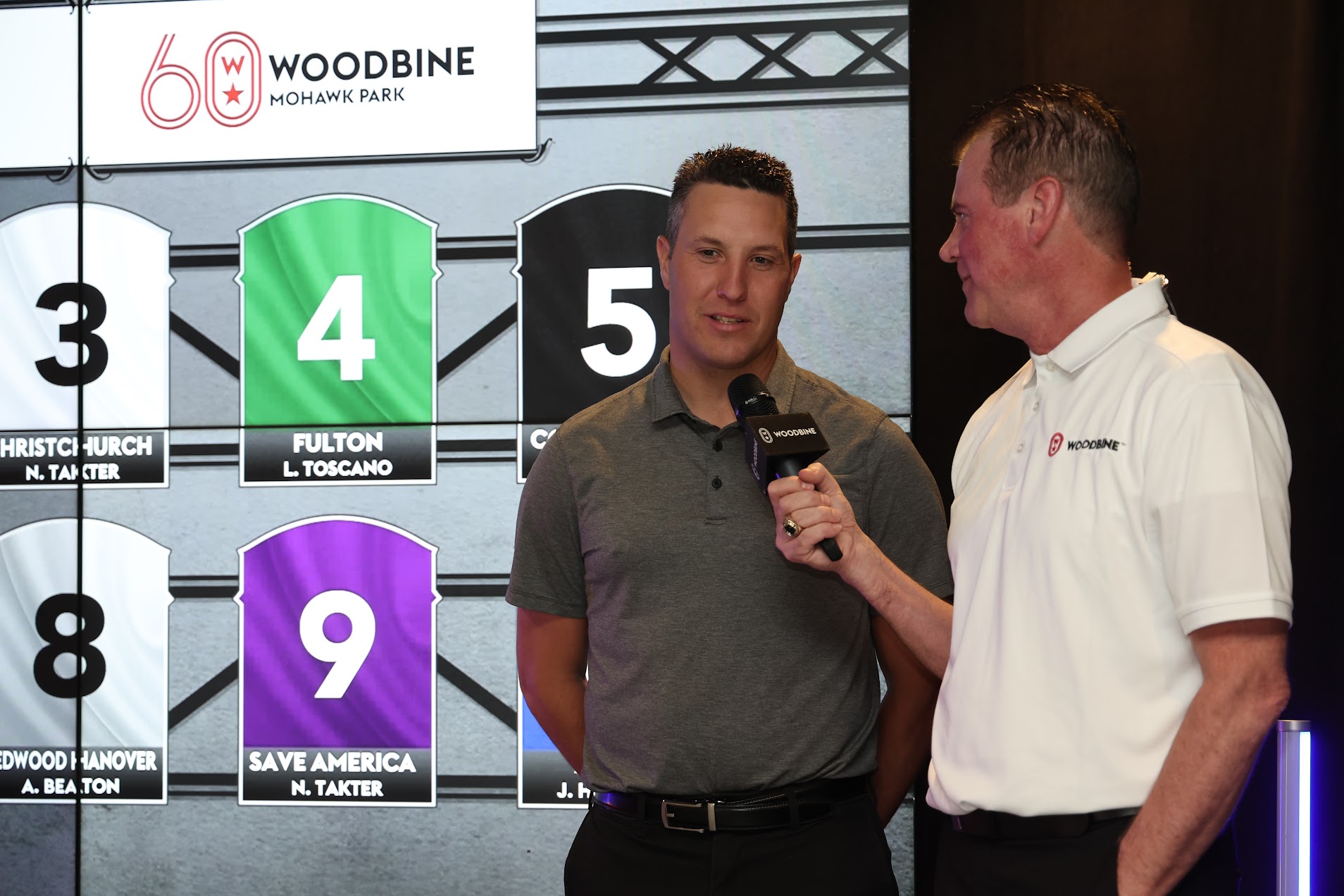 MILTON, June 13, 2023 – The field and post positions are set for this Saturday’s (June 17) 40th Pepsi North America Cup at Woodbine Mohawk Park. The post-position draw for the $1 million pacing classic took place on Tuesday afternoon at Mohawk. Elimination winners Christchurch, Confederate, Fulton and Its My Show earned their respective connections the right to secure a post between two and five in the final after their victories on June 10. From left to right: James MacDonald, Michael Russo, Anthony Beaton, Richard Young, Brad McNinch reach for the Pepsi North America Cup trophy (New Image Media) Fulton will start from post four for trainer Linda Toscano, who will also send out Its My Show. In Saturday’s elimination, Fulton, with Dexter Dunn in the bike, blasted off the gate and took the lead. Down the lane, Fulton was still looking sharp, going on to notch a 1 ¼-length triumph in a 1:48.2. “He hasn’t been racing bad,” offered Dunn. “His last couple starts, he hasn’t been 100 percent, but tonight he was really good. Linda changed his bridle, and he was sharp and ran right to the line.” “It was easy to change the bridle, it was the way he raced that night,” said assistant trainer, Toscano’s husband, Brad McNinch. “Dex gave him a good trip, he came first up, he was happy with that. He fights horses off. He’ll fight a horse off coming from behind, he’ll fight a horse off if he’s chasing him.” The bay son of Heston Blue Chip, bred by Best Bet Stables (Florida) and owned by Let It Ride Stables and Bottom Line Racing LLC, is 9-2-2 from 13 starts, including a 3-1-0 mark in four 2023 starts. Host Mark McKelvie and Racing Secretary Tony O’Sullivan draw the post positions for the 40th Pepsi North America Cup at Woodbine Mohawk Park (New Image Media) Its My Show (post two), winless in eight starts as a rookie, is now five-for-five on the campaign. Sent off as the slight 6-5 choice in his elimination, Its My Show, leaving from post one, was immediately sent to the front by a confident Scott Zeron. After early opening splits of :26.4 and :55.0, Its My Show was still cruising, in command by 1 ¼ lengths through three-quarters in 1:21.3. The son of Sweet Lou went on to cross the line a 2 ¼-length winner, earning a new speed badge of 1:48.0 in the process. “The good thing about my horse is he’s probably the easiest horse I’ve ever had to drive,” lauded Zeron. “He’s very robotic, anything I want him to do, slow down, speed up. He’s super quick and he’s got some big lungs.” Its My Show paid $4.70 for the win. “He didn’t have a real great year last year, but his gelding seems to have turned him into a better racehorse,” said McNinch. “Scott gets along with him great and Scott believes in him. That’s part of the battle too. When the drivers believe in him, he’ll put them in play, and you’ll let the chips fall where they may.” Bred and owned by Richard and Joanne Young, the bay gelding is now 5-2-1 from 13 lifetime starts. “I didn’t expect him to do what he did from the rail,” said Richard. “I know I’ve watched a lot of horses race at this track from the rail and very seldom can they do what he did and then draw away.” Host Randy Waples interviewing Brad McNinch (New Image Media) Confederate, who will leave from post five in the final, lived up to his 1-9 odds in his elimination with a head-turning effort to send him to the big dance. The son of Sweet Lou, bred and owned by Diamond Creek, took his seven contemporaries through early fractions of :26.4 and :54.4, going on to hold a 1 ¼-length advantage through three-quarters in 1:22.1. A trio of longshots picked up the chase down the lane but to no avail. The final time of 1:48.4 was a personal-best for the brown colt. “He was very, very good,” said winning driver Tim Tetrick. “Nobody was really leaving so I thought I’d take control. I don’t like doing it, but I didn’t want him to have to work too hard on the second half chasing somebody, so it worked out good.” Now 7-1-1 from nine starts, Confederate, trained by Brett Pelling, will go after his biggest win to date on a stakes-laden Saturday card on June 17 at Mohawk. “He’s a cool little guy, he does his job, he likes to work,” said Tetrick. “He’s always out there playing, goofing off. He likes to win races, so I’m really liking him.” Confederate paid $2.10 for the win. Host Randy Waples interviewing James MacDonald (New Image Media) The other elimination winner, Christchurch, a son of Always B Miki, will get underway from post three. After fellow finalist Voukefalas broke stride, Christchurch, in rein to Dexter Dunn, used a powerful move just ahead of the three-quarters mark to come home on top in 1:48.4. Christchurch paid $9.50 for the win. It was an even sweeter score considering Nancy Takter trained his mother, $1.1 million earner Darlinonthebeach. “She was my second really good horse after JK She’salady,” said Takter, two-for-two in the NA Cup, who will also be represented by Save America in the final. “She came very early on in my career and I had a lot of success with her. I actually took care of her myself throughout most of her racing career, so she is definitely a very special horse to me. To have her first foal and have him in the NA Cup final is an awesome feeling. I actually watched him foal on their foal cam, so he’s always had a special place in my heart. You see how big he is, he’s huge. Last year, we just took our time with him, taught him how to race a little bit. He has a great set of lungs, a great gait, so he has all the tools to be great.” Owned by Diamond Creek Racing, Farhi Standardbreds Corp, and Spreydon Racing, the bay colt is now 4-1-0 from nine starts. The other eight finalists in this year’s race went into an open draw for the remaining posts. “As I look at this field for Saturday night, it is clear it is a global race,” said Woodbine CEO Jim Lawson