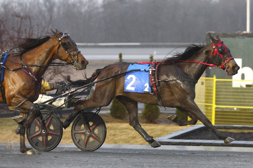 MILTON, March 29, 2025 – Woodbine Mohawk Park was forced to cancel Saturday evening’s card after six races due to inclement weather causing poor visibility. A pair of finals for the New Holland Series was to highlight Saturday’s return of live racing at Woodbine Mohawk Park following a “March Break”. The New Holland Trotting Series Final was contested before the cancellation, while the New Holland Pacing Series Final will now take place next Saturday (April 5). New Rules and driver Trevor Henry converted off a two-hole trip behind heavy-favourite Fashion Frenzie to take the $69,000 New Holland Trotting Series Final. It was a table-turning performance for New Rules, who had finished in the runner-up spot behind Fashion Frenzie in both preliminary legs. Fashion Frenzie cut the mile against his four rivals, setting easy fractions of :58 and 1:28 to lead into the lane. New Rules popped off the favourites back and overtook halfway down the lane. The eventual winner had to contest with a late push from Locatelli, holding on by a head in 1:56.3. Fashion Frenzie settled for third, while Truffles Too was fourth. Trained by Dave Menary, New Rules is now five for nine this season with $133,500 earned for owner Pollack Racing LLC. The five-year-old’s career totals jump to 21 wins and over $400,000 earned. New Rules paid $5.50 to win. A Jackpot Hi-5 mandatory payout was scheduled for Saturday’s last race. It will now be held at a later date with details to come next week. Live racing resumes Monday evening at Woodbine Mohawk Park. Post time is 6:35 p.m. New Rules winning the New Holland Trotting Series. (New Image Media) Share This:Share