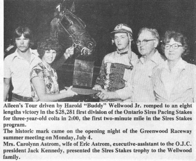 By Robert Smith, Courtesy of Ontario Racing The OSS is celebrating its 50th anniversary season this year with special anniversary dates at tracks around the province where fans will be able to watch OSS Gold or Grassroots races, view memorabilia from seasons past, enjoy giveaways and more. Don’t miss the next celebration date as we kick off the Gold season at Woodbine Mohawk Park this Saturday, May 25. By virtue of its long existence, Woodbine Mohawk Park has undoubtedly hosted the largest number of OSS events, along with London and Rideau Carleton as original “A” track hosts of the now 50 year old series. A portion of the early history of the OSS was recorded at the other two Ontario Jockey Club tracks – Garden City with just three years and Greenwood with 20 years. Both locations closed many years ago. When Mohawk Raceway originally opened the coming of the OSS was well off in the future. On the evening of Friday, April 26, 1963 a reported 4,338 fans flocked to the opening of the track. A nine-race card greeted them and when the pacer David Hal B and driver Pat Crowe crossed the finish wire a winner in the first race in 2:09.1, yet another milestone in Canadian harness racing entered the books. The purses on opening night ranged from a low of $500 to a high of $1,400 for the featured sixth race which was won by Adios Dominion driven by Ken Galbraith. Fast forward to 1974 and the dawning of a new age. The travelling OSS series was somewhat late in arriving at Mohawk due to the racing schedule. When the fall meeting arrived the newfound series debuted at the Campbellville oval which was then a 5/8 mile track. The two-year-old pacing fillies were the first to perform before a Mohawk audience on Oct 19. With a field of 10, they went in a single division which was won by Ruby Patch driven by Ray McLean and owned by the estate of Hugh McLean of Port Elgin, Ont. It was her lone victory of that season in eight starts, but thanks to the purse of nearly $49,000 for that event she ended the season with earnings of $25,499. In the succeeding years, young horses of both gaits have “strutted their stuff ” at what is now Ontario’s showplace for harness racing. OSS Scrapbook Memories Robra Glider “glides” to victory to become the very first winner of an OSS event on June 1,1974 at Garden City Raceway. Ron Feagan, a 32 year old horseman from Goderich, Ont., was in the sulky and was also co-owner of this history-making three-year-old pacer. A son of Meadow Gene – Rich Melody, the colt went on to season’s earnings of $ 40,025. This was a great moment in the history of Ontario harness racing and, of course, the OSS. This winner’s circle was a happy gathering on June 1, 1974 as the very first OSS event became history. The Hon. John Clement, on the far right, welcomes Robra Glider and co-owner Ron Feagan to make a trophy presentation. Bruce Smith, co-owner, was not present for the event. Assisting is Garden City hostess Pat Cranston. Dr. Glen Brown, DVM was one of the original group that helped create the OSS and was a strong proponent of the program from the very start. His guiding hand helped to get the OSS started and he remained a part of the organizational force for many years. He was, of course, in attendance at the inaugural race in 1974. Dr. Brown was a walking, talking history book of harness racing, in general, and certainly knew the entire history of the OSS. He graciously shared his knowledge with me well into his senior years. He left us in May 2022 at age 88 and thankfully lived to see the program reach its full potential. Famed Canadian-born horseman Clint Hodgins was a highly successful participant during the inaugural 1974 season. He’s shown here enjoying a jovial moment with OJC President John Mooney following a victory by his outstanding three-year-old pacing gelding Terry Parker. This horse led all competitors in earnings that first year as he banked a phenomenal $77,312 with $ 63,866 earned in OSS events alone. The groom at the left is Dennis Wicks. It took four years of OSS action before two-minute speed was achieved. In 1977, the three-year-old pacer Aileens Tour, owned by Harold Wellwood Sr. of Stratford Ont., and driven by his 22-year-old son Harold Jr. “Buddy “ became the first horse to record a mile in 2:00 or less when he achieved that milestone at Greenwood Raceway in Toronto on Monday July 4 ,1977. Time of the record-setting mile was 2:00 flat. He would go on to lower that mark later in the season. In 1977, Aileens Tour won 11 OSS events including 10 in a row and 11 out of 12. He set or equalled five track records, including Sudbury, Leamington, Barrie and Windsor. In all, he had 16 wins at age three. Sept. 15, 1984 – Driver Trevor Ritchie is alone at the Mohawk wire as he establishes an all-time OSS speed mark for rookie pacing colts. Wilcos Comet, sired by Armbro Splurge, paced to a 1:58 mile in the $ 53,075 Second Division of The OSS that evening. The first division went to Twin B Playboy (Doug Brown) in a somewhat slower time of 1:59.3. Wilcos Comet was the property of The Golden Horseshoe Stable of East Detroit, Mich., and trained by the late Lew Clark. Share This:Share