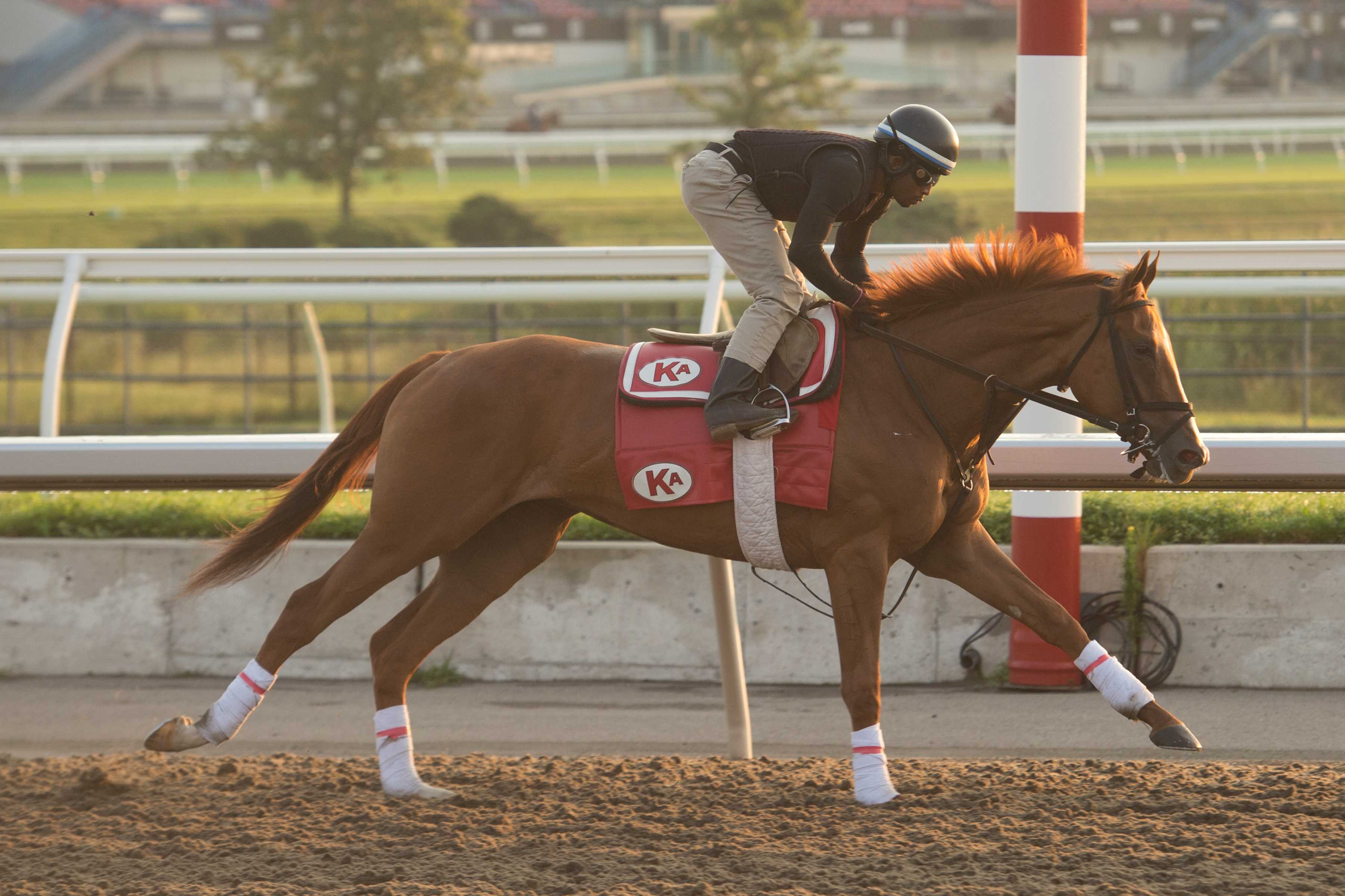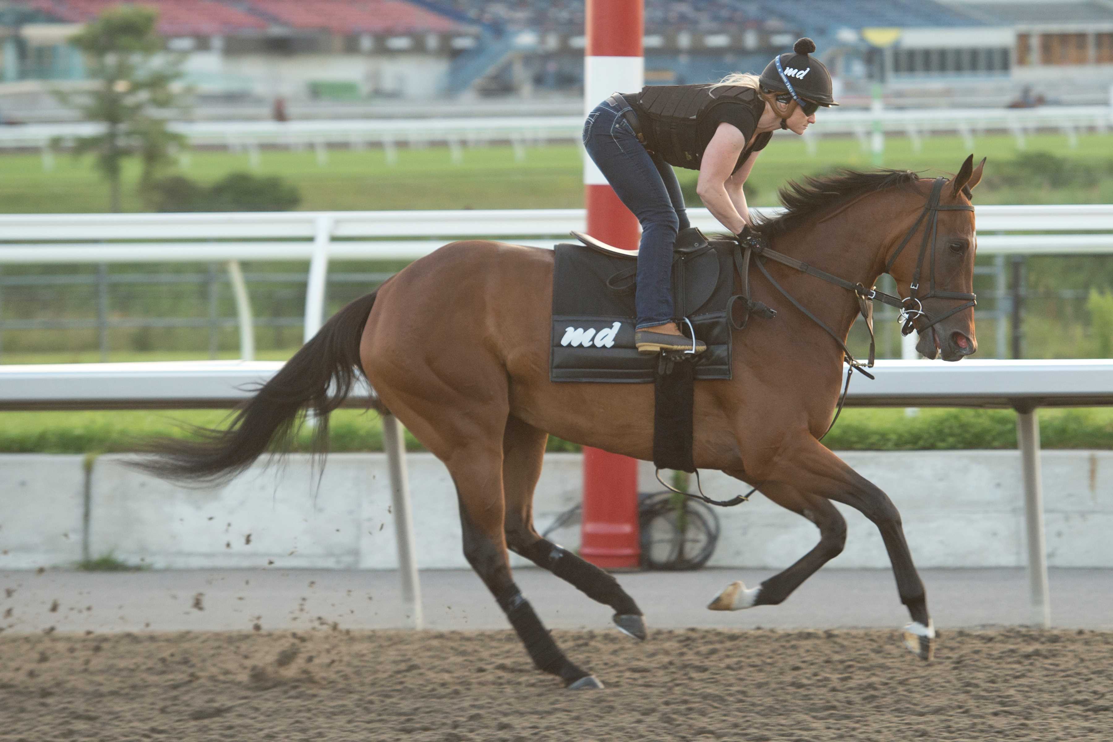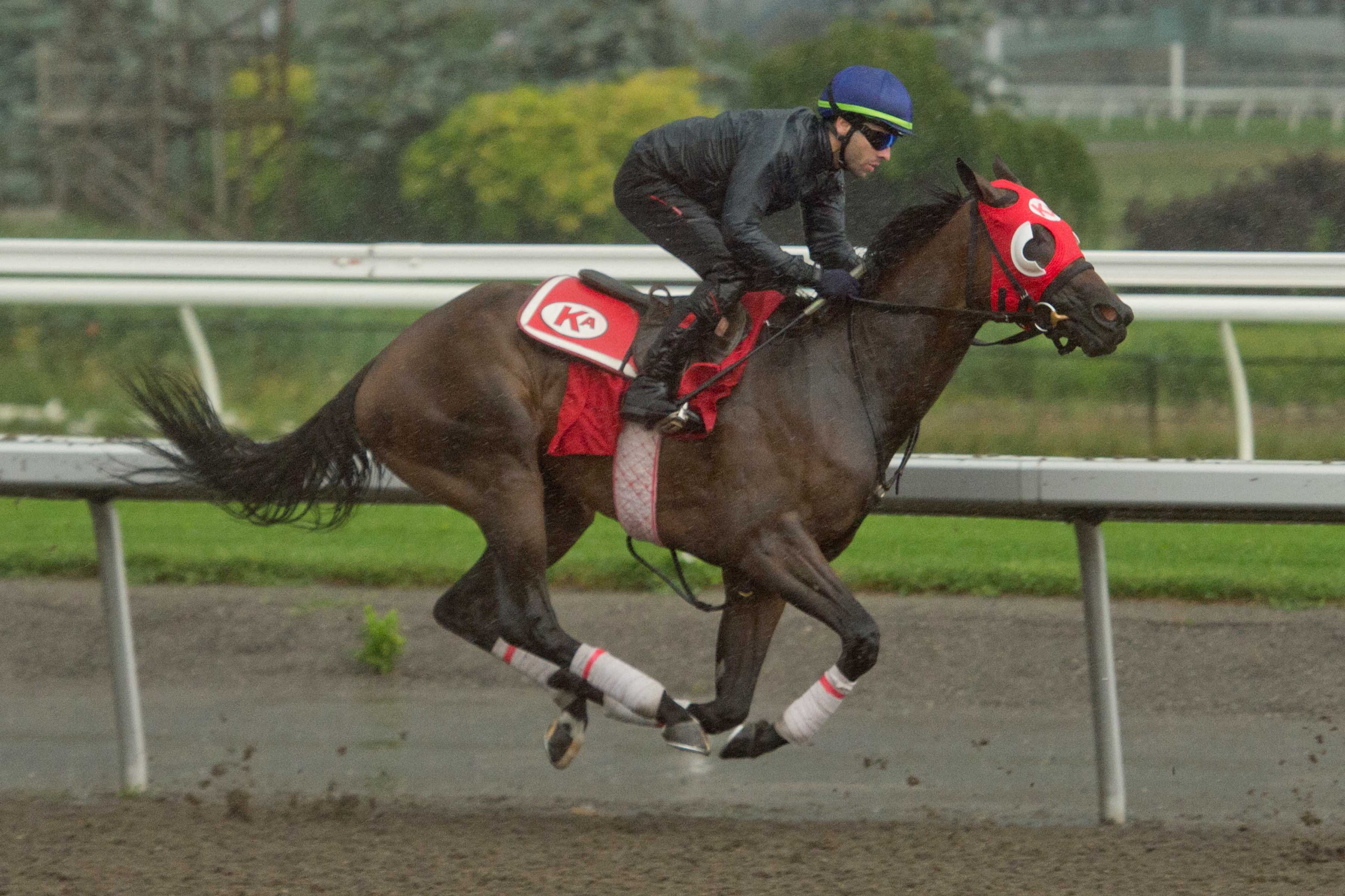 TORONTO, July 17, 2024 – Trainer Kevin Attard will have five chances to win his third $500,000 Woodbine Oaks Presented by Stella Artois, one of four stakes on Saturday’s 11-race card at Woodbine. Inaugurated in 1956, the filly classic, which has attracted 14 Canadian-foaled 3-year-old fillies carrying 121 pounds over one mile and one-eighth on the all-weather track, will go postward at 5:33 p.m. ET, and will be broadcast live on Sportsnet ONE from 5-6 p.m. ET. The winning connections will receive $300,000. Saturday’s card also features the $150,000 Plate Trial Stakes, a key race ahead of The King’s Plate (August 17), the $175,000 bet365 Connaught Cup (G2T), and $135,000 Trillium Stakes Presented by Don Julio (G3). After winning the 2021 Oaks with eventual Canadian champion 3-year-old filly Munnyfor Ro, and the following year’s edition with King’s Plate winner and Canada’s 2022 horse of the year, Moira, Attard will send out the quintet of Caitlinhergrtness, Inudation, My Girl Della, Vucchella, and War Painter in this year’s running. “It’s a race you hope to win once and we have been fortunate to have done it twice,” said Attard. “When you look back at the great fillies and horse people who have won the Oaks, it makes the achievement even more special.” Caitlinhergrtness, a daughter of Omaha Beach-Belatrix, brings a record of 2-0-1 from five starts into her biggest test to date. Caitlingrtness training at Woodbine (Michael Burns Photo) Owned by Siena Farm LLC and WinStar Farm LLC, the chestnut filly last raced two weeks ago, a 2 ¾-length score at 7 ½ panels over the inner turf. In her rookie campaign, she won a one-mile dirt race at Aqueduct and finished fourth in the Tempted Stakes in November. “She is extremely versatile in her ability to run well on different surfaces and distances,” praised Attard. “She ran a great one last time out and even though it’s a short time between races, she has given us every indication she can step up once again.” Bred by Jesse Korona, Caitlinhergrtness was a $375,000 purchase at the 2023 OBS Spring Sale of Two-Year-Olds in Training. Troy Garnett is the groom. Owned by Al and Bill Ulwelling, Inudation broke her maiden in last year’s Princess Elizabeth Stakes. The daughter of Collected-Tidal Surge, sent off at 12-1, rallied to win the 1 1/16-mile main track event by a head. The bay filly, bred by Anderson Farms Ont. Inc., was seventh in her 3-year-old debut, a 1 1/16-mile engagement contested over the Woodbine main track on June 22. “We were hoping to build off her great rookie season and it hasn’t gone as we anticipated,” offered Attard. “That said, we did lose some time with her. She has the ability and the skills to come up with a big one on Saturday.” Inudation, who fashions a mark of 1-2-0 from five starts, was a $67,000 purchase at the 2022 Fasig-Tipton Kentucky Fall Yearling Sale. Jamal Bishop is the groom. Induation training at Woodbine (Michael Burns Photo) My Girl Della, another filly bred by Anderson Farms Ont. Inc., is 1-1-1 from five starts. The daughter of Medaglia d’Oro-Katie Baby broke her maiden in the first start of her sophomore season, on June 1. Owned by John Fielding, the bay filly arrives at the Oaks off a fourth at 1 1/16 miles on the Toronto oval main track. “We like her a lot too,” said Attard. “I thought her maiden win was very professional. Her latest race was okay, and we think she can definitely improve off that one. “There is a lot to like about her and we are expecting a strong showing on Saturday.” My Girl Della was purchased for $170,000 at the 2022 Keeneland Association September Yearling Sale. Rhiannon Parkes is the groom. Vucchella has yet to reach the winner’s circle in six starts but has a pair of seconds and two thirds to her name. Owned by X-Men Racing III LLC, Madaket Stables LLC and SF Racing LLC, the dark bay debuted last August at Woodbine and finished fourth. Also bred by Anderson Farms Ont. Inc., the daughter of Bernardini-Heartofthematter has reeled off three-straight top-three finishes. “She’s a maiden, but her last race – her first 3-year-old start – was encouraging,” said Attard. “She has reached the podium in four of her six starts, so she has been very consistent. “It would not be a surprise at all to see her come up big in the Oaks. She looks like she could have a bright future.” Vucchella was a $230,00 purchase at the 2022 Keeneland Association September Yearling Sale. Peter Lopez is the groom. Racing for Canuck Racing Club, War Painter has assembled a 2-3-1 record from seven starts. The consistent daughter of Danish Dynaformer-Morning Tale contested five races, three of them stakes, in her 2-year-old season. Her biggest win came in the 2023 Victoria Queen Stakes last September. War Painter missed by a nose in her 3-year-old debut, but came back to win her next start, a 1 1/16-mile trek on the Woodbine main track on June 6. “We like her a lot. We always have. She has been a bit frustrating, but she had a very nice work with (2022 Woodbine Oaks and King’s Plate winner) Moira, which obviously was extremely encouraging. “She definitely has the talent, and the distance is absolutely in her wheelhouse.” War Painter was a $30,000 purchase at the 2022 Fasig-Tipton Kentucky Yearling Sale. Joshua Attard is the groom. A Little Frisky, trained by Canadian Horse Racing Hall of Fame inductee Josie Carroll, has compiled a 1-1-1 record from four starts. The daughter of Army Mule-Tulsa, bred by Josham Farms Limited, is owned by Mark Dodson. Trained by Tom Amoss, Ba Dee Yah brings a 2-0-2 mark from seven races into the Oaks. The daughter of Uncle Mo-Pearl Turn will make her first start outside of the U.S. Owned by Gold Standard Racing Stable, LLC, she was bred by Anderson Farms Ont. Inc. Bravo Kate, bred by Jim Dandy Stable, has made six starts and produced a line of 1-1-1 from those efforts. Owned by Spruce Park Stable, the daughter 
