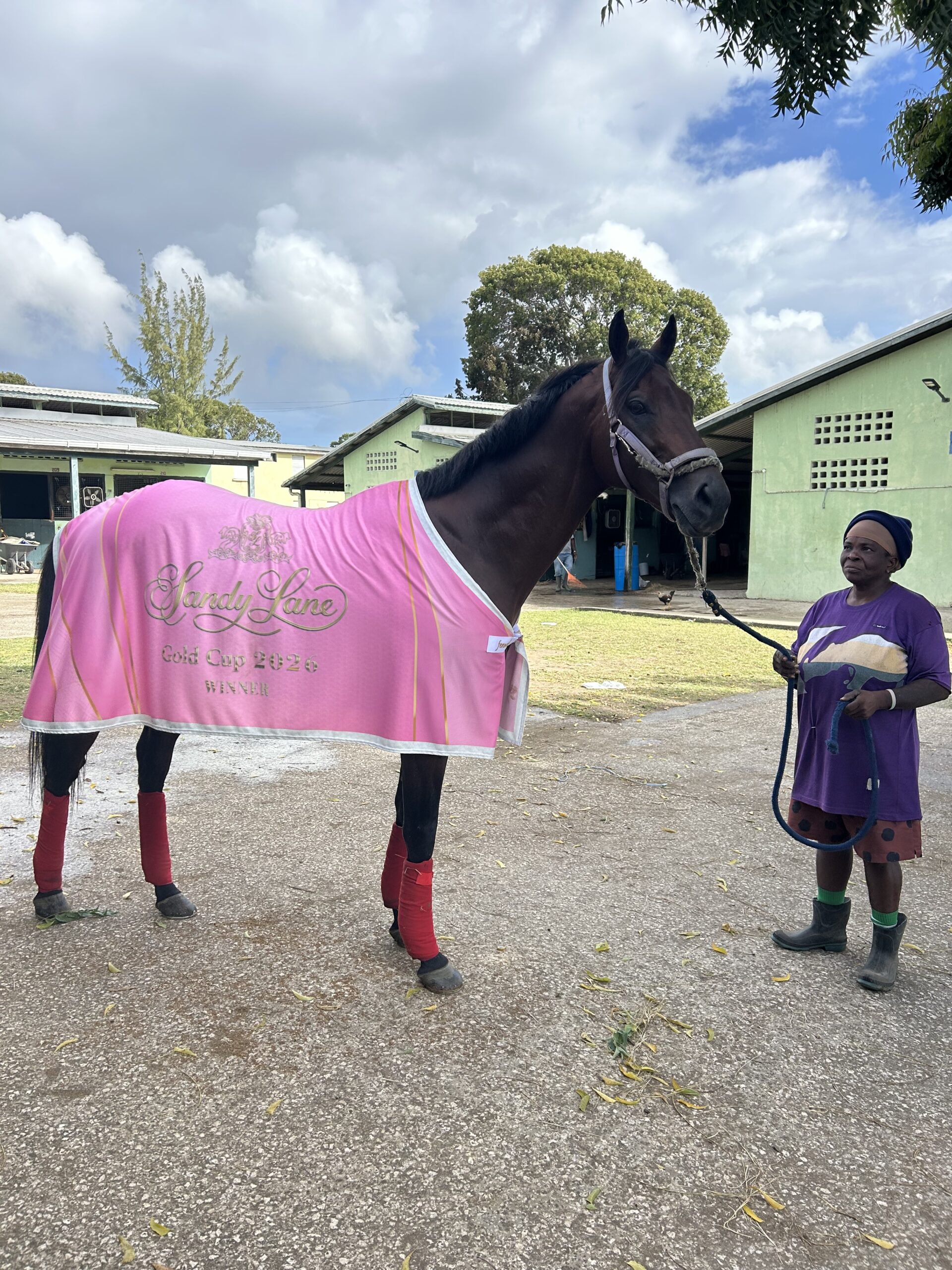 Burnt arms and sore feet dutifully carried me around the Garrison Savannah as I reported on this year’s Sandy Lane Barbados Gold Cup. Truthfully, those appendages cried silently until the adrenaline of Gold Cup day had worn off. Reporting on this year’s Gold Cup meant venturing to the island of Barbados, which is about 2,500 miles south of Toronto, Canada. The Grade 1 race is run annually at Barbados’ thoroughbred racetrack, the Garrison Savannah. For 181 years, the Garrison has been horse racing’s home. The Garrison is where many Barbadian jocks get their first taste of race riding before they move their tack to Canada, and specifically to Woodbine. Some of those former and current jocks include Jonathan Jones, Patrick Husbands, Jalon Samuel, Rico Walcott, Juan Crawford, Slade Callaghan, and Slade Jones– just to name a handful. It’s worth noting that a few of those above-mentioned jocks have ridden and won multiple installments of the historic Gold Cup race too. Run for over 40 years, the Gold Cup was previously run as the Cockspur Gold Cup before it transitioned in 2001 to the Sandy Lane Barbados Gold Cup. Showcasing the island’s best thoroughbreds as well as some additional shippers for the race, local racing fans consider the Gold Cup to be their version of the King’s Plate or the Kentucky Derby. While the Gold Cup’s purse amount and the eligibility criteria for contenders differs vastly to the King’s Plate, it’s the prestige of winning this historic race that gives the Gold Cup its ‘X factor,’ so to speak. Heading into Saturday’s big race day, I was able to spot some familiar faces from Woodbine at the Garrison. For instance, I ran into Troy Garnett, who has groomed many stars from Kevin Attard’s outfit including ‘24 King’s Plate winner, Caitlinhergrtness. I saw Woodbine jockey agent, Ron Burke in passing. I caught up with Rico Walcott, who rode Deccan Prince in the Gold Cup. I also interviewed Jalon Samuel after his Gold Cup win. I met Brian Alleyne, who works the starting gate at Woodbine. On my way back to Canada, at Grantley Adams International airport (the Barbados airport), I also ran into Ivan Forde, who works at the Mark Casse outfit. Forde groomed ’23 King’s Plate winner, Paramount Prince. Bulldoze and Hayley Morrison For many Barbadian (Bajan) horsemen, the Barbados Gold Cup signals the end of their winter break. Usually, once the Gold Cup wraps up many Bajans head back to Canada to prepare for Woodbine’s upcoming thoroughbred race meet. On Friday morning, the day before the Gold Cup (GC), I was at the track around 5:30 am to catch some GC contenders such as Public Sector jog around the Garrison’s sand training track. As the sun started to rise, Public Sector made his way into the saddling paddock with his groom Carol by his side. Jockey Jalon Samuel hopped aboard and then headed out to the track. Following close to Public Sector, I was met with a chorus of ‘good mornings,’ uttered from nearly every horseperson – whether they knew me or not. This Barbadian or Bajan style of greeting is common for locals and is one of the many things I love about island life. Later that morning, I also walked around one of the Garrison’s stabling areas. Located just a few minutes away from the track itself, the barns at the top of the hill are nestled neatly behind the Barbados Museum & Historical Society. Once there, my eyes darted from one moving thing to the next: horses being bathed, horses being saddled for the track, cats and chickens running about, and sheep keeping their horses company. No doubt, this stabling area was definitely giving off a ‘Noah’s ark’ type of vibe. More importantly, the flurry of four-legged activity made me realize this track is a home to many rather than just a barn to some. Now, onto Gold Cup day itself. Firstly, I arrived at the track around 8:30 am or so to ensure I found a good parking spot. I then walked over to the quarantine barn where several Gold Cup horses were stabled. I spotted Deccan Prince’s trainer, Nicholas Tomlinson heading out to walk the track’s turf course. I politely asked to join on the trek. What readers and racing fans may not know or understand is that race reporting is much more than just getting quotes and photos and then writing up a feature story. It’s also about observing and engaging with your subject. In this specific situation, it was also about having good footwear to walk an entire turf racecourse. After the turf walk was complete, I walked the exterior of the racing oval to observe a flurry of activity with locals setting up food stalls, the snow cone vendors looking for early morning customers, and spectators setting up chairs and tents to view the races from their own vantage point. Funny enough, I even ran into a childhood friend whose family came out the day before to ensure they secured their spot close to the Gold Cup starting gate. On my way back into the grandstand, I chatted with a local racegoer sitting by the rail. They informed me that Gold Cup tickets had been sold out prior to the new year. Not surprisingly, throughout the race day I spotted several tourists outside the Garrison’s main entrance looking for the next best view of the races sans tickets. Taking content from the start of races until the big race, I noticed the Garrison’s grandstand steadily fill to the brim with fans. Add to that, the walkways between each seating area became ‘talk ways’ with me squeezing in between local fans and tourists. With that said, one of the great things about horse racing (and other sports for that matter) is the fan base. It doesn’t matter whether it’s a winning touchdown, an overtime goal, or in this case, winning a historic horse race, the love of a single sport can truly be felt through the intensity of its fan base. As the intensity ramped up throughout the afternoon, I was able to have a first-hand view of the Gold Cup parade. A bevy of dancer