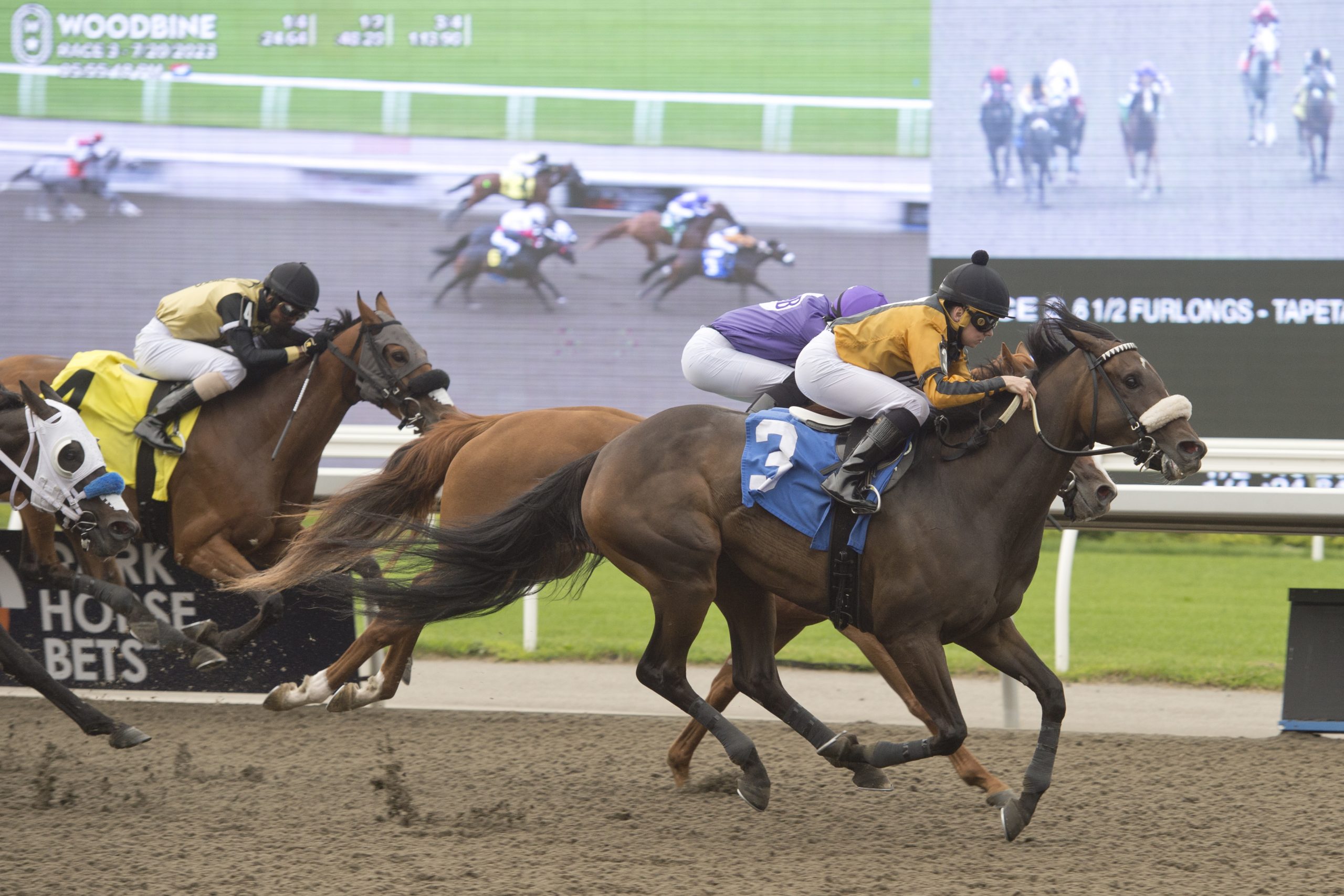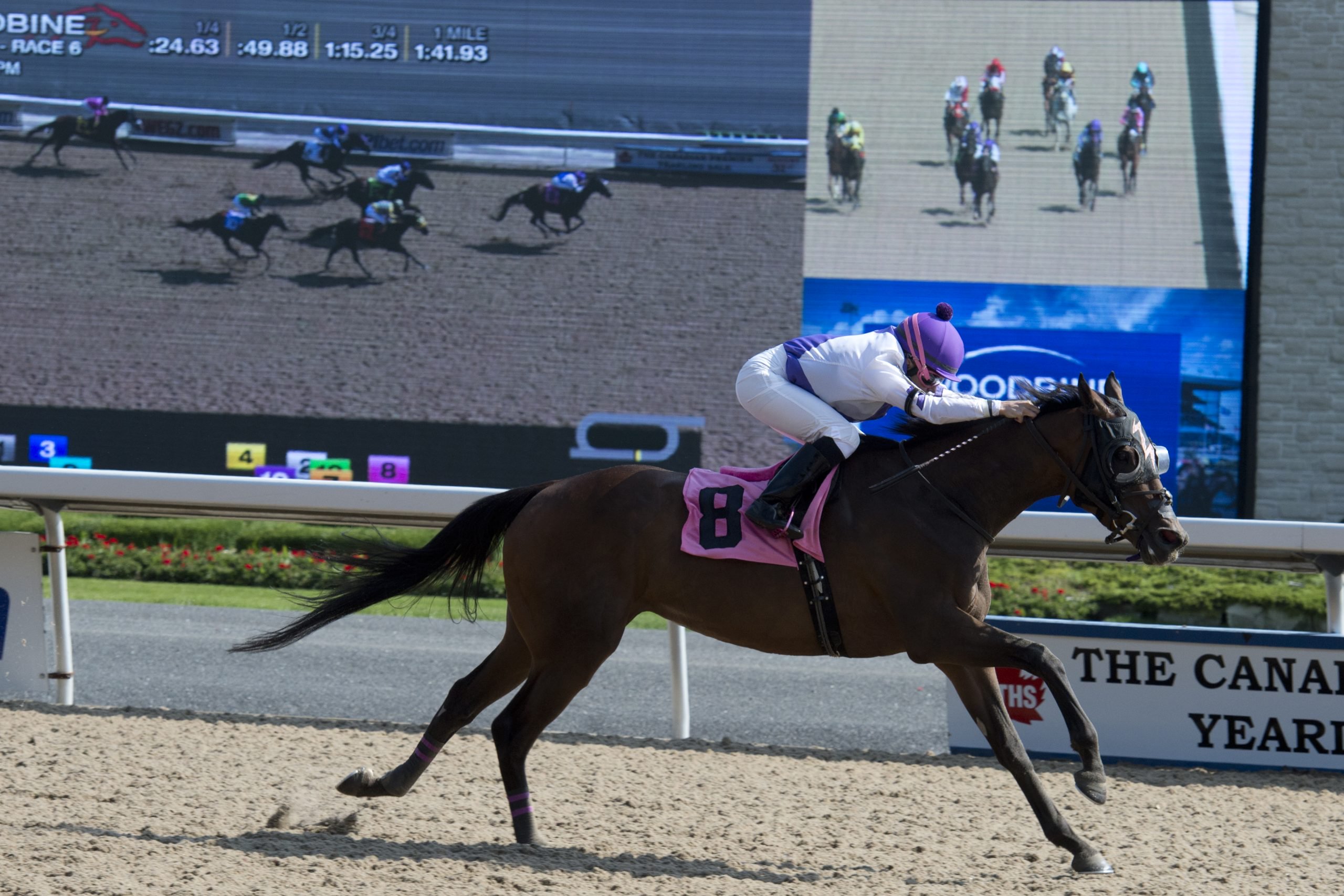 Jockey Isabelle Wenc’s first win at Woodbine aboard Tornando Cat on August 26, 2017 (Michael Burns Photo)