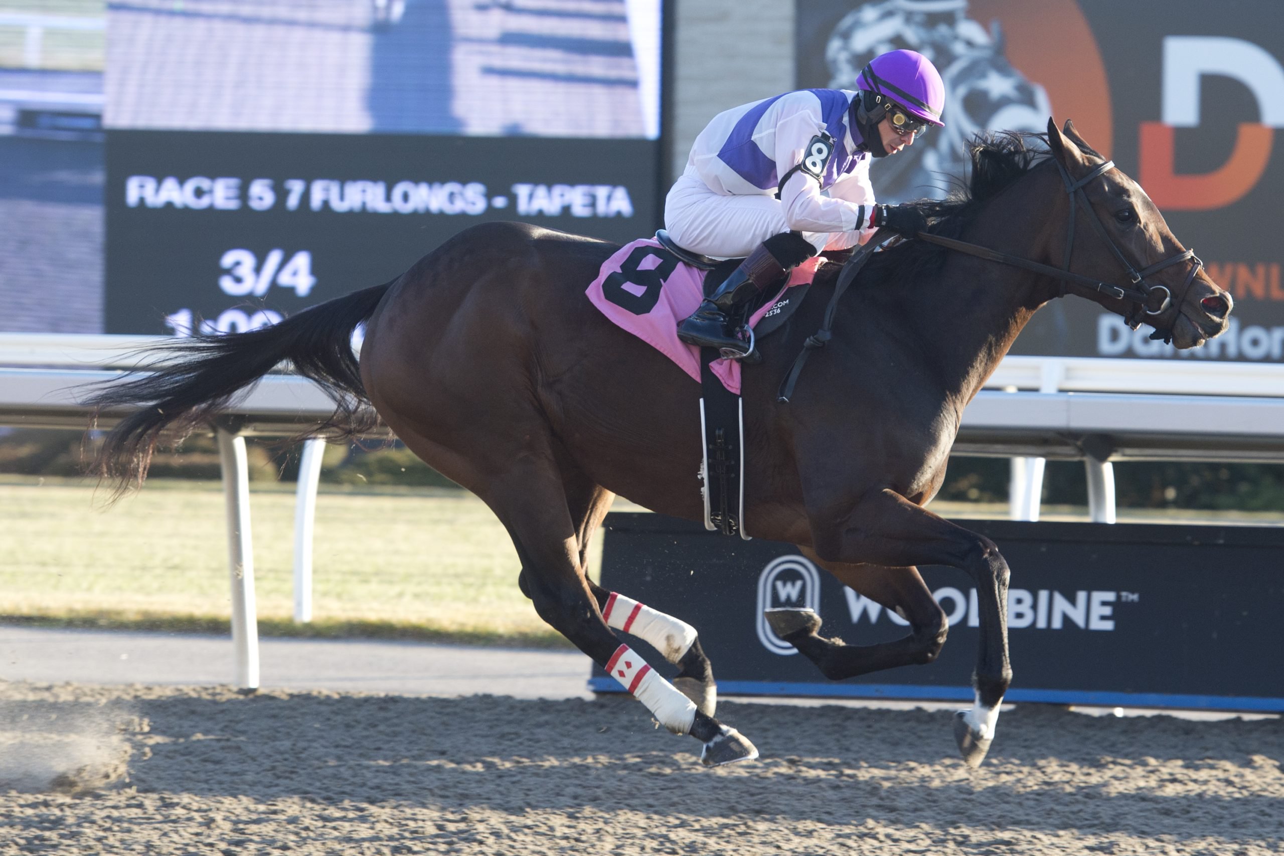 TORONTO, November 9, 2023 – Awesome Treat, a 5-year-old daughter of Awesome Patriot-Tiz a Treat, looks for her first stakes success in Saturday’s $175,000 Bessarabian Stakes (G2), at Woodbine. The seven-furlong main track feature for fillies and mares, 3-year-olds and upward, has drawn 14 starters, including Awesome Treat. Trained by Steve Attard, the dark bay mare, fourth in last year’s Bessarabian, heads into Saturday’s affair off a pleasing runner-up finish in the Ontario Fashion (G3) on October 14. Dismissed at 38-1, Awesome Treat rallied stoutly down the lane to miss top prize by a half-length in the six-furlong test. “She is awesome, she really is,” praised Attard. “She is a very nice mare. She never seems to surprise me. Just how she is and how she trains, you know what you are going to get from her. I wasn’t surprised at all with that effort last time. That’s her, a hard-trying mare, who always shows up. Six furlongs might be a bit short for her, but Emma [jockey, Wilson] gave her an incredible ride and they came flying in the stretch.” Bred in Kentucky by Kumud Sikand, who co-owns with Rakesh Sikand, Awesome Treat finished eleventh in her debut at Churchill Downs on November 28, 2020. She contested her next three races at Woodbine, and posted a fourth, third and ninth, before two starts at Fair Grounds, both fourth-place efforts. A return to Toronto resulted in a maiden-breaking score on October 29, 2022, a fourth in the Bessarabian and another win on December 4. Awesome Treat’s next four starts came at Turfway Park, including a second in the Wishing Well Stakes this January and a fourth in the Frog Stakes in March. “I have had her off and on since she was three,” noted Attard. “She has never run a bad race for us. This is my third year with her. She will race here and then she goes back to compete in the U.S. at some point of the season. We always love having her here.” The Kentucky-bred heads into the Bessarabian with a 2-4-1 mark from 16 starts, along with $161,845 (U.S.) in purse earnings. “Just the way she tries all the time is amazing,” praised Attard, who will have Jose Campos in the irons Saturday. “She can be a bit tough in the stall, but we love having her.” Gunner Bennett, who handles groom duties for Awesome Treat, echoed that sentiment. “For me, she’s a horse that doesn’t want to be pet,” said Bennett. “She doesn’t want to be messed with, but if you spoil her with carrots and love, she shows a soft side and it’s incredibly rewarding. There’s no better feeling than coming into the barn in the morning and seeing her throw her head out of her stall as soon as she hears me come in. Awesome Treat and jockey Jose Campos winning Race 5 on December 4, 2022 at Woodbine (Michael Burns Photo) Other starters include multiple graded stakes winner Our Flash Drive, along with graded stakes winners Loyalty, Midnight Stroll, Miss Dracarys, Ready To Venture (GB), Spun Glass and multiple graded stakes winner Artie’s Princess. Trainer Roger Attfield and Kinghaven Farms teamed to win the first two editions of the Bessarabian, in 1985 with Summer Mood and one year later with Playlist. The race is named after Canada’s champion older female of 1986, a multiple stakes winning daughter of Vice Regent trained by Michael Doyle and owned by Eaton Hall Farm. She finished her racing career with an 18-5-4 mark from 37 starts. Also on Saturday, 13 fillies and mares, 3-year-olds and upward, will travel 1 ¼ miles on the Tapeta in the $150,000 Maple Leaf Stakes (G3). The field includes multiple graded stakes winner Il Malocchio, who won last year’s edition, graded stakes winners Mille Girl and Solo Album, multiple graded stakes placed Angelou and multiple stakes placed Ever Smart. Conn Smythe, principal owner of the NHL’s Toronto Maple Leafs from 1927 to 1961 and builder of Maple Leaf Gardens, leads all owners with seven Maple Leaf crowns. The race was inaugurated in 1892. The Bessarabian is carded as race nine on Saturday’s 11-race program. The Maple Leaf goes as race seven. First post is 1:05 p.m. Fans can also watch and wager on all the action through HPIbet.com, bet365 and the Dark Horse Bets app. Field for the Bessarabian (G2) Post – Horse – Jockey – Trainer 1 – Spun Glass – Luis Contreras – Michael Trombetta 2 – Our Flash Drive – Patrick Husbands – Mark Casse 3 – Ready To Venture (GB) – Rafael Hernandez – Michael Stidham 4 – Baby No Worries – Willie Martinez – Tim Girten 5 – Dolce Sopresa – Ryan Munger – Josie Carroll 6 – Time for an Angel – Leo Salles – Michael Stidham 7 – Loyalty – Kazushi Kimiura – Josie Carroll 8 – Owen’s Tour Guide – Sofia Vives – William Armata 9 – Miss Dracarys – Sahin Civaci – Neil Drysdale 10 – Artie’s Princess (S) – Juan Crawford – Saffie Joseph, Jr. 11 – Collecting Flatter – Daisuke Fukumoto – Josie Carroll 12 – Awesome Treat – Jose Campos – Steve Attard 13 – Midnight Stroll – Trevor McCarthy – John Terranova 14 – Love to Shop – Justin Stein – Kevin Attard Field for the Maple Leaf (G3) Post – Horse – Jockey – Trainer 1 – Indy Champagne – Justin Stein – Layne Giliforte 2 – Inventing – Leo Salles – Kevin Attard 3 – Talbeyah (IRE) (S) – Patrick Husbands – Mark Casse 4 – Il Malocchio – Kazushi Kimura – Martin Drexler 5 – State of Mind – Sofia Vives – Josie Carroll 6 – Ready Lady – Jose Campos – Roger Attfield 7 – Ever Smart (S) – Trevor McCarthy – Neil Drysdale 8 – Angelou – Luis Contreras – Kevin Attard 9 – Ephrata (GB) – Daisuke Fukumoto – Josie Carroll 10 – Solo Album – Sahin Civaci – Mark Casse 11 – Millie Girl – Rafael Hernandez – Catherine Day Phillips 12 – Batyah – Eswan Flores – Josie Carroll 13 – Lady Brew – Ryan Munger – Steven Chircop Chris Lomon, Woodbine Communications / @WoodbineComms Share This:Share