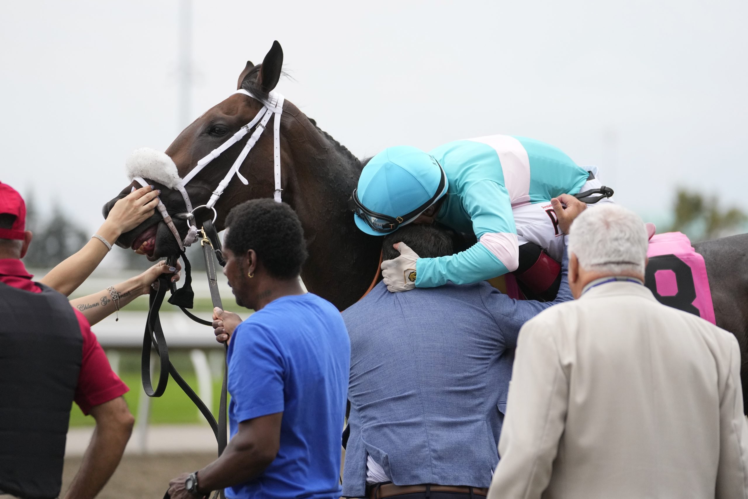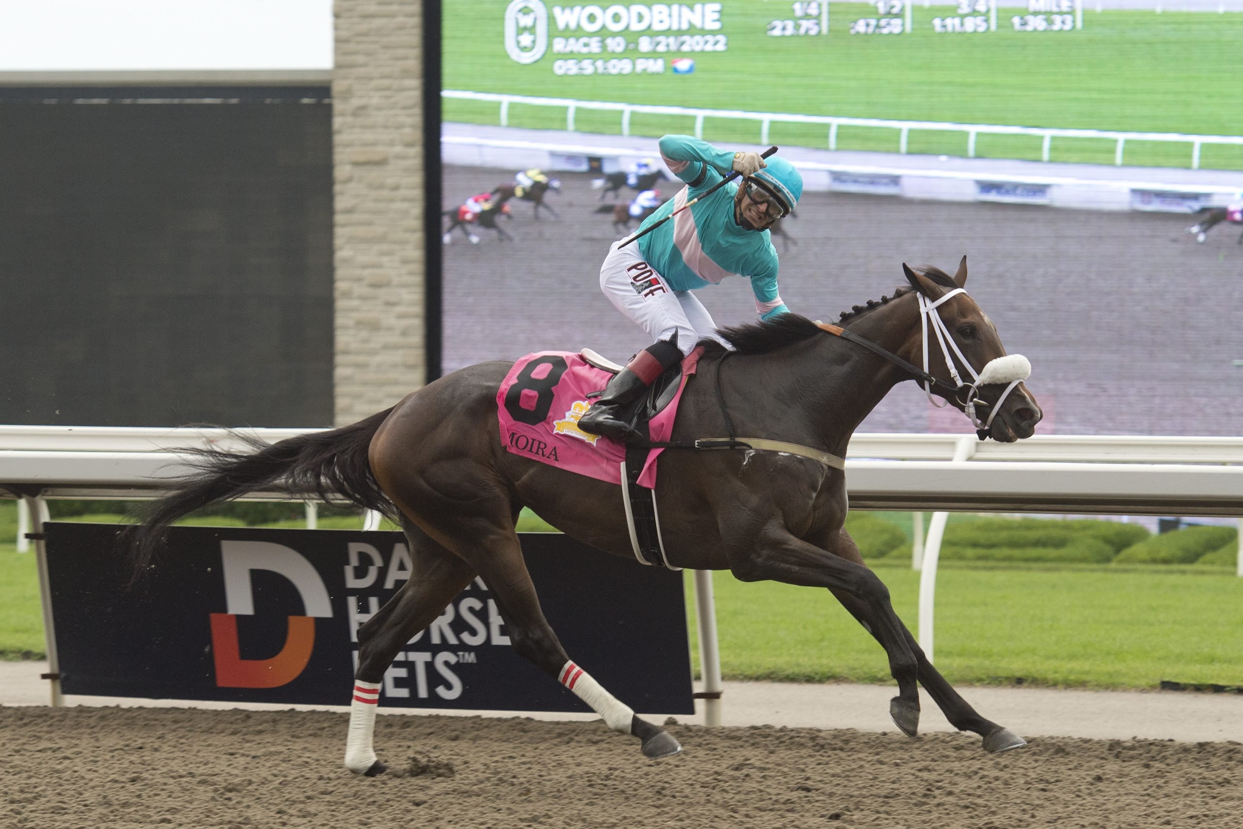 Age: 4 Sire: Ghostzapper Dam: Devine Aida Owner: Madaket Stables LLC, SF Racing LLC & X-Men Racing Trainer: Kevin Attard Breeder: Adena Springs Record: 12 starts (5-4-1) Earnings: $1,233,999 (U.S.) Awards: Canada’s Horse of the Year and champion 3-year-old female in 2022 Moira and jockey Rafael Hernandez winning the Queen’s Plate on August 21, 2022 at Woodbine (Michael Burns Photo) “The support we’ve received from our fans here at Woodbine has been amazing.” – Kevin Attard Moira and jockey Rafael Hernandez winning the Canadian Stakes on September 9, 2023 at Woodbine (Michael Burns Photo) “I never would have thought when we put this group together we would have got a horse like this.” – Donato Lanni Moira and jockey Rafael Hernandez winning the Woodbine Oaks on July 24, 2022 (Michael Burns Photo) “Every time I ride her, it’s not just another horse. She has a special place in my heart.” – Rafael Hernandez Moira, Rafael Herandez and Kevin Attard embrace after winning the Queen’s Plate on August 21, 2022 at Woodbine (Michael Buns Photo) “She is the epitome of toughness, tenacity, strength and athleticism.” – Kevin Attard Share This:Share