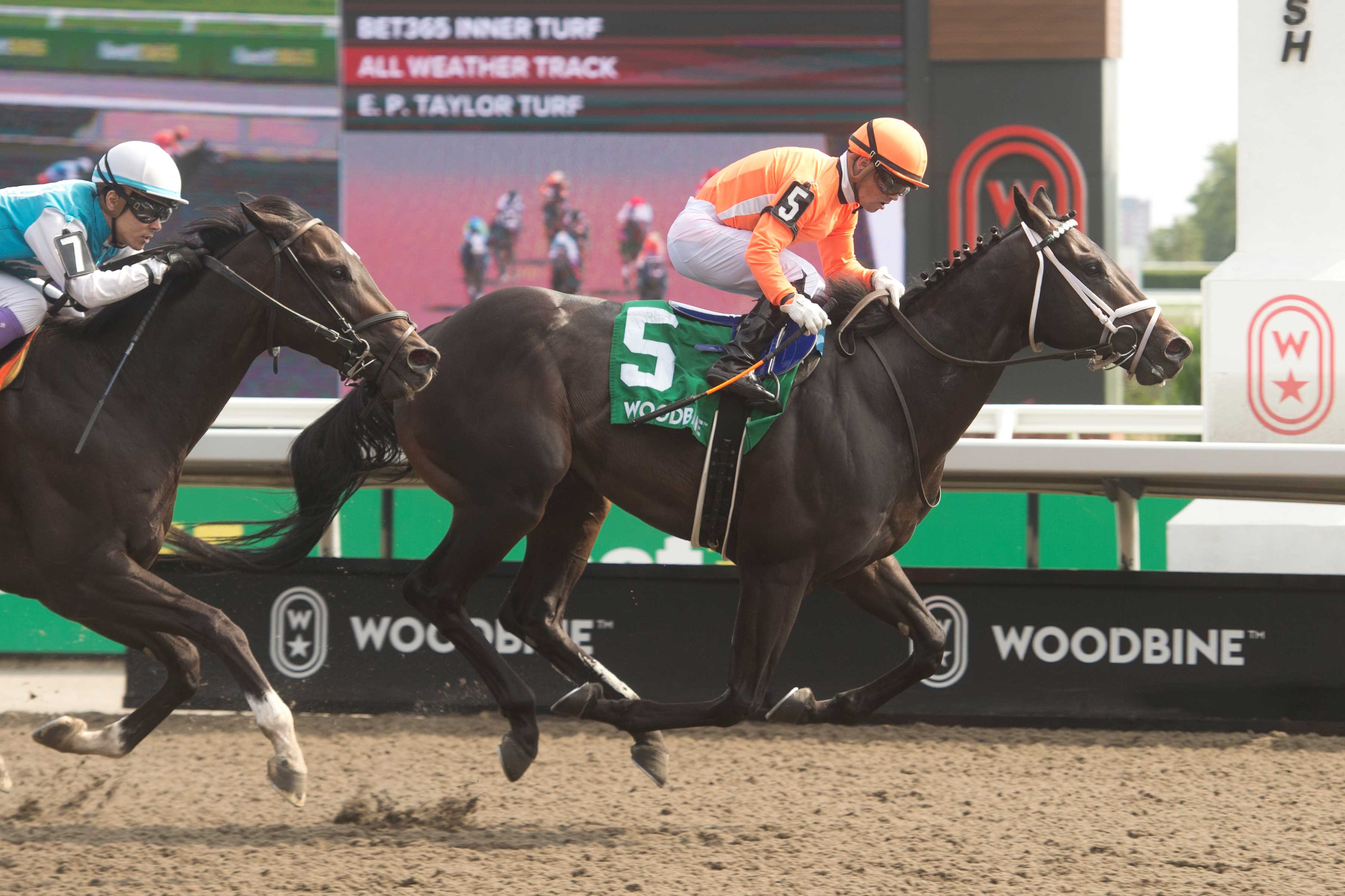 Recapping the Algoma Stakes, Elgin Stakes, Muskoka Stakes, Simcoe Stakes, & Vice Regent Stakes Just Follow Me just sensational in Algoma Stakes TORONTO, August 25, 2024 – Just Follow Me, with Emma-Jayne Wilson aboard, rallied from well off the pace to best 6-5 choice Little Teddy in the $100,000 Algoma Stakes, Sunday at Woodbine. Trained by Bill Tharrenos, the daughter of Old Forester-Marilyns Last Love arrived at the seven-furlong Algoma off a fifth in the Thunder Bay Stakes on August 4. Tabloid Material and Vandoo were one-two in the early going, the pair taking their five foes through an opening quarter in :23.73. Tabloid Material led Red Samurai by two lengths after a half in :47.46, while Just Follow Me followed the leader from in last. Just Follow Me had plenty of work to do coming off the turn for home, as Little Teddy took over the proceedings. Wilson and the dark bay continued to chip away and were rewarded with a three-quarter length score in a time of 1:24.78 over the all-weather track. Tabloid Material was third, followed by Red Samurai in fourth. Just Follow Me and jockey Emma-Jayne Wilson winning the Algoma Stakes on August 25, 2024 at Woodbine (Michael Burns Photo) It was the first stakes crown for the Michael Coll-owned filly, who finished fourth in the Georgian Bay Stakes on July 7 at Woodbine. “It didn’t pan out exactly the way I thought it would on paper, but that’s what a sales stakes is,” said Wilson. “My main thing for my filly was just getting her to be within where she could kick. I don’t know if you could see, from my perspective, she wasn’t happy on the inside. The moment I got her peeled through the outside, she really leveled off and shifted three gears and just blew by them.” Just Follow Me, now 3-1-0 from seven starts, paid $20.10 for the win. Bred in Ontario by John Carey, Just Follow Me was a $31,000 (CDN) purchase at the 2022 CTHS Ontario Premier Yearling Sale. “I always base buying yearlings on the mare,” noted Coll. “If the mare won as a 2-year-old, and if it has any offspring that won as a 2-year-old, then I take a serious look at it.” Junior Hot Shot excellent in Elgin TORONTO, August 25, 2024 – Junior Hot Shot earned his first stakes victory after a gutsy performance in Sunday’s $100,000 Elgin at Woodbine. Trained by John Ross for T and T Racing Team, the dark bay colt, who was contesting his fourth straight stakes event, arrived at the seven-furlong test over the all-weather track off a fifth in the Lake Superior on August 4. Things went far more swimmingly on this day. Speedeeman lived up to his name, zipping to the lead from the rail, as Justin Stein, aboard Junior Hot Shot, had his charge settled into second just off the pacesetter through an opening panel in :23.19. It was status quo after a half in :46.44, with Stein waiting to give Junior Hot Shot his cue. That moment came around the turn for home, as the pair forged to the front and took over the proceedings. Ahead by three lengths at the stretch call, Junior Hot Shot, the 2-1 choice, braced for the challenge of a hard-charging Yacht Boy and dug in gamely to hold his rival at bay by three-quarters of a length. Garofoli was third and Cooler Man took fourth. The final time was 1:24.35. Junior Hot Shot and jockey Justin Stein winning the Elgin Stakes on August 25, 2024 at Woodbine (Michael Burns Photo) “This horse, he’s got a lot of heart and a lot of talent,” said Stein, of the son of Souper Speedy- Executive Dreamer, who now fashions a record of 3-1-1 from seven starts. “He’s really versatile. And he really showed a lot of grit down the lane, just holding off the challenger, and he really knows how to win, and wanted it today.” Bred by Dr. B. Van Arem, Junior Hot Shot, who was a $55,000 (CDN) purchase at the 2022 CTHS Canadian Premier Yearling Sale, won his debut last October at Woodbine before a second next time out in the Frost King Stakes. He opened his 3-year-old season, on May 10 at Woodbine, in winning style. “It’s definitely conformation,” said Ross, of what stood out to him at the sale. “He’s got the body to go with the lovely foot and bone, that matches and coordinates, and when you get all those packages together as well as a really nice personality and attitude, I knew something had to come of this horse.” Junior Hot Shot paid $6.90 for the win. If You Insist was scratched. Souper Supreme just that in Muskoka Stakes TORONTO, August 25, 2024 – Souper Supreme, under Patrick Husbands, tussled for early command and was full of run late to take Sunday’s $200,000 Muskoka Stakes at Woodbine. After a runner-up debut on June 8 at the Toronto oval and a maiden-breaking score on July 6, the daughter of Souper Speedy-Platinum Steel put on a show in the 6 ½-furlong sprint over the all-weather track. A host of hopefuls scrapped over the lead, with Souper Supreme emerging on top. The Mark Casse trainee was in front by two lengths through an opening quarter in :22.64, and a length through a half in :46.63. Running comfortably entering the turn for home, Souper Supreme dashed away from her pursuers to hold a three-length advantage at the stretch call, and then motored to the wire with ease to record a 4 ¼-length score in a time of 1:18.20. Skylight Caper was second, Periwinkle finished third and Princess of Storm (also a Casse trainee), recovered to take fourth after a tough start. Souper Supreme and jockey Patrick Husbands winning the Muskoka Stakes on August 25, 2024 at Woodbine (Michael Burns Photo) The winner boasts the same connections – Casse, Husbands, owners Gary Barber and Michael Langlois, and breeder Ericka Rusnak, who won the 2023 King’s Plate with multiple graded stakes victor Paramount Prince. Souper Supreme, a $100,000 purchase at the 2023 CTHS Ontario Premier Yearling Sale, also appears to have a bright future. “I think she’s an upcoming little star,” praised Husbands. “She’s legit.” One major difference betw