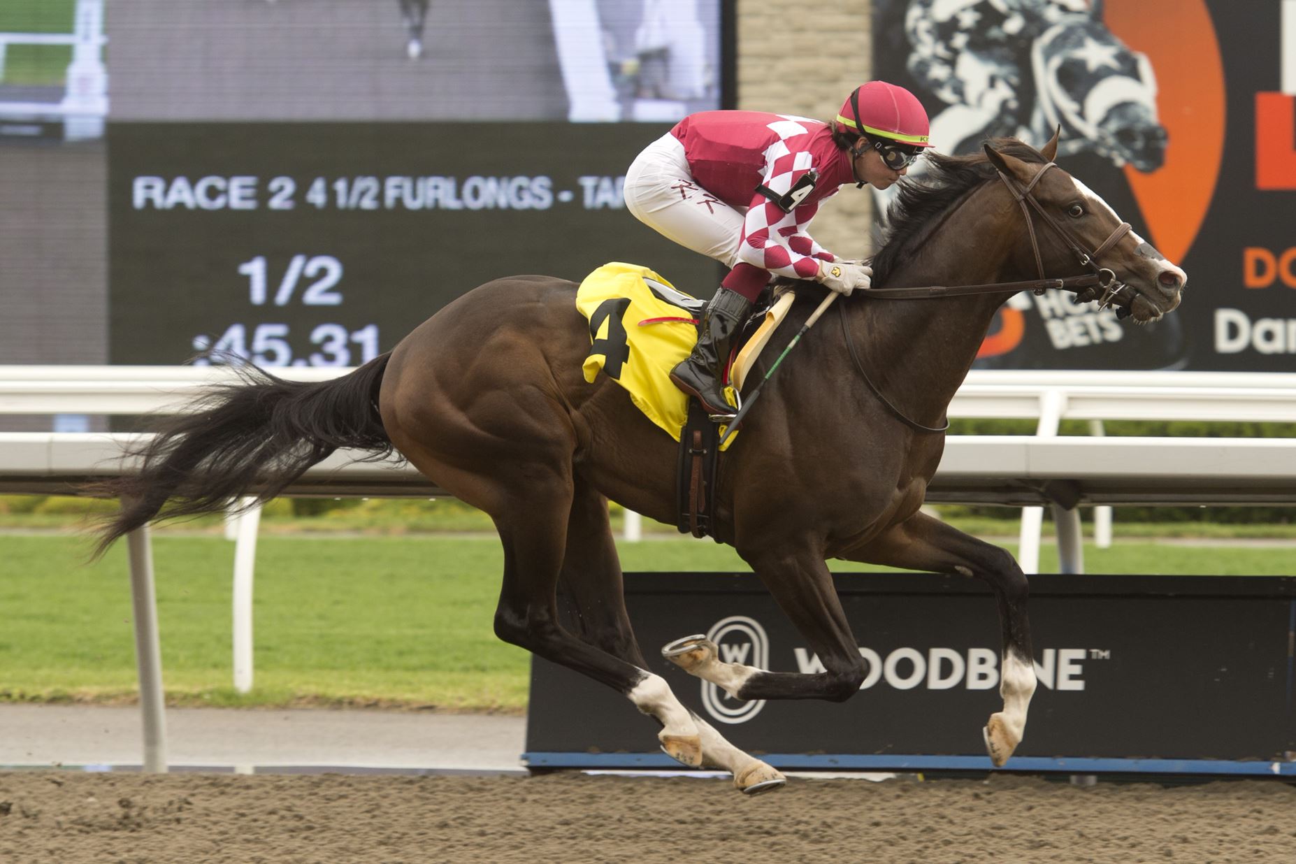 TORONTO, April 28, 2023 – Dual hall of fame trainer Mark Casse sends out the trifecta of Gran Spirited, Ninetyfour Expos and Stayhonor Goodside in the $125,000 Woodstock Stakes, Sunday at Woodbine. Gran Spirited and jockey Declan Carroll winning the Simcoe Stakes on August 28, 2022 at Woodbine (Michael Burns Photo) The six-furlong Woodstock, for 3-year-olds, has been a key prep race leading up to the Queen’s Plate, set for August 20, the first leg of the historic Canadian Triple Crown series.A son of Shaman Ghost, Gran Spirited won two of five starts in his rookie campaign, including the Simcoe Stakes, at 6 ½ panels on the Woodbine Tapeta last August. Owned by René Hunderup’s Heste Sport Inc., the dark bay, who was co-bred (along with Delaware Run Farm) in Ontario by Hunderup’s Norse Ridge Farms, will make his 3-year-old debut in the Woodstock. “He’s a nice horse and has really grown up through the wintertime. He’s training better this year than he did last year. We don’t have a whole lot of options with him, but I figure that he’s going to get better with more distance.” After a sixth to start his career, Gran Spirited broke his maiden next time out, a head score at six furlongs on the E.P. Taylor Turf Course on July 29. Declan Carroll, aboard for all five starts, gets the call again. Ninetyfour Expos and jockey Kazushi Kimura winning on the Woodbine Tapeta on May 29, 2022 (Michael Burns Photo) Bred in Ontario by Robert Marzilli and owned by D.J. Stable LLC, Ninetyfour Expos will also be making his sixth career start in the Woodstock. The dark bay son of Outwork finished third in his debut last May at Woodbine before stepping up to the plate with a resounding 8 ¼-length triumph at five furlongs over the Toronto oval Tapeta one race later on May 29. This will be the third stakes appearance for the gelding who was fifth and fourth, respectively, in last year’s Soaring Free and Grade 1 Summer, both run on the E.P. Taylor. “He’s training well. He’s wintered well, but he’s going to have to step his game in this one. There are a couple of really nice horses in this race.” Stayhonor Goodside and jockey Kazushi Kimura winning on the Woodbine Tapeta on May 22, 2022 (Michael Burns Photo) Stayhonor Goodside, another D.J. Stable LLC sophomore, is Casse’s third hopeful. A son of Honor Code, bred in Ontario by Stan Dodson, the dark bay won first time out last May going 4 ½ panels on the Woodbine Tapeta. His next five races were all stakes, including a third in the turf Soaring Free and a second in last October’s 1 1/16-mile Cup and Saucer, also run on the E.P. Taylor. The gelding brings a mark of 1-1-1 from six starts into the Woodstock. “He’s training well too. He had a good winter, but like Ninetyfour Expos, he’s going to have to step it up on Saturday.” Casse, who recently won his 12th straight and 15th overall Sovereign Award as Canada’s champion trainer, won the 2018 edition of the Woodstock with Curlin’s Honor. Jorge Delgado, who trains two-for-two New York Thunder (supplemented to the race), is looking forward to seeing the son of Nyquist step up to the stake ranks. The Kentucky-bred, owned by AMO Racing USA, will be making his seasonal debut after two triumphs at Gulfstream in November and December. “We are really looking forward to seeing his first start as a 3-year-old,” said Delgado. “Everything tells us he is a really nice horse. He is one of the best horses I have in my barn and he is doing very well, and he’s just waiting for the race on Sunday. Most of the time, the way he breezes, it’s like he’s telling you he can be the next champion horse. We will take things step-by-step and we plan to do great things with him. He’s very smart, a good eater, and he loves what he does. “I’m also very grateful to AMO Racing USA (Kia Joorabchian) for giving me this opportunity with such a nice horse and to be able to run a horse in this type of race.” The Woodstock is Race 9 on Sunday’s 10-race card. First post time is 1:10 p.m. Fans can watch and wager on all the action via HPIbet.com and the Dark Horse app. FIELD FOR THE $125,000 WOODSTOCK POST – HORSE – JOCKEY – TRAINER 1 – Stayhonor Goodside – Emma-Jayne Wilson – Mark Casse 2 – Gran Spirited – Declan Carroll – Mark Casse 3 – New York Thunder (S) – Ricardo Santana, Jr. – Jorge Delgado 4 – Ship the Goods – Kazushi Kimura – Christophe Clement 5 – Ninetyfour Expos – Emma-Jayne Wilson – Mark Casse 6 – Opposites Attract (S) – Justin Stein – Michael Trombetta Chris Lomon, Woodbine Communications, @WoodbineComms Share This:Share