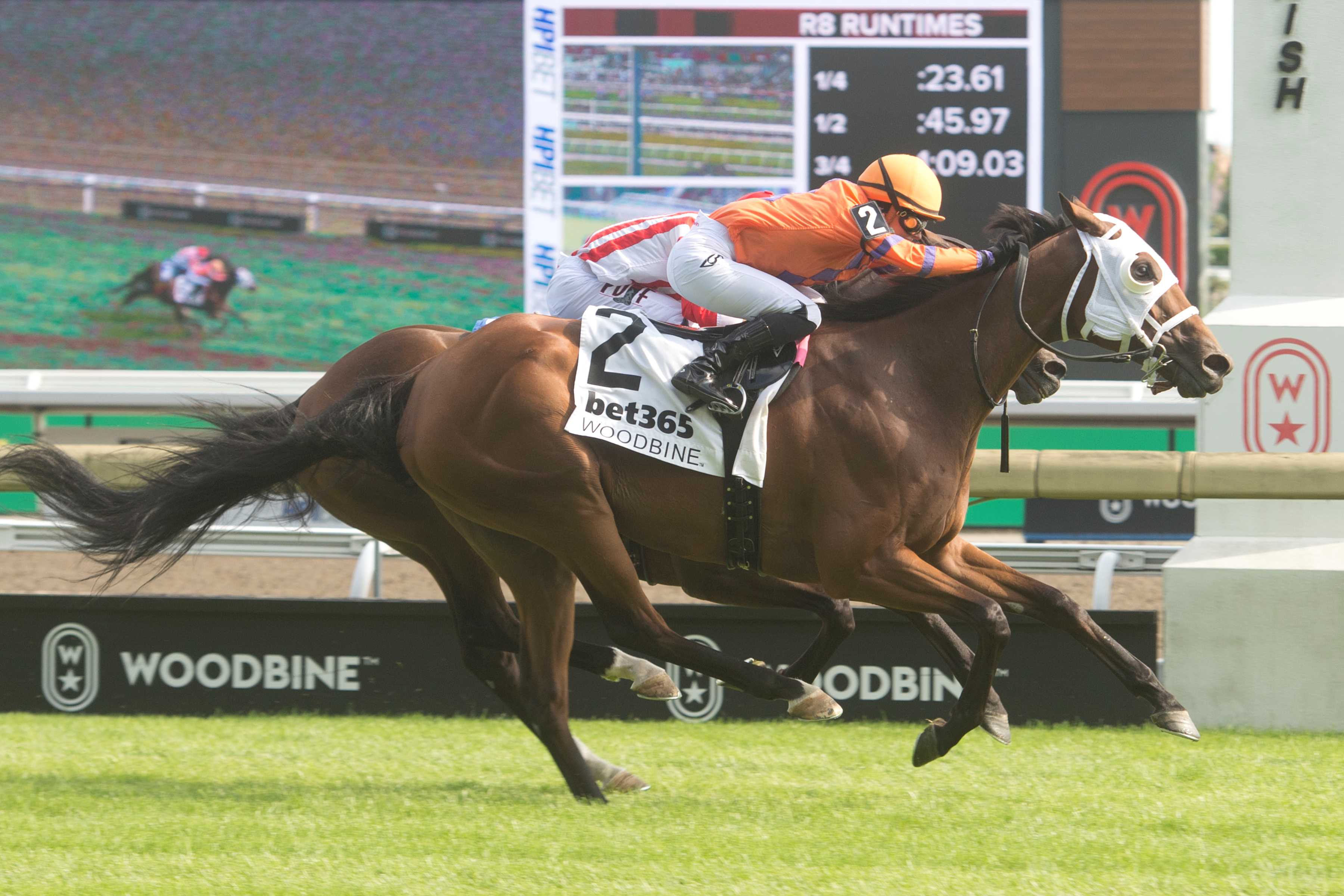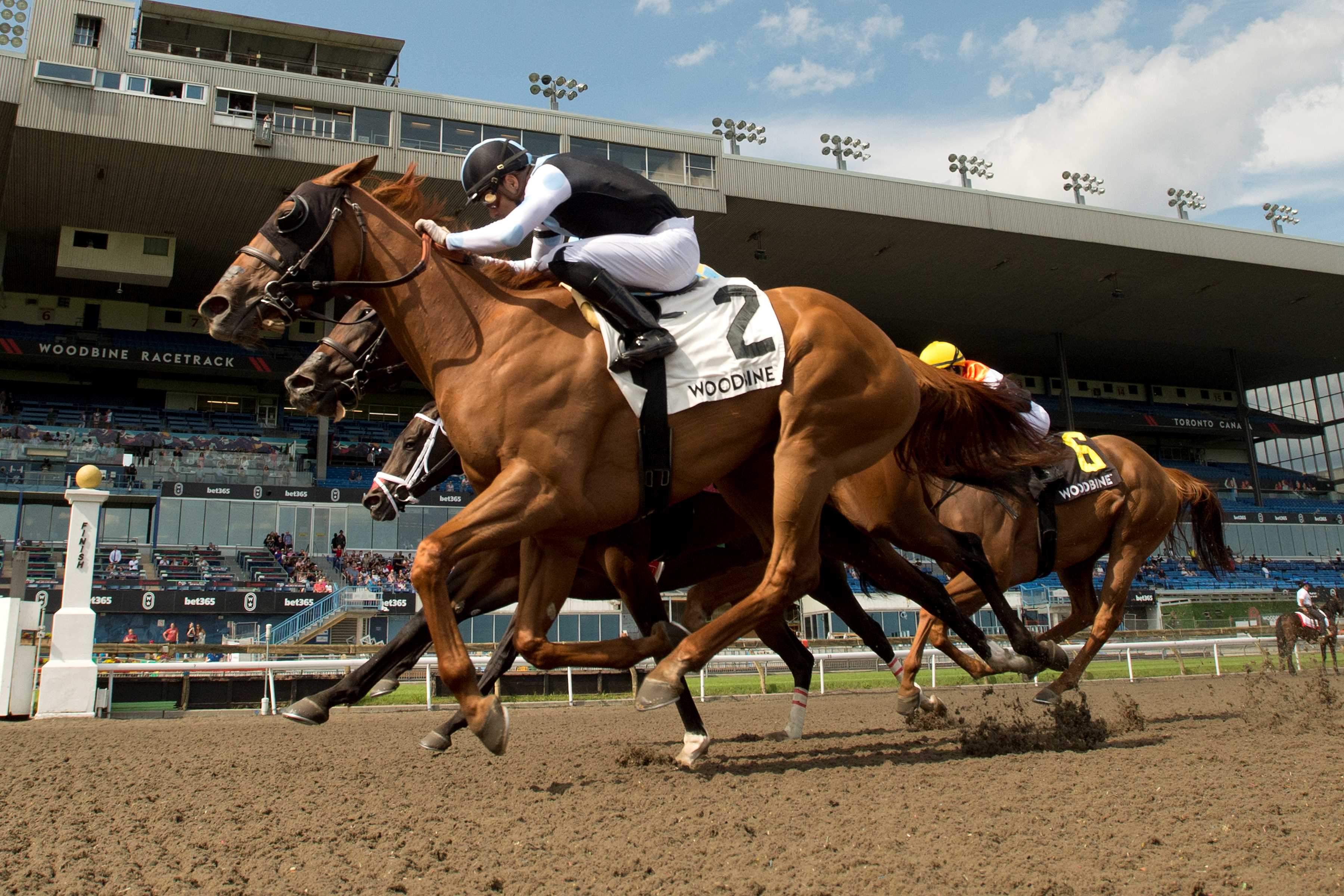 TORONTO, July 20, 2024 – Don MacRae trainee Cruden Bay notched his first stakes score, taking Saturday’s $175,000 bet365 Connaught Cup (G2T) at Woodbine. A pair of Mark Casse trainees, First Empire and Capture the Lion (supplemented to the race) were one-two in the early going, while Sofia Vives, aboard Cruden Bay, had the bay settled into last of eight through an opening quarter in :23.61 in the seven-furlong event for 3-year-olds and up contested over a E.P. Taylor turf listed as good. The Casse duo continued to set the tone through a half in :45.97, followed by Saratoga Flash and War Bomber (IRE), with Cruden Bay still running along in eighth. When the field turned for home, it was anyone’s game. War Bomber burst through to take the lead mid-way down the lane, but Cruden Bay had also found an opening and began to gather momentum in the late going. At the wire, Cruden Bay, whose only other stakes appearance was a fourth in Steady Growth Stakes last December, got up to post a neck win in a time of 1:21.27. War Bomber finished 3 ¾ lengths ahead of third-place finisher Ironstone. Capture the Lion was fourth. Cruden Bay and jockey Sofia Vives winning the bet365 Connaught Cup (G2) on July 20, 2024 at Woodbine (Michael Burns Photo) Vives, who rode the son of Big Screen-Executive Affair for the first time on June 1 (a win at seven furlongs on the E.P. Taylor), heaped praise on the gelding. “Down the lane, you just got to give him one clear run and not get him stopped up,” said Vives, the 2023 Sovereign winner as Canada’s champion apprentice. “Today, I got the rail trip. It was a perfect trip. It played out great. There were three horses in front of us and two next to us, and they split just perfectly. They parted perfectly. He’s one that you have to tell him what to do, and he listens, and he did just that today.” MacRae was equally elated with the stirring score courtesy of the $33,822 purchase at the 2019 CTHS Canadian-bred Yearling Sale. “I was I was jumping up and down. I mean, the thing about him is he needs the whole stretch to get there. If you look for him, he knows how to win by a nose, and he tries all the way. And when she punched out, I knew he was coming.” With the victory, Cruden Bay, owned by Michael Lay, and bred in Ontario by Spring Farm, is now 7-9-1 from 22 lifetime starts. “I would just like to say I am really happy for Michael Lay and my team,” said MacRae. “He’s had this horse since he was a baby, and he deserves this.” Cruden Bay paid $10.50 for the win. In other Saturday stakes action at Woodbine, Solo Album took the early lead and held on gamely to hit the top of the chart in the $135,000 Trillium Stakes Presented by Don Julio (G3). Ridden by Sahin Civaci, who one race earlier teamed with Mark Casse trainee My Boy Prince to win the Plate Trial Stakes, the 4-year-old daughter of Curlin-Summer Solo grabbed a slim lead over U.S. invader Ocean Club into the first turn of the 1 1/16-mile main track event for fillies and mares, 3-year-olds and up. Solo Album was a head clear of Ocean Club through a quarter in :24.65, followed by Batucada and Ro Town. The chestnut filly maintained her head advantage on Ocean Club after a half in :49.20, while the trio of Batucada, Ro Town and Fashionably Fab kept close tabs on the pacesetters. Solo Album rounded the turn with pressure to the outside from Fashionably Fab, who had burst through a seam a few strides before the field straightened for home, and a game Ocean Club. A length on top at the stretch call, Solo Album fended off a late charge from fellow Casse trainee Forever Dixie, who was supplemented to the race, by a head. Multiple stakes winner Fashionably Fab, a winner of five straight heading into the Trillium, was a neck back in third. Ocean Club was fourth. Five Towns (GB) was scratched. The final time was 1:43.90. Solo Album and jockey Sahin Civaci winning the Trillium Stakes Presented by Don Julio (G3) on July 20, 2024 at Woodbine (Michael Burns Photo) “I know she could come off the pace and looking at it, no one was really going, and the pace was quite easy, and the rail was open, so I went,” said Civaci. “I felt them coming so I was riding hard, and she held on.” Owned by Gary Barber, Eclipse Thoroughbred Partners, and Steven Rocco, Solo Album, bred in Kentucky by Payson Stud Inc., is now 3-5-1 from 14 starts. She was a $535,000 purchase at the 2021 Keeneland Association September Yearling Sale. Solo Album, who took last year’s Grade 3 Selene Stakes, paid $6.60 for the win. Chris Lomon, Woodbine Share This:Share