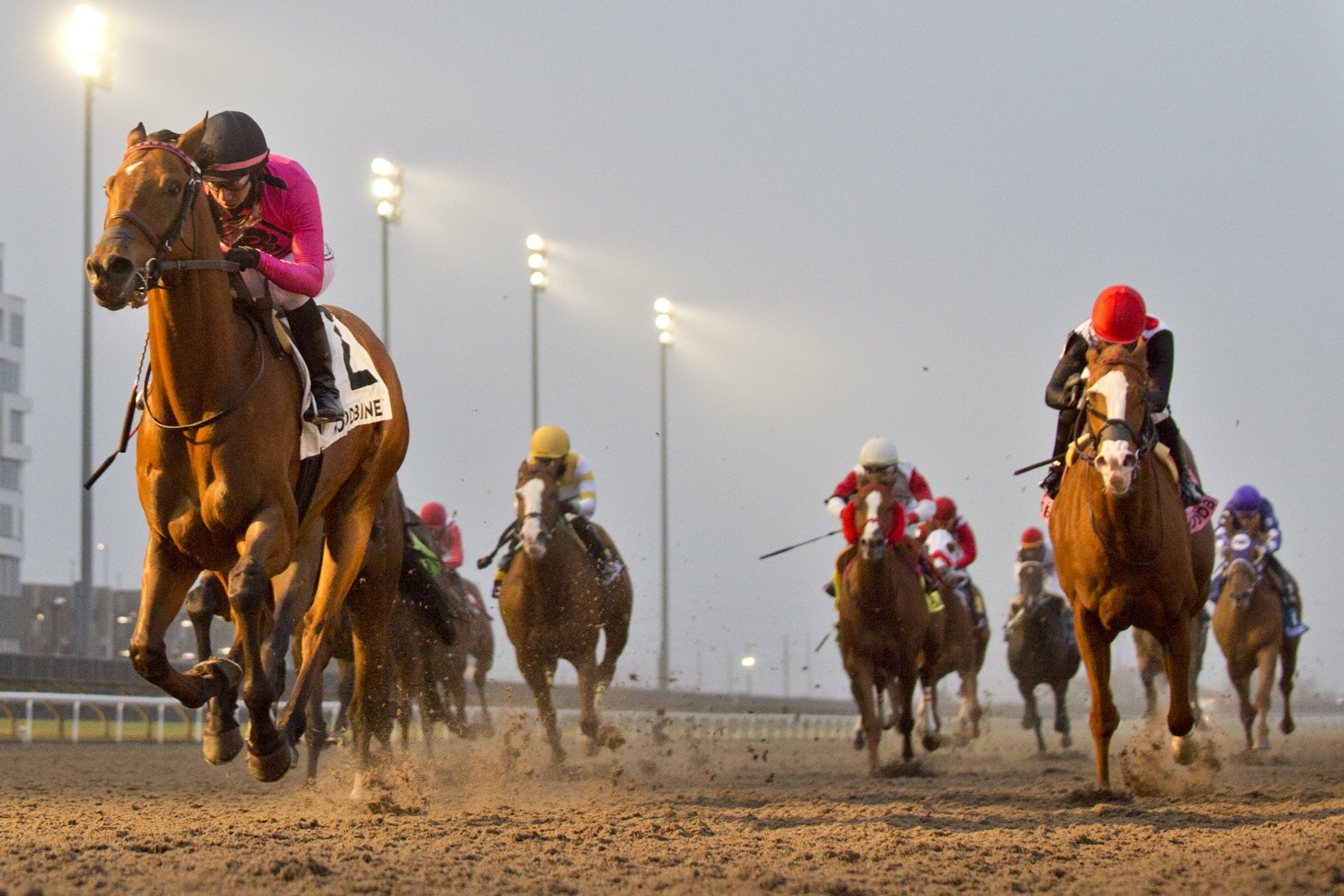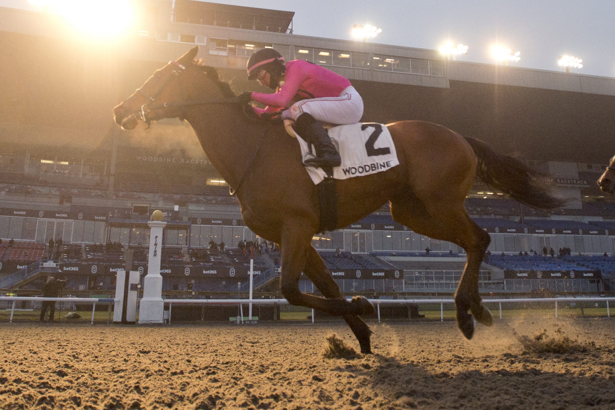 TORONTO, December 3, 2023 – Conglomerate, under Luis Contreras, rallied impressively to best 13 rivals in the $150,000 Valedictory Stakes (G3), for 3-year-olds and up, Sunday at Woodbine. It was stablemate Win for the Money, in rein to Patrick Husbands, who set the early tone, gliding over from post eight to take the lead, followed by the trio of Meyer, So High (GB), and War Court. Conglomerate, with Luis Contreras up, sat seventh through an opening quarter reached in :24.98. Conglomerate and jockey Luis Contreras winning the Valedictory Stakes on December 3, 2023 at Woodbine (Michael Burns Photo) Win for the Money continued to run along unencumbered on the front end through a half-mile in :49.71, holding a 2 ½-length advantage over Meyer, who was shadowed to his inside by So High, while Conglomerate, at 15-1, had moved into fifth. Reaching three-quarters in 1:15.61, Win for the Money was still in control and asked for his best run as the field straightened for home. Conglomerate, chasing his first stakes crown for owner Gary Barber, continued to pick off his foes and improve his position, moving into second at the stretch call. The son of Lemon Drop Kid-Maddy’s Heart, trained by dual hall of famer Mark Casse, wrested the lead away and went on to notch a 1 ½-length score in a time of 2:31.49. Collective Force came on to finish second. Win for the Money and Palazzi, both trained by Casse, finished third and fourth, respectively. Conglomerate and jockey Luis Contreras winning the Valedictory Stakes on December 3, 2023 at Woodbine (Michael Burns Photo) “Well, I know the first turn is going to be trouble because everyone wants to get in position, but this horse helped me the whole way,” said Contreras. “After the first turn, when everyone was in trouble, I got a perfect trip and had lots of horse the whole way. “The horse gave me a great feeling and I was okay the whole race. The only thing was when I saw Patrick, I thought he had more horse. I was a bit worried, but my horse kicked hard at the end.” It was the 26th start for the 6-year-old gelding, now 8-7-4, who was bred in Kentucky by Liberty Road Stables, LLC. The bay was sixth in this year’s Eclipse Stakes (G2) and ninth in the King Edward Stakes (G2T). Conglomerate arrived at the Valedictory off a sharp effort in an allowance optional claiming race on October 29th when he posted a 1 ¾-length win at 1 1/16 miles over the Tapeta. He paid $32.90 for today’s win. Trainer Martin Drexler, who is having a career year, won five races on the card. Chris Lomon, Woodbine Communications / @WoodbineComms Share This:Share