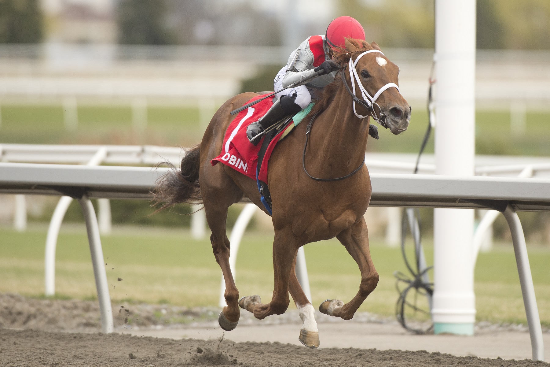 TORONTO, April 26, 2025 – Brindi (IRE), and Listen and Learn, both from the barn of Kelsey Danner, went one-two in the $125,000 Star Shoot Stakes, a 6-furlong sprint for 3-year-old fillies, Saturday at Woodbine. Brindi (IRE), under two-time Canadian champion apprentice Sofia Vives, rocketed out of the gates in the first stakes race of the 2025 Woodbine season, as 6-5 choice Winterberry shadowed the leader to her outside through an opening quarter reached in :22.36. The pacesetting duo, well in front of their four rivals, continued to slug it out through a half in :44.80, followed by Social Code, Charlotte’s Heart, Salt and Listen and Learn. Brindi (IRE) braced for the challenge of Winterberry, who dialed up the pressure as the pair turned for home, but Vives and the chestnut filly dug in gamely along the rail and repelled the challenge. Ahead by a half-length at the stretch call, Brindi (IRE) was kept to task and held strong in the final strides to cross the wire a 1 ¾-length winner. Listen and Learn rallied wide to secure second, a head in front of Social Code. Charlotte’s Heart was fourth, followed by Winterberry and then Salt. The final time on a blustery afternoon was 1:10.75. Brindi (IRE) and jockey Sofia Vives winning the Star Shoot Stakes on April 26, 2025 (Opening Day) at Woodbine (Michael Burns Photo) Vives, who won five races on opening day last year at Woodbine, including the Star Shoot with Sabatini, praised Danner for having the filly primed for her first Canadian test. “Kelsey had her ready today,” said Vives. “Thank you to her and her team for giving us the opportunity. The filly broke sharp today. With the way the weather is, speed is carrying, so, you put her up there. We had a tough horse to beat, but she proved today she was the better one.” A daughter of No Nay Never out of the Shamardal mare Salamah (IRE), Brindi (IRE), owned by Robert M. Evans, earned her first stakes victory and is now 3-0-1 from seven starts. “I was really confident with her from the start [of the race],” said Vives, of the horse who has been in the Danner barn since this past November. “You got to come in these races confident and when somebody ships someone in, like Kelsey does, be ready that they’re going be pretty tough to beat.” The Star Shoot was Brindi’s fourth start of the season. She came into the race off a trio of tilts on the Tapeta at Turfway Park, including a fourth in the 6-furlong Serena’s Song Stakes on March 29. Brindi (IRE) debuted with a pair of 5 ½-furlong races over the Saratoga turf last summer. She broke her maiden in her third start, at Delaware Park, in an ‘about’ 5-furlong turf sprint, as the 2-5 choice. She followed up that victory with another win in her 3-year-old debut in a 6 ½-furlong race at Turfway Park on January 17. Bred by Framont Ltd., Brindi (IRE) was a $75,000 (USD) purchase at the 2024 Keeneland Association Horses of Racing Age sale. She paid $10.60 for the Star Shoot win. Jockey Sofia Vives, Woodbine CEO Michael Copeland, and Assistant Trainer Matt Hartman (Michael Burns Photo) In other Saturday racing news, Bob and Jules, a 4-year-old son of Old Forester, won the first race of the season. Under Brooke Bays, the bay gelding, bred in Ontario by John and Breeda Hayes and trained by Carrie Russiani – she also co-owns with David Grant – broke his maiden in his second career start. Bob and Jules won the 5-furlong main track sprint by a head and paid $6.50 for the victory. Affrie Ward, who competed at Northlands Park in 2011 and also rode in his home country of Barbados, won the third race with first-time starter Buff Bay. The 3-year-old son of Reload paid $28.90. Live Thoroughbred racing at Woodbine continues Sunday afternoon on a card that includes the $125,000 Woodstock Stakes. Post time is 1:05 p.m. Chris Lomon, Woodbine Share This:Share