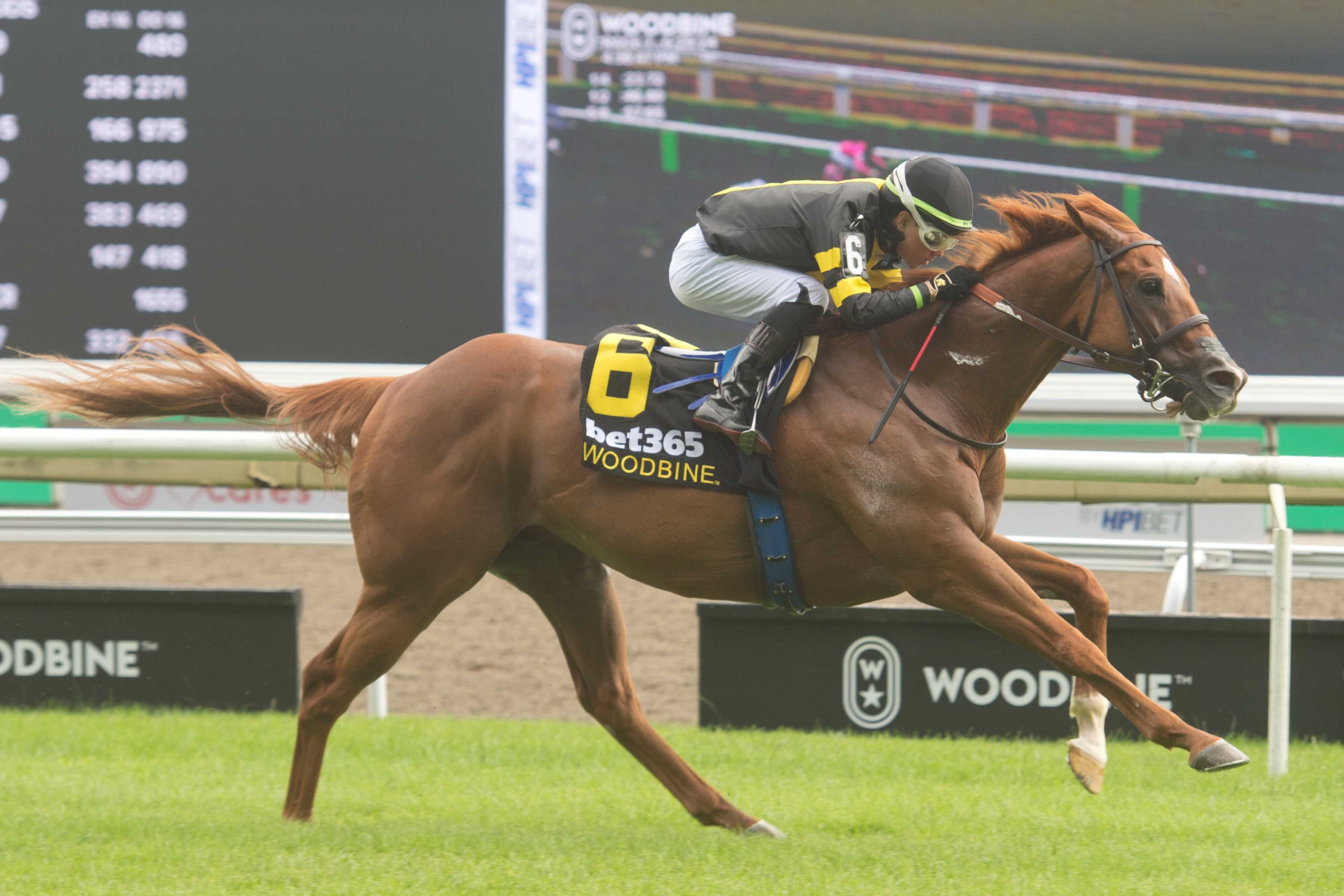 TORONTO, June 29, 2024 – The well-accomplished eight-year-old gelding Filo Di Arianna (BRZ) added another graded stakes victory to his name with a win in Saturday’s Grade 2 bet365 Highlander Stakes at Woodbine Racetrack. Contested at six-furlongs over the E.P. Taylor Turf, the Mark Casse trainee Filo Di Arianna (BRZ) and jockey Kazushi Kimura broke well to go forward and sat just off leader Step Forward, who carried the lead through the turn and into the stretch. The top pair kept separation on their rivals for a long portion of the E.P. Taylor stretch. Step Forward showed plenty of grit to try and go the distance, but couldn’t hold off the powerful Filo Di Arianna (BRZ), who overtook in the final sixteenth to win by 2 ¾ lengths. Witty, who got away fifth, finished strong to edge Step Forward for second, while the 8/5 favourite Oceaninc finished fourth. Filo Di Arianna (BRZ) and jockey Kazushi Kimura winning the bet365 Highlander Stakes (G2) on June 29, 2024 at Woodbine (Michael Burns Photo) The fractions were :23.72, :46.40, :57.65 and the final time was 1:09.75. A Sovereign Award winner, Filo Di Arianna (BRZ) had last run in the Grade 1 Jaipur at Saratoga on June 8 (finishing seventh) prior to Saturday’s race. The eight-year-old is now four for four in races on the E.P. Taylor Turf and five for six overall at Woodbine. “He’s been fighting with really nice horses,” said Kimura post-race. “Today I was more comfortable and confident. He’s a quality horse.” Filo Di Arianna (BRZ) is now a three-time graded stakes winner for owners Gary Barber, Wachtel Stable and Peter Deutsch. His career numbers now read 16-8-3-1 and over $550,000 earned. A $2 win ticket on Filo Di Arianna (BRZ) returned $6.30. Share This:Share