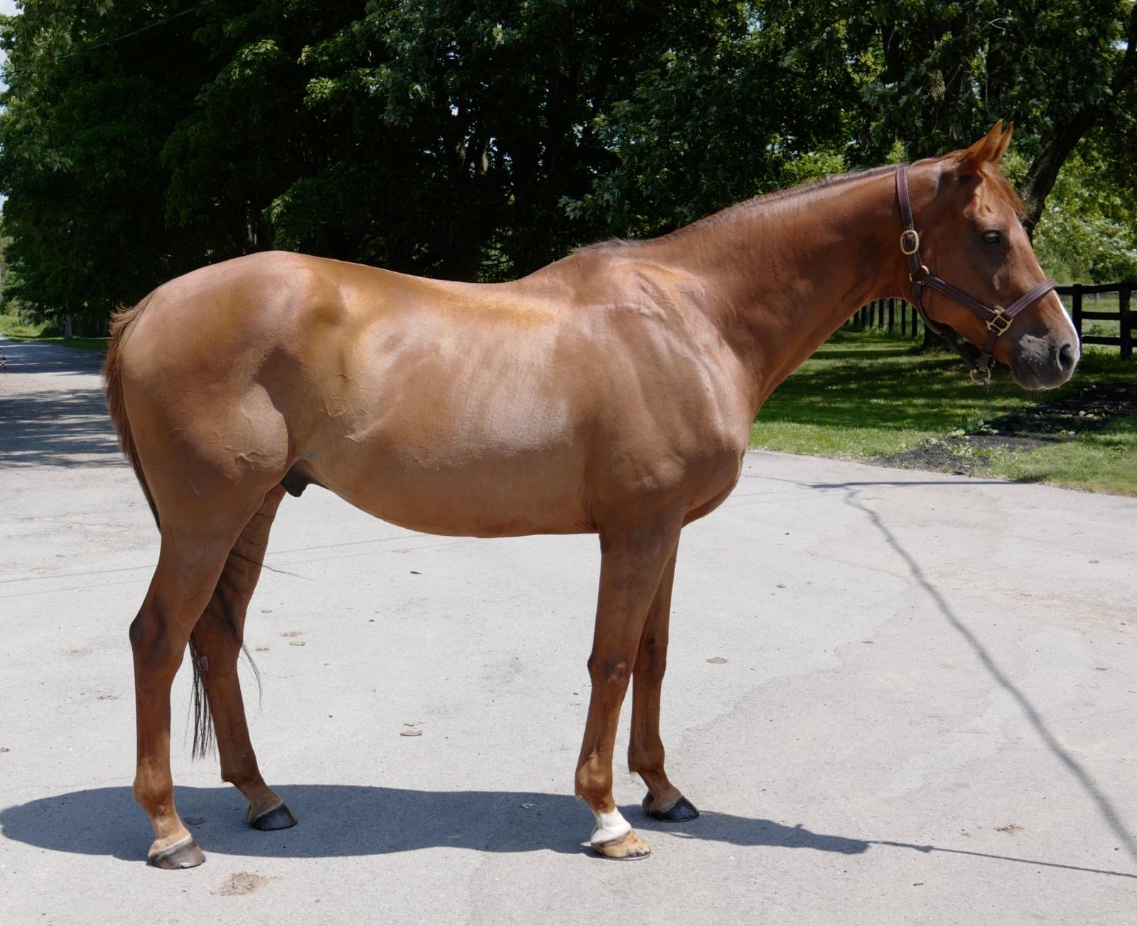 Standing in the ring, Barb Moore gazed into the eyes of a striking chestnut gelding and saw something she didn’t expect. After saying goodbye to her heart horse, Jag, in February, the idea of welcoming another into her life felt unimaginable. The bond they shared over 27 years seemed irreplaceable. Just over a month later, Moore visited LongRun, the respected horse retirement and adoption organization founded in 1999. On its pristine 100-acre property in Hillsburgh, Ontario, she watched as a horse cantered – a smooth, three-beat gait between a trot and a gallop – around the enclosed arena. Moore, a longtime horse owner and rider, was captivated. The horse was Florida Won, now known as Felix. “The first thing I notice is their eyes and he has these kind, beautiful eyes. I saw him training with a lady, who was riding him in the arena, and I thought, ‘What a sweetheart.’ He just moved beautifully. He was so kind and I loved his personality. So, I thought, ‘This is the horse for me.’ He had this way about him. Winning Form On the racetrack, the son of Birdstone had a penchant for winning ways. Bred in Kentucky by Gainesway, Florida Won was consigned by his breeder to the 2012 Keeneland September Yearling Sale where he sold for $385,000. Over 45 races, Florida Won took on top-flight competition, winning on 10 occasions while achieving status as a multiple graded stakes winner. Florida Won and jockey Ademar Santos winning Race 9 on October 31, 2021 at Woodbine (Michael Burns Photo) After his final race, on Nov. 19. 2021, Florida Won, who recorded $585,071 in purse earnings, was donated to LongRun by owner Domenic DiLalla of Centennial Farms (Niagara) and trainer Ross Armata, Jr. His journey after racing wasn’t a straight path, but today, the 15-year-old gelding is living the good life with Moore. “LongRun tries to offer all of its graduates a safety net, whether it be emergency financial help or reintroduction into our care should circumstances with the adopter change and dictate the horse’s return, which was the case with Felix,” said Vicki Pappas, LongRun co-founder and chairperson. “We are so happy that Felix and Barb found one another.” Finding the Right Match Moore is grateful they did. “He’s got that playful kind of personality. He’s very quirky and he just loves to play. He’s just got this kind side to him. I have found a beautiful horse. He’s just a lot of fun. You can see it in his eyes. He’s very playful. He’s just the type of guy that just really wants to be happy and have a good time.” Florida Won, now known as Felix Janet Hall, Moore’s longtime friend and an accomplished riding coach, saw it immediately. “This horse just looked so sweet and kind,” recalled Hall. “I love his conformation, too. He appealed to me instantly.” Just like Up Pops the Devil did for Hall over 30 years ago. Hall has a long history with LongRun, holding the distinction of being its very first adopter. In 1992, while working at Woodbine Racetrack, Pappas discovered a horse named Up Pops the Devil, who had raced 127 times over nine seasons, winning 27 races and earning more than $266,000. Nearing the end of his career, he became the inspiration behind what would eventually become LongRun. Hall adopted him. “My husband worked at Woodbine for 39 years and knew Vicki. She approached him – I rode hunters and jumpers for many years – about this horse, Up Pops the Devil, and my niece happened to be looking for a horse. He was wonderful, but he was a little too much for my niece to handle. We only had him for six months before he ended up moving on to Bradley Clack. He gave her a pony because she was just learning to ride. Hall stayed connected to the horse and later adopted others through LongRun, including Great Surcan who spent 17 years on her farm. “We always kept tabs on Up Pops the Devil. I would see him at the shows. He was wonderful. We had Great Surcan for 17 years as a turnout horse on our farm. He would help us do the farm work and play with the dog. He was amazing, too. I adopted one more, Knightly Deed. We tried to turn him into a Hunter, but that didn’t work out, so we gave him to a lady who was just going to take him on walk/hacks.” From Loss to Connection Hall was also there when Moore said goodbye to her longtime companion. “I was there when we had to say goodbye and we both had a big cry. It was devastating. For 27 years, we knew that guy and he was just wonderful. I remembered later on telling her she needed someone to love. She was lonely, so I recommended LongRun. And now, here Barb and Felix are.” Today, Moore and Felix are settling into life on her 10-acre farm in Rockwood, Ontario. There’s just one thing missing, for now. “I did get on him, briefly, at LongRun. It was one of the most freezing cold days. So, it was a quick ride. It was a canter and I just loved how he moved. It was so sweet. He was beautiful. It was so nice because I’ve been riding for a very long time and I was just looking for something that maybe I could go over a few jumps and I knew this was my guy. I just connected with him as soon as I got on. “I haven’t ridden him yet at home because I don’t have an indoor arena, but I just can’t wait.” When that moment comes, Hall will be there. “I have taught her [riding] for 30 years and the four of us, my husband and her husband included, are all good friends. I am sure I will be there the first time she rides. We’re excited about him. She is a calm rider, gentle and has great hands. We will bring him along slowly.” From Loss to Connection Hall is confident Felix has found his forever home. “There is nobody better when it comes to taking care of a horse than Barb. She is so kind and she is so caring. Everything is going to be wonderful in his world. I have been out to see him with her a couple of times and he is a real character.” Florida Won has already won the trust of Moore’s other h