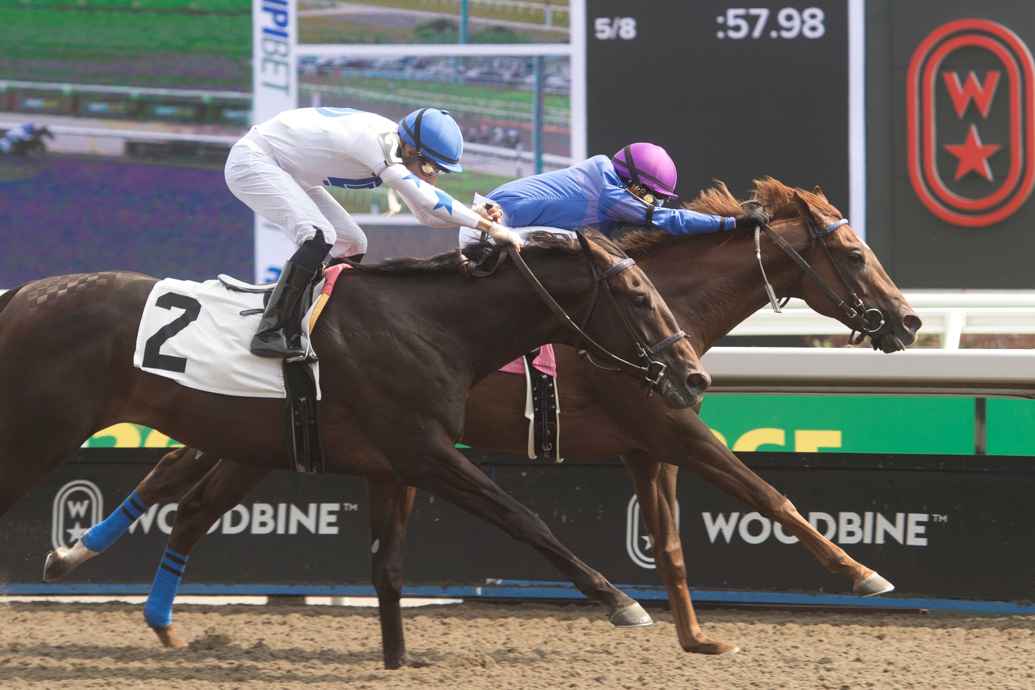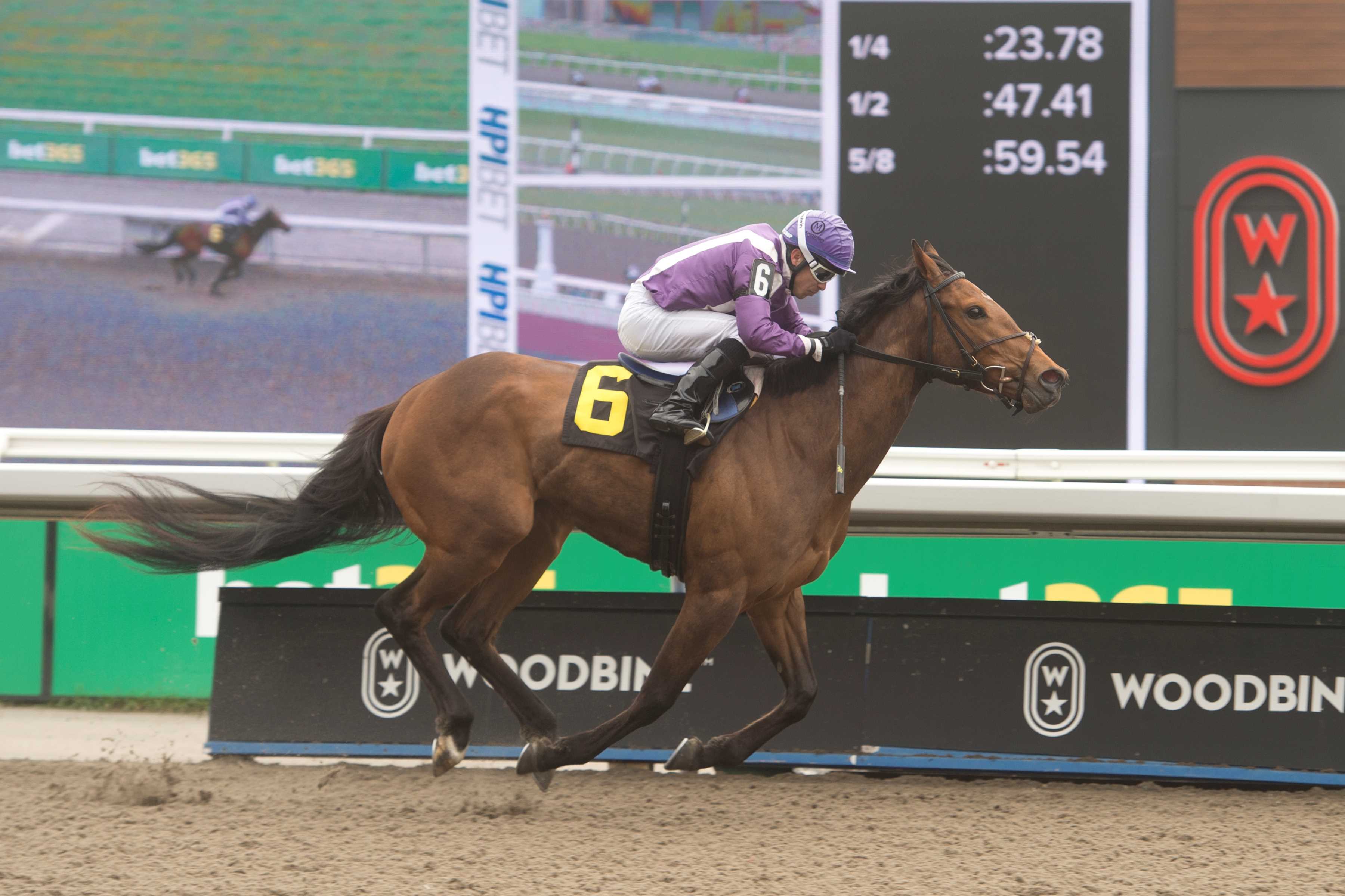 TORONTO, August 22, 2024 – Rookie and sophomore Canadian Premier Yearling Sale graduates step into the limelight on Sunday afternoon at Woodbine for a quartet of stakes races totaling $600,000 in purse money. The annual Canadian Sales Stakes precedes the Canadian Thoroughbred Horse Society’s yearling sale (sponsored by OLG), held on Wednesday, August 28 at 11:00 a.m. (ET) in the Woodbine Sales Pavilion. “These are great stakes to be eligible for,” said trainer Gail Cox, who will send out Kokomo in the $200,000 Simcoe Stakes. “It is a very nice purse for a restricted stakes race and these races help promote the sale. We have to showcase our Ontario-bred horses, and this is an excellent way to do that.” The $150,000 Vice Regent Stakes, for Ontario-breds, 3-year-olds and up, is also part of Sunday’s 11-race card. Seven starters will travel five furlongs on the inner turf. $200,000 SIMCOE STAKES – for 2-year-old colts & geldings, foaled in Canada. 6 ½ furlongs on the all-weather course. Race 9. Kokomo at Woodbine (Michael Burns Photo) A win by Kokomo would be twice as nice for trainer and owner Gail Cox. Bred in Ontario by Phoenix Rising Farms, Kokomo has been a model of consistency in his four starts to date, sporting a mark of 1-3-0. “He’s doing very well,” said Cox. “He’s a very uncomplicated colt. He was in Florida with me over the winter and he trained with the fillies and couldn’t have cared less about that. He is a very easy-going type.” The son of Flameaway-Island Fever debuted in May and finished second in a 4 ½-furlong sprint over the Woodbine all-weather track. That effort was followed by a pair of runner-up performances, one at five furlongs on the all-weather in June and the other over six panels on the E.P. Taylor turf in July. “He does show quite a bit of speed,” noted Cox. “But he is very gritty. I thought each one of those seconds were impressive.” On August 4, Kokomo went one better to earn his first win, the neck victory coming at six furlongs over the Toronto oval’s all-weather track. Cox was impressed by the gumption the rookie showed to break his maiden. “The other horse had already gone by him and then he came back on. I thought it was just a great, determined effort on his part. He seems like he keeps running on. He doesn’t go to the front and then stop. He keeps digging in.” Kokomo was a $65,000 (CDN) purchase at the 2023 CTHS Ontario Premier Yearling Sale. “I like Flameaway. He is a very interesting early sire. I also have this horse’s full sister, Firecracker Fiona (also bred by Phoenix Rising Farms), in our barn. Kokomo, he stood out to me at the sale. He is quite good looking. I liked the conformation, the walk, and the sire.” Diego Garcia is the groom. Field for the Simcoe Post – Horse – Jockey – Trainer 1 – Kekoa – Rafael Hernandez – Catherine Day Phillips 2 – Charted Map – Jose Campos – Steven Chircop 3 – Kokomo – Sofia Vives – Gail Cox 4 – Scorching – Patrick Husbands – John Charalambous 5 – Awesome Rainbow – Sahin Civaci – Norm McKnight 6 – Lover Boy Mo – De-Sean Gaskin – Cleveland Gordon 7 – Tiernan – Fraser Aebly – Krista Cole 8 – Flirting With Fire – Ryan Munger – Gold Colbourne 9 – Carnew – Emma-Jayne Wilson – Stuart Simon 10 – Shadow Realm – Eswan Flores – Sid Attard 11 – Chasing Memories – David Moran – Amanda Cameron 12 – Magic Power – Justin Stein – John Mattine $200,000 MUSKOKA STAKES – for 2-year-old fillies, foaled in Canada. 6 ½ furlongs on the all-weather track. Race 8. I Love to Win, a daughter of Signature Red-Scatter the Silver, will look to build off a sharp debut when she takes on nine rivals in the $200,000 Muskoka Stakes. I Love to Win at Woodbine (Michael Burns Photo) Trained by Bill Tharrenos for owner Michael Coll, the dark bay provided her connections with an impressive score in her first start on July 27. Sent off as the 2-1 mutuel choice in the 5 ½-furlong test over the Woodbine all-weather track, I Love to Win lived up to her name after a professional three-quarter length win in 1:05.95. Tharrenos, who won the 2010 Muskoka with Lucky Be Me and the 2015 running with Shake Down Baby, was thrilled, but not surprised, by the result. “We were excited about her ahead of that first start,” said Tharrenos. “The way she closed and ran down the leader was very nice. “She has matured even more since then. She worked lights-out with Sahin Civaci on Saturday (1:01.40, breezing, over five furlongs on the all-weather track). We are very excited about this race. There are some quality 2-year-old fillies in this race, but we will all find out what we really have.” Bred in Ontario by Howard Walton, I Love to Win was a $20,000 (CDN) purchase at the 2023 CTHS Ontario Premier Yearling Sale. Tharrenos is hopeful his rising star can deliver him a third Muskoka win. “She is blooming right now. She is just one of those fillies that has it in her. We’re running against very nice horses, but she knows her business. We’re happy and very excited.” Sheri Wickett is the groom. Dancin Mary Marie, trained by Michelle Love, will step into the stakes spotlight after a fourth in her debut on July 6. Love, who co-owns the daughter of Souper Speedy-Dance in the Snow with Big Willow Stables and Inferno Racing Stables, LLC, is looking for the dark bay filly to build off that five-furlong maiden voyage over the all-weather track. “She is a very nice horse. If you watch the replay, she was so far back in that first start, and then she came flying down the lane. I took her home for 10 days, let her enjoy the grass and be a horse, and then brought her back. “We gave her a pair of five-eighths breezes over the main track [1:04.40 on August 3 and 1:01.80 on August 18). She’s doing well and hopefully she can come up with a big one on Sunday.” Shelley Panacci is the groom. “Shelley and her brother [fellow groom] Chris