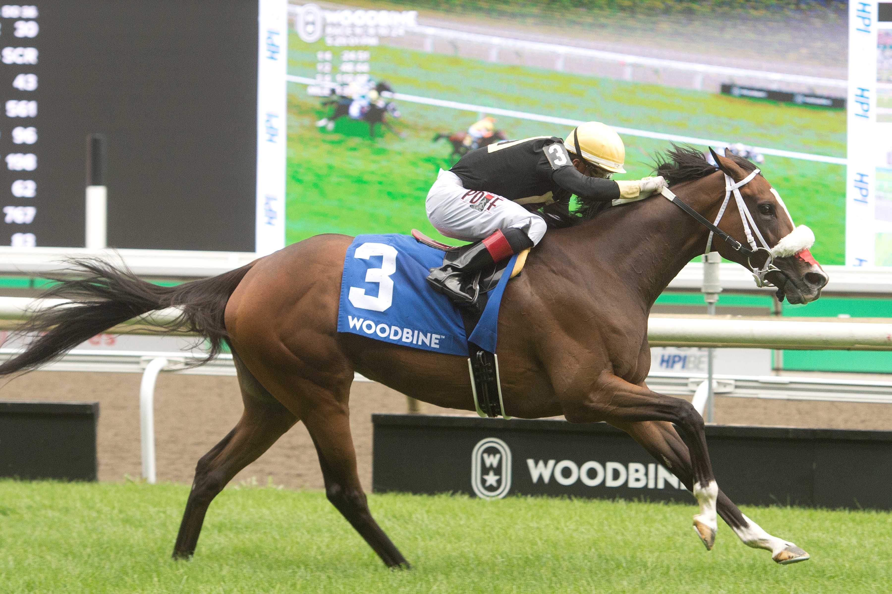 TORONTO, August 10, 2024 – Full Count Felicia, under an enterprising ride by Rafael Hernandez, took all the spoils in the $200,000 Canadian Stakes (G2T) Presented by the Japan Racing Association, on Saturday afternoon at Woodbine. The Canadian, a 1 1/8-mile race over the E.P. Taylor turf for 3-year-olds and up, went postward with eight fillies and mares after the scratches of Moira, Mission of Joy, and Libban. Full Count Felicia, who came into the race off a fourth in the Nassau Stakes (G2T) at Woodbine on June 29, was sent to the front by Hernandez soon after the gates opened, while Elysian Field tracked in second, followed by Fashionably Fab, who settled into third through a tepid opening panel reached in :24.51. It was status quo for the lead duo through a half in :48.44, with Full Count Felicia clear by two lengths over Elysian Field, with Forever After All sitting third along the rail, shadowed by Star Fortress (IRE) to her outside. Hernandez let it out a notch heading into the turn for home and Full Count Felicia responded, as the pair widened their lead. Elysian Field, Star Fortress, and Forever After All looked to reel in the freewheeling leader, but to no avail. Ahead by five lengths at the stretch call, the 5-year-old daughter of War Front-Clair de Lune (IRE), trained by Kevin Attard for owner Gold Square LLC, crossed the wire 2 ¾ lengths on top. Millie Girl rallied to net second, three-quarters of a length ahead of Five Towns (GB). Fashionably Fab, also trained by Attard, was fourth. The final time over good going was 1:48.69. Full Count Felicia and jockey Rafael Hernandez winning the Canadian Stakes (G2) on August 10, 2024 at Woodbine (Michael Burns Photo) “We’ve been having rain these last couple days, and then she loved the surface,” said Hernandez. “It was good, not that firm. And you can see down the stretch, when I was asking from the quarter pole, asking a little bit, she just picked it up right away. “We got a couple horses come from behind. They’re going to kick good, so I tried to get the jump before them.” Over a 17-race career, Full Count Felicia, now 6-2-1, has raced at 10 different racetracks, a list that includes stops at Belmont, Aqueduct, Santa Anita, Gulfstream, Colonial Downs, and Tampa. Prior to the Canadian triumph, the bay’s highest profile victory came in the Suwannee River (G3T) last December at Gulfstream. Full Count Felicia and jockey Rafael Hernandez winning the Canadian Stakes (G2) on August 10, 2024 at Woodbine (Michael Burns Photo) Bred in Kentucky by Joseph Allen, LLC, Full Count Felicia was a $200,000 purchase at the 2021 Fasig-Tipton Midlantic Two-Year-Olds in Training Sale. “She’s a nice filly,” said Josh Attard, son of Kevin Attard. “She’s been training exceptionally well, going into this race. You know, she ran a good race last time, from off the layoff, and we were expecting a big performance today.” Full Count Felicia, sent off as the slight choice, paid $7.80 for the win. Chris Lomon, Woodbine Share This:Share