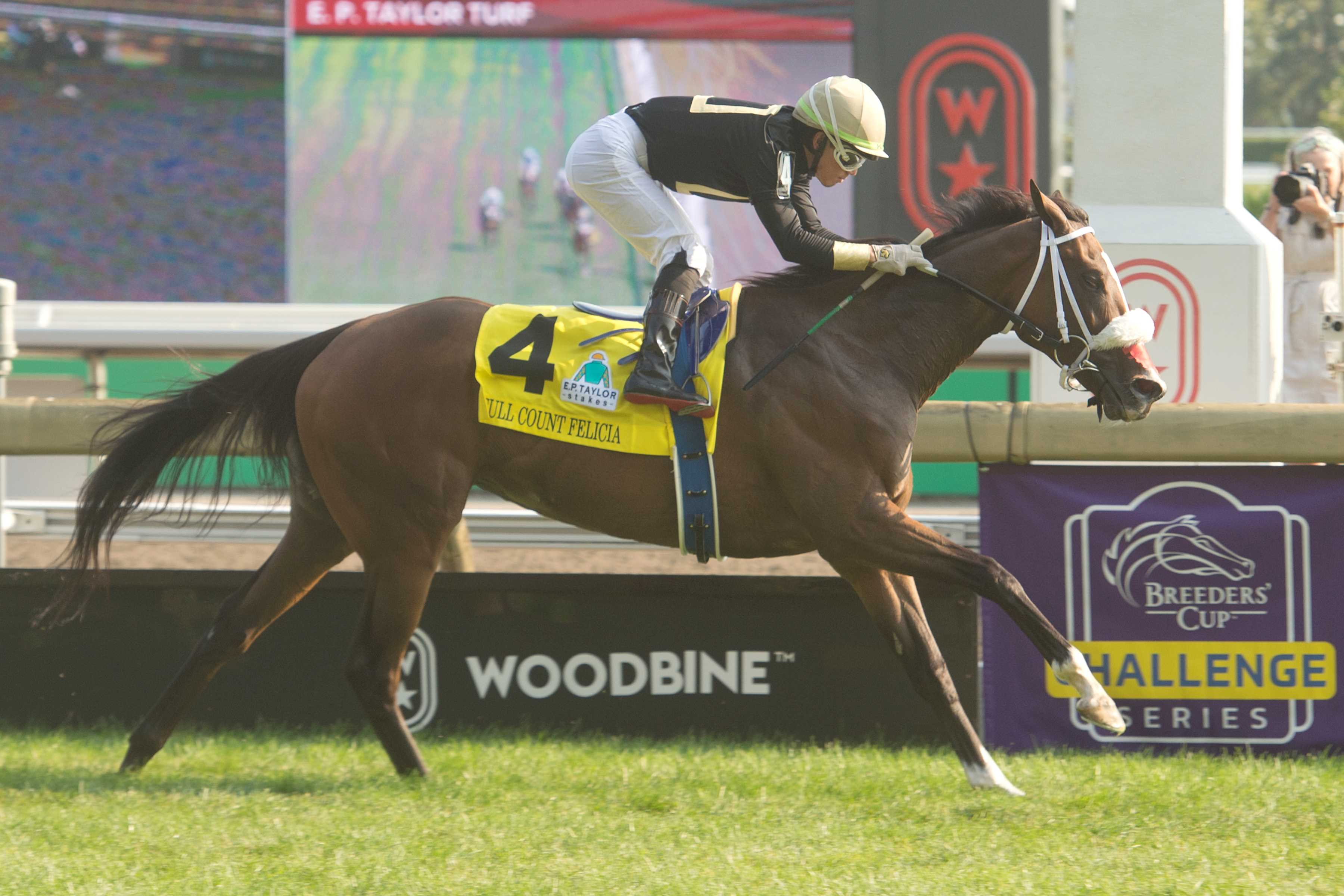 TORONTO, September 14, 2024— Full Count Felicia, coming off a front-running victory here in the 1 1/8-mile Canadian Stakes (G2T), knocked another one out of the park to become a Grade 1 winner in Saturday’s E.P. Taylor Stakes.