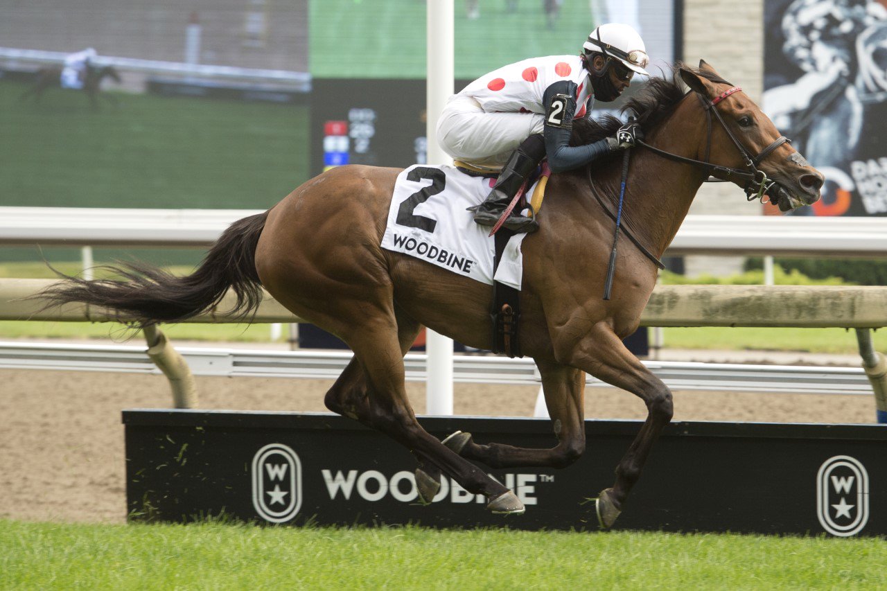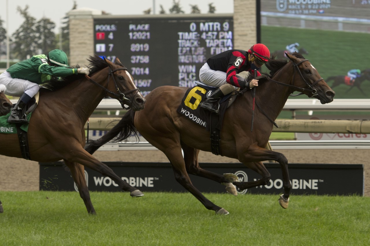 TORONTO, August 22, 2021 – The 162nd running of The Queen’s Plate was the crown jewel for a tremendous 13-race card on Sunday afternoon at Woodbine Racetrack. The stellar undercard included the Grade 1 Highlander, Grade 2 Dance Smartly and Grade 3 Ontario Colleen. Our Flash Drive plugged-in for Grade 3 Ontario Colleen score TORONTO, August 22, 2021 – Our Flash Drive, under Patrick Husbands, was full of run down the lane en route to an impressive win in the Grade 3 $150,000 Ontario Colleen Stakes for 3-year-old fillies, Sunday at Woodbine. One of two Mark Casse trainees in the seven-horse field, Our Flash Drive broke well and was positioned second, as Sweet Souper Sweet, also owned by Live Oak Plantation, grabbed the lead in the one-mile turf tilt, and took her rivals through an opening quarter-mile in :24.42. Sweet Souper Sweet continued to lead the proceedings after a half in :48.35, as Husbands bided his time with Our Flash Drive. Speightstown Shirl and Perseverancia followed in third and fourth, respectively, while 8-5 choice Misspell was called upon by Irad Ortiz Jr. as the field rounded the turn for home. Husbands had Our Flash Drive rolling for the long drive home, and the daughter of Ghostzapper responded in kind, separating herself from her rivals with ease, going in to a 1 ½-length triumph in a time of 1:34.76 over firm going under humid conditions. Seasons rallied to finish second, 1 ¼-lengths ahead of Speightstown Shirl. Perseverancia was fourth. Our Flash Drive and Patrick Husbands winning the Grade 3 Ontario Colleen. (Michael Burns photo) “I breezed her on Sunday (August 15)… when I got back to the barn, my head was bigger than Woodbine,” said Husbands. “I said ‘Mark, this is a Breeders’ Cup horse.’ She just loved it [the turf]. “She’s a relaxed horse,” continued Husbands. “We had a couple of horses we worked – I was behind them about 10, 15 lengths and she was just wanting the green light. I said, ‘No baby, no baby, no baby’ and that was on Sunday. She’s the type of filly that, what you want to do, she’ll let you do. But she’s pretty savvy racing and you can decide what to do with her.” It was fifth start and third win for the Live Oak homebred, who came into the Ontario Colleen off a an impressive victory in the Grade 3 Selene Stakes on July 10 at Woodbine. Sent postward as the 3-1 second choice, Our Flash Drive returned $6.90 to win. “She’s the type of filly that has a very serious streak in there,” said Husbands. “She doesn’t like horses running with her; she doesn’t like horses at all. I was getting out of the paddock early, and then getting to the gates she just started. And we just hope that she gets right past.” Salty as Can Be, also trained by Casse, was scratched. Mutamakina makes the grade in Grade 2 Dance Smartly TORONTO, August 22, 2021 – Mutamakina, benefitting from a strong tactical ride by Dylan Davis, took charge straightening for home and held sway for a half-length victory in Sunday’s $180,950 Grade 2 Dance Smartly Stakes over 1 ¼-miles on the E.P. Taylor Turf Course. Invading from Saratoga for trainer Christophe Clement, Mutamakina held off fellow Spa shipper Etoile, who had won last fall’s Grade 1 E.P. Taylor Stakes over the same course and distance. Alnaseem, sent to the front early after beginning from post six in the field of seven fillies and mares, led through fractions of :25.98, :50.32 and 1:14.07, with Mutamakina just one length back. “I saw the four-horse had some good speed,” said Davis, who was riding his first stakes winner at Woodbine. ”I broke well [and] was able to get a good stalking position right there. “She did switch her leads down the backside a few times. She just needed a little bit of guidance. I had to get into her early. I was a little worried about that. Once she straightened up, she saw where she needed to go and she ran very strongly to the wire.” Mutamakina reached the mile in 1:37.13 and led by two lengths with a furlong to run before finishing in 2:01.26 over a course rated firm. Mutamakina and Dylan Davis winning the Grade 2 Dance Smartly. (Michael Burns photo) Etoile, the 6-5 favourite for trainer Chad Brown and leading North American race-winning rider Irad Ortiz Jr., saved ground in fifth place early and launched a bid around the final turn but could not reach the winner. Merveilleux, based locally with conditioner Kevin Attard, finished well to be third, just a neck behind Etoile. Court Return, beaten just a neck as the runner-up in last year’s E.P. Taylor, Stakes, trailed the field early and finished well to be fourth, another half-length back. Rounding out the order of finish were Blame Debbie, the 4-1 third choice, Alnaseem and Afleet Katherine. Mutamakina returned $8.80, with the $2 exacta with Etoile coming back at $16.50. Merveilleux, the 7-1 fourth choice, rounded out a $110.90 trifecta ($1) and Court Return, the longest shot on the board at 22-1, completed a $1 superfecta worth $273.30. A 5-year-old bred in England by Wigham Stud, Mutamakina is by Nathaniel out of the Danehill mare Joshua’s Princess. Beginning her career in France, Mutamakina won twice and placed twice in Group 2 company before joining Clement in the fall of 2020. The Dance Smartly was her second Grade 3 win on this side of the pond, following the Long Island at Aqueduct last fall in her only previous partnership with Davis. “I’m just happy to be back aboard her,” said Davis. “It’s just nice. She’s progressing well. She’s definitely a hard trier – you just got to know how to ride her. She always gives a good effort and Clemente had her ready today.” The Dance Smartly was the first leg of this year’s Ladies of the Lawn, in support of ReThink Breast Cancer. The series continues with the Canadian Stakes on September 18 and concludes with the E.P. Taylor Stakes October 17. Each race will be contested over the E.P. Taylor Turf Course. The owner of the