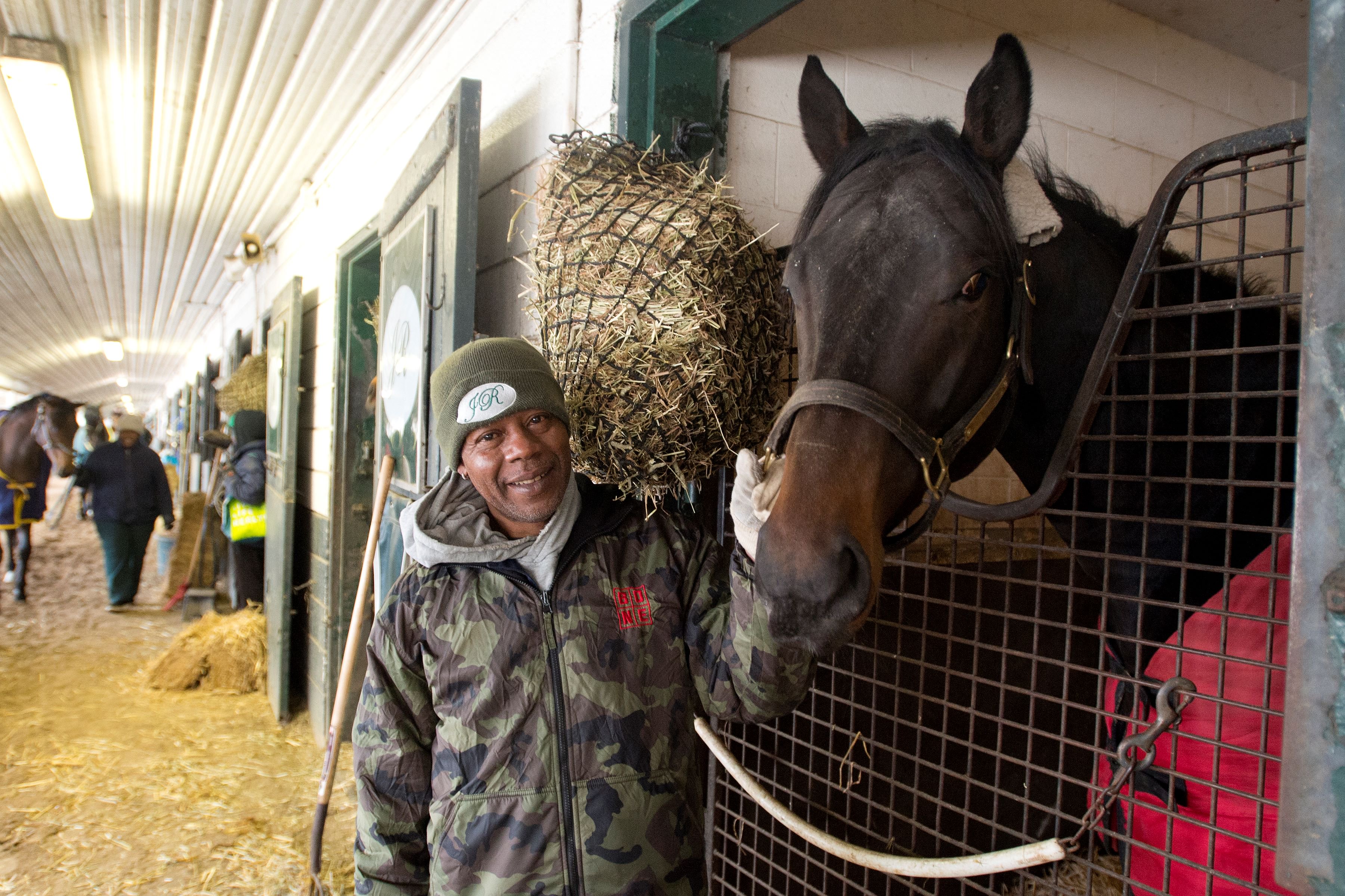 TORONTO, April 14, 2025 – Once a week, from January to April, Woodbine will profile a horse who had a life-changing impact on one of their closest connections in 2024. This week, groom Steve Oneil McIarty, who was born in Jamaica and came to Canada in 1988, and multiple stakes winner Junior Hot Shot. “I love this guy,” said Oneil McIarty, who has worked for trainer John Ross for close to 20 years. “He came back this year looking like a bear. Whenever he races, I am the loudest person at the track. They probably hear me on the backstretch. Sometimes, I scream so loud that I lose my voice. But that’s okay because I want him to know I am his biggest fan.” Junior Hot Shot and groom Steve Oneil Mclarty Junior Hot Shot (ON) Bio Foaled: March 31, 2021 Sire: Souper Speedy Dam: Executive Dreamer Purchased: Sold for $55,000 (CDN) at the 2022 CTHS Canadian Premier Yearling Sale Starts: 10 Wins-Seconds-Thirds: 4-3-1 Earnings: $195,684 (U.S.) Notable races: Won last year’s Elgin Stakes and Lake Erie Stakes. Second in the Lake Huron Stakes and Lake Ontario Stakes. Won debut on Oct. 1, 2023. Third in the 2023 Frost King Stakes. Trainer: John Ross Owner: T and T Racing Team Groom: Steve Oneil McIarty Breeder: Dr. B. Van Arem What do you recall from the first time you met Junior Hot Shot? “The funniest thing is that the first time I met “Junior” was at the sale because I wanted to buy him for myself! But I could not afford him. Maybe two weeks to a month later, Dr. Van Arem called and said John (trainer, Ross) and said, ‘Do you want to train a horse for me?’ I went to pick up the horse and when I did, I said, ‘Boss, this is the horse I was trying to buy.’” “He has this one spot on one of his back legs and he is black – you really notice him. That caught my eye. He looked like a nice horse. He had nice conformation and had the look of a racehorse.” “He’s aggressive, but only in the stall. Once you tack him up, he’s like a pony. He likes to graze, he likes his carrots and he likes his mints.” Junior Hot Shot and jockey Justin Stein winning the Elgin Stakes on August 25, 2024 at Woodbine (Michael Burns Photo) What was the most impressive takeaway from his debut win? “It was a good race. I was very excited. He ran a very fast race and I thought, ‘This guy can run.’” What was it like to watch him win the Elgin Stakes? “I really liked him to do well that day. He ran at Fort Erie and won the Lake Erie Stakes – he went wire to wire and showed that he can run on the dirt.” “One of the things I remember most about the Elgin Stakes was that he bit me in the winner’s circle. Everybody was laughing and telling me it was a love bite. But it is okay. I love my horse, and we get along well.” What are the three best words to Junior Hot Shot? “Excellent. Heart. Strong.” How has he changed your life? “He is a lovely horse, and he knows how to run. He never gives you any trouble. I did put a cone outside his stall this year because he is even more aggressive than last year. But he knows me and we are always happy to see each other. When I went to the farm over the winter, I called out, ‘Junior!’ and he came running to me. It is very special to have that connection. I love all my horses and the bond that you have with them is the best thing in the world. I love being a groom.” Chris Lomon, Woodbine Share This:Share
