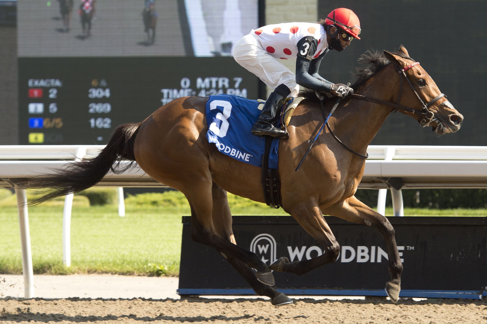 TORONTO, August 20, 2021 – A trio of graded stakes, the Highlander (G1), Dance Smartly (G2), Ontario Colleen (G3), complement the 162nd running of the $1 million Queen’s Plate, Sunday at Woodbine. Seven fillies and mares, 3-year-olds and up, will vie for top spot in the $175,000 Dance Smartly Stakes, a 1 ¼-mile test over the E.P. Taylor Turf Course. Graham Motion will send out Blame Debbie, a four-year-old daughter of Blame, as the multiple graded stakes winning trainer looks to notch his first Dance Smartly crown. Owned by Eclipse Thoroughbred Partners, Michael Cloonan and Timothy Thornton, the well-traveled bay has assembled a 4-1-3 mark from 13 career starts. Having raced at Delaware, Keeneland, Aqueduct, Tampa, Belmont, Saratoga, Kentucky Downs, Del Mar and Pimlico, Blame Debbie’s racetrack passport will now include Woodbine. Bred by Tim Thornton and Tony Holmes, Blame Debbie won her debut at Delaware Park on August 29, 2019, finishing second in her next start at Keeneland, prior to a third in the Grade 2 Demoiselle at Aqueduct to close out her rookie campaign. Last year, she went 2-0-2 from eight starts, the back-to-back victories coming at Keeneland, including her first stakes win, the Grade 3 Rood and Riddle Dowager on October 18. After a victory in the Searching Stakes this June at Pimlico to launch her 2021 campaign, Blame Debbie was fifth in her most recent start, Grade 3 Robert G. Dick Memorial Stakes. “She ran well first time back at Pimlico, then she was a little disappointing last time at Delaware,” offered Motion. “Maybe the first race took something out of her.” Motion thinks the Kentucky-bred will fare well running over the Toronto oval grass. “She’s training well, and I think she’ll like the turf course up there.” The race is named after the Sam-Son Farm superstar who went undefeated in 1991 while taking the Canadian Triple Crown, and becoming the first horse bred in Canada to win a Breeders’ Cup race (G1 Distaff, 1991). She is a member of both the Canadian and American Racing Halls of Fame. Sam-Son Farm has three wins – tops among all owners – in the race that was inaugurated in 1986 (Bessarabian won the first edition). The race is also the first event in Woodbine’s Ladies of the Lawn Series, in support of ReThink Breast Cancer. Next up is the $250,000 Canadian Stakes (G2) on Saturday, September 18, culminating with the $600,000 E.P. Taylor Stakes (G1) on Sunday, October 17. At the conclusion of the points-based series, the winning connections will receive a $50,000 bonus. The inaugural winner of the 2019 Ladies of the Lawn Series was Starship Jubilee, Canada’s reigning Horse of the Year. FIELD FOR THE GRADE 2 $175,000 DANCE SMARTLY POST – HORSE – JOCKEY – TRAINER 1 – Blame Debbie – Kazushi Kimura – Graham Motion 2 – Merveilleux – Rafael Hernandez – Kevin Attard 3 – Afleet Katherine – Justin Stein – Kevin Attard 4 – Al Naseem – David Moran – Edward Vaughan 5 – Etoile – Irad Ortiz Jr. – Chad Brown 6 – Mutamakina – Dylan Davis – Christophe Clement 7 – Court Return – Luis Contreras – Josie Carroll -0- Eight fillies duel for Grade 3 Ontario Colleen crown TORONTO, August 20, 2021 – Trainer Mark Casse, a four-time winner of the Ontario Colleen Stakes, will be launching a three-pronged attack on Sunday’s renewal with Our Flash Drive, I Get It and Salty As Can Be heading postward in the one-mile turf race for 3-year-old fillies. The Ontario Colleen, which offers Grade 3 status and a purse of $150,000, attracted eight entrants. Our Flash Drive, a Live Oak Plantation homebred, is the only graded stakes winner in the Ontario Colleen lineup, having annexed the Grade 3 Selene over 1 1/16 miles of Tapeta last time out. The runner-up there, Munnyfor Ro, came back to take the Woodbine Oaks Presented by Budweiser and is a leading contender for Sunday’s Queen’s Plate. “She’s done everything right this year,” said Casse, who had also watched Our Flash Drive win her maiden in authoritative fashion here at seven furlongs in her first appearance this year, but will be racing the Florida-bred on grass for the first time. “We’ve breezed her a couple of times on the turf; she gets over the turf really well. She’ll be extremely tough, I think.” Our Flash Drive winning the Selene Stakes in July. (Michael Burns photo) I Get It was purchased privately for owner Gary Barber prior to winning the listed Sanibel Island Stakes over one mile of firm turf at Gulfstream on March 27. In her only subsequent outing, the Maryland-bred was well-beaten In Belmont’s Grade 3 Wonder Again over 1 1/8 miles of “good” going. “I probably shouldn’t have ran her,” said Casse, recently inducted into the Hall of Fame at Saratoga to match his Canadian honours. “She wasn’t a happy horse at the time. We’ve just kind of given her a break; she’s doing much better now. I think she should run well.” Salty As Can Be, owned by Gary Barber and Baccari Racing Stable, is a half-sister to Salty, who was a Grade 1 stakes winner for the same connections. “She’s a beautiful filly,” said Casse, who has seen the Kentucky-bred sandwich two wins around a disappointing stakes try. “She had to have throat surgery after her poor performance at Churchill.” Salty As Can Be, who had debuted victoriously at Churchill Downs, returned to win a six-furlong Tapeta sprint at Woodbine. The Ontario Colleen will be her first try on grass. “She ran really well there,” said Casse. “She’s breezed well on the turf. She’s a bit of a guess… I think she’s good enough, but we’ll just see. This is not an easy race.” Chad Brown, who captured the 2019 edition of the Ontario Colleen with Seek and Destroy, will be looking to duplicate that feat with Misspell, who was supplemented at a cost of $3,000 including the $1,500 entry fee. Seasons, third in the Grade 1 Natalma over one mile of turf here last September, adds to 