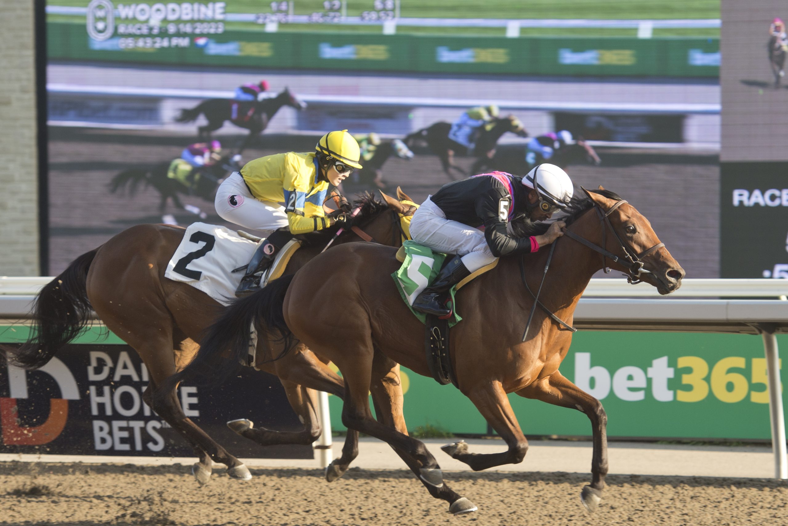 TORONTO, October 25, 2023 – Gradevole, a debut winner, wades into stakes action in Saturday’s $100,000 South Ocean at Woodbine. Trained by Patrick Dixon for owner and breeder Colebrook Farms, the daughter of Danish Dynaformer-Congeniality rallied smartly to win her debut, a 5 ½-furlong Tapeta race on September 14. After getting away last of five, Gradevole engaged her rivals three-wide at the three-furlongs pole and loomed a major threat turning for home. The bay was able to wear down the frontrunner to notch a one-length score in a time of 1:06.58. “The thought was that she would go out and get some experience,” said Dixon, who recorded his first career stakes win on October 22 when Perfect Crime took the $100,000 Overskate. “I really liked the other filly, Working Holiday, that we had in there. Turning for home, I thought, ‘Wow… Gradevole might actually win this race.’ And that is what she did.” Gradevole and jockey Rico Walcott winning Race 3 on September 14, 2023 at Woodbine (Michael Burns Photo) Gradevole has had a steady work tab in the leadup to the South Ocean, a 6 ½-furlong Tapeta event for Ontario-sired 2-year-old fillies, including a pair of four-furlong breezes, :52.00 on October 8 and :49.60 on October 14. What the filly lacks in size is offset by a strong-willed mindset, Dixon noted. “She was broken late at the farm because she was small. When I watched her in the stall, she caught my eye because she was really upset because everyone else was being broken except for her. She used to rear up on the bars and put her two front feet on them, and in a standing position, would watch us ride the other horses. She used to get very upset. When we broke her, it happened very quickly. It was as though she had watched the other horses being ridden. I brought her to Woodbine from the farm a little bit later, but as soon as she got here, she wanted to keep up with everyone else. She is small, but she is very mighty. I remember thinking, ‘This little thing has grit.’ We were all impressed.” Dixon was assistant trainer to Ashlee Brnjas (who passed away in 2021) when the latter trained Gradevole’s dam Congeniality. The daughter of Signature Red-Nicola’s Nickers went 7-6-4 from 35 career starts. “This filly Gradevole, she is gritty just like her mother. Congeniality would just grind out wins. If we were having a bad month, I would always feel better when Congeniality would run. She would always step up for us. She definitely passed along that grit and fight to her baby.” “I used to tell other people in our barn to watch how upset she would get when we would ride the other horses, that she felt like that,” continued Nixon. “And now, here she is.” Gradevole, an Italian term that translates to “pleasant,” will be ridden by Ryan Munger. Regular rider Rico Walcott is recovering from a broken collarbone suffered in a racing accident in late September. Oswald Jackson is the groom. Other contenders include Lady Wellington, a debut winner on September 23, Muskoka Stakes winner Hurricane Clair, and Victorian Queen Stakes runner-up Olivia Rose, cross-entered in the Frost King. South Ocean, who went on to become a top broodmare, was a dual stakes winner, capturing the 1969 Yearling Sales Stakes and winning the premier race for fillies in 1970, the Canadian Oaks, defeating future Horse of the Year and Hall of Famer Fanfreluche. Her two-year career race record consisted of 22 starts with 17 in the money finishes and purse earnings of $70,147. The South Ocean is scheduled as Race 10 on Saturday’s 11-race card. The Frost King goes as Race 8. First post time is set for 1:15 p.m. Fans can watch and wager on all the action through HPIbet.com, bet365 and the Dark Horse Bets app. $100,000 South Ocean (Race 10) Post – Horse – Jockey – Trainer 1 – Lady Wellington – Rafael Hernandez – Dale Desruisseaux 2 – Vandoo – Luis Contreras – Kevin Attard 3 – Red Eleanor – Patrick Husbands – Angus Buntain 4 – Fourfiftyfour – Emma-Jayne Wilson – Barbara Minshall 5 – Olivia Rose – Kazushi Kimura – Mark Casse 6 – Hurricane Clair – Sahin Civaci – Martin Drexler 7 – Gradevole – Ryan Munger – Patrick Dixon Chris Lomon, Woodbine Communications / @WoodbineComms Share This:Share