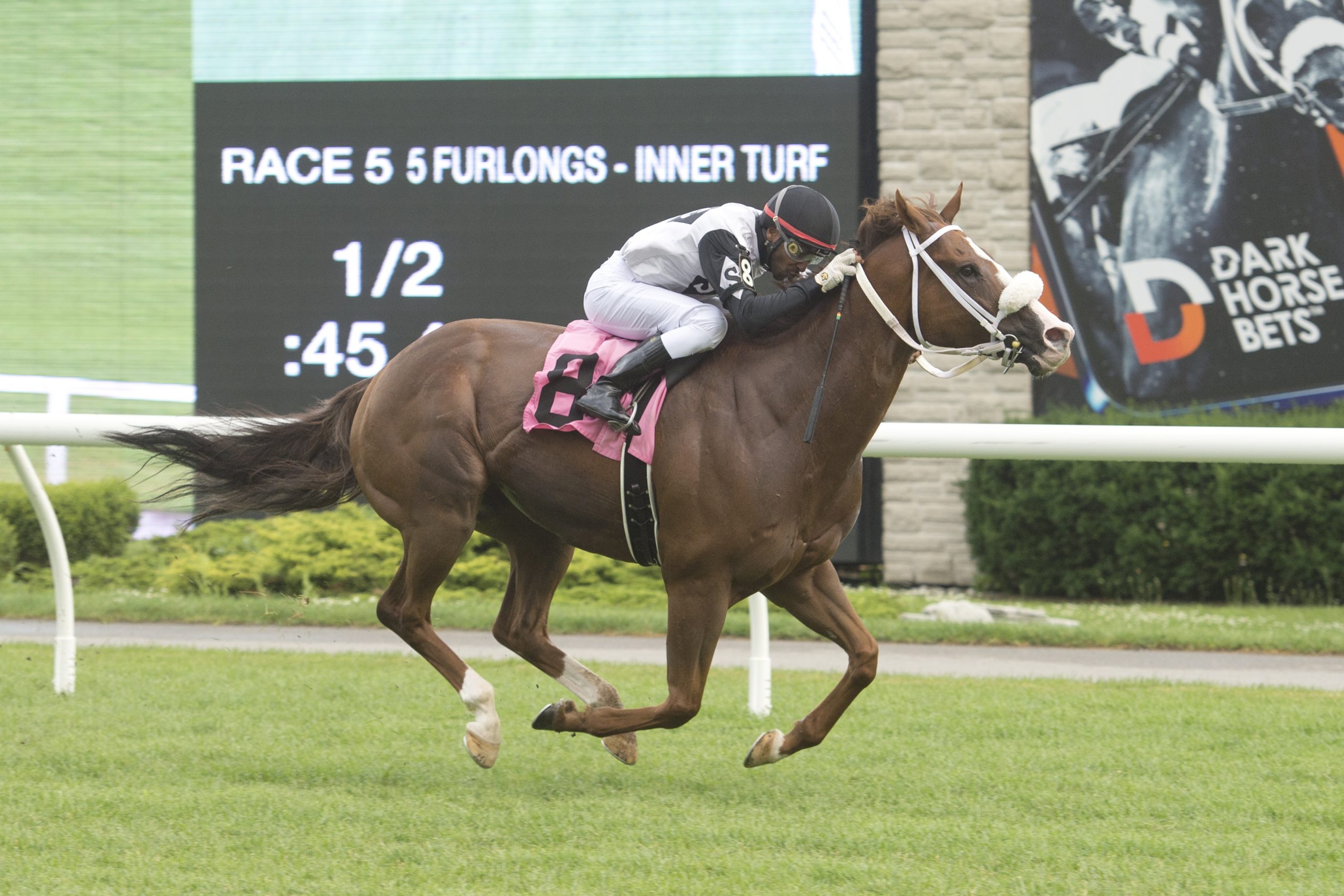 TORONTO, August 2, 2023 – Aim for the Sky aims for the top prize in Saturday’s $150,000 Vice Regent Stakes, a five-furlong inner turf race for Ontario-bred 3-year-olds and up, at Woodbine. Trained by Steven Chircop, who co-owns with Eric Ross, Aim for the Sky, a 6-year-old son of Sky Mesa-Pohdi Pohdi, will test the stakes ranks for the first time in a prosperous career that has produced a 3-12-5 mark from 28 starts, along with $290,993 (U.S.) in earnings. Chircop, well on track to eclipse his career-best 2022 campaign, claimed the gelding last October. “We didn’t claim him for a lot,” said the lifetime winner of 210 races. “We got him for $25,000. He was running good races. I had to run against him with my horse Uncle Joe one time, but the races didn’t go. I remember being scared of this guy. He didn’t like to win, but he was always there. He can go five-eighths, he can go seven-eighths, he can sit off it, or be on the lead. I started watching him and when I saw the opportunity to claim him, I said, ‘Here we go.’ “The first race we had him, Slade Jones was riding, and he lost his irons coming out of the gate. He was nine-wide, and Slade was bouncing around on his back for a bit, but they recovered, and he ended up finishing second, less than a length behind the winner. I’m guessing if that hadn’t happened, he would have won the race.” Aim for the Sky debuted with a pair of runner-up efforts in 2020 and went on to break his maiden in his fifth start in November of that year, taking a 6 ½-furlong main track maiden special weight race by 2 ¼ lengths. Consistency has been the hallmark for the gelding, who has finished in the top three in his past five races, a streak that includes a pair of wins. Aim for the Sky and jockey Rico Walcott winning Race 6 on May 14, 2023 at Woodbine (Michael Burns Photo) “He had the winter off and we brought him back to get him ready,” said Chircop. “He’s run against some very nice horses.” At the top of that list would be sprint star Patches O’Houlihan, a 3-year-old son of Reload, who has won four straight races, including consecutive stakes scores. On July 30, the Robert Tiller trainee won the Lake Superior Stakes, at six furlongs on the Tapeta, by 8 ½ lengths. “The first time I ran Aim for the Sky for a tag, he had to run against Patches O’Houlihan,” said Chircop, of the 5 ½-furlong Tapeta race on June 4. “That’s the best 3-year-old sprinter on the grounds and maybe the best sprinter on the grounds. We made the horse run that day. We finished second to him, beaten a length and a half, but Aim for the Sky didn’t give up. He kept fighting the whole way. We definitely weren’t embarrassed.” The chestnut heads into the five-furlong race over the Toronto oval’s inner turf course in winning form. On July 6, Aim for the Sky earned a head victory at the same distance and over the same ground, holding on gamely in the final strides. Aim for the Sky and jockey Rico Walcott winning Race 5 on July 6, 2023 at Woodbine (Michael Burns Photo) “I really liked him last time out,” said Chircop. “He was getting no respect from the handicappers and went off at 5-1. I kind of questioned myself a little bit. I thought, ‘Am I losing it here?’ But I’m glad he proved them wrong and proved me right.” Bred by 3 Sons Racing Ltd., Aim for the Sky has been a welcome addition to the Chircop barn. “He’s a very consistent horse. He didn’t like to win, but ever since he got the win in May this year, you can see the confidence he’s gained. Every race he’s had this year has been very good, so hopefully, he can run another good one on Saturday. He’s the kindest and coolest horse to be around. In his stall and at the barn, he’s a pet. But the second a rider jumps on his back, he’s a different animal. He’s all racehorse and he loves his job.” Other starters include multiple stakes winners Rockcrest and Silent Runner. The Vice Regent goes as race nine on the 11-race card. First post is at 1:05 p.m. Fans can watch and wager on all the action through HPIbet.com and the Dark Horse Bets app. $150,000 VICE REGENT STAKES Post – Horse – Jockey – Trainer 1 – Forester’s Fortune – Daisuke Fukumoto – Rodney Barrow 2 – Aim for the Sky – Rico Walcott – Steven Chircop 3 – Outlaw Kid – Kazushi Kimura – George Weaver 4 – Silent Reserve (S) – Eswan Flores – Mike Mattine 5 – Rockcrest – Keveh Nicholls – Nigel Burke 6 – Mason’s Gamble – Sahin Civaci – Josie Carroll 7 – Warp Ride – Luis Contreras – Andrew Smith 8 – Ol’ Blondie (S) – Emma-Jayne Wilson – Paul Buttigieg 9 – Silent Runner – David Moran – Michael Doyle Chris Lomon, Woodbine Communications / @WoodbineComms Share This:Share