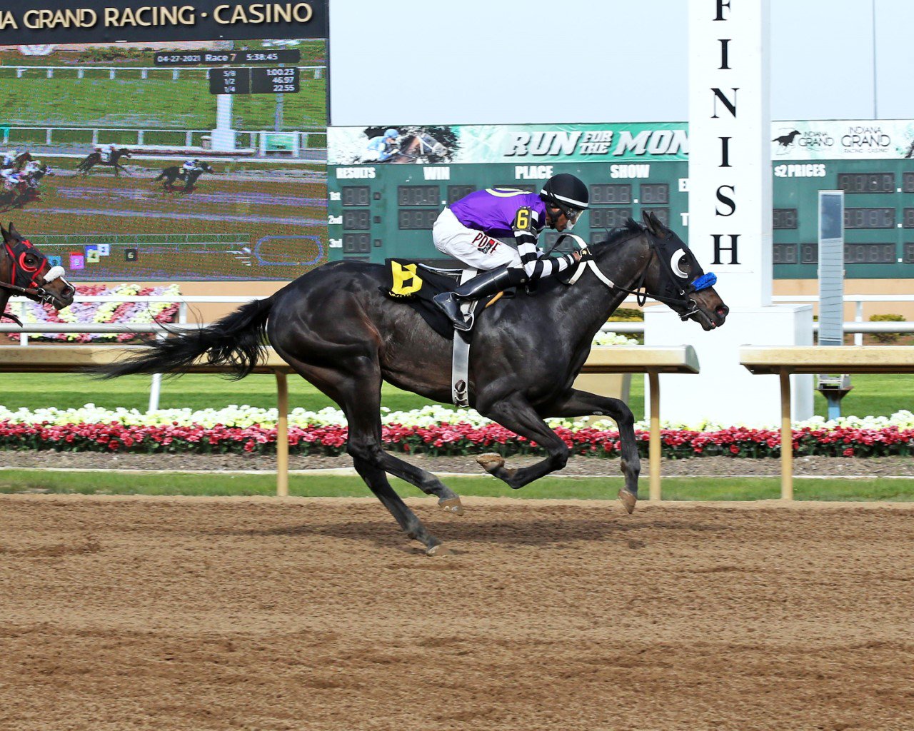 “She was the ITOBA 2-year-old Indiana Sired Filly of the Year in 2020,” noted McLaughlin. “Her 2-year-old campaign was amazing. She won the Indiana Stallion Fillies Stakes in the slop, which is key because we have had and are projected to have rain this week. She was second (at 1 mile and 70 yards) in the Miss Indiana Stakes last year as well. So, she is a very versatile filly. She has won at a sprint, route, fast, sloppy, and was a nice second in her 2021 debut. She likes to press the pace. Jockey Sammy Bermudez is the only one to ever ride her and he gets the call for the race. He’s been hot the last week as well.”