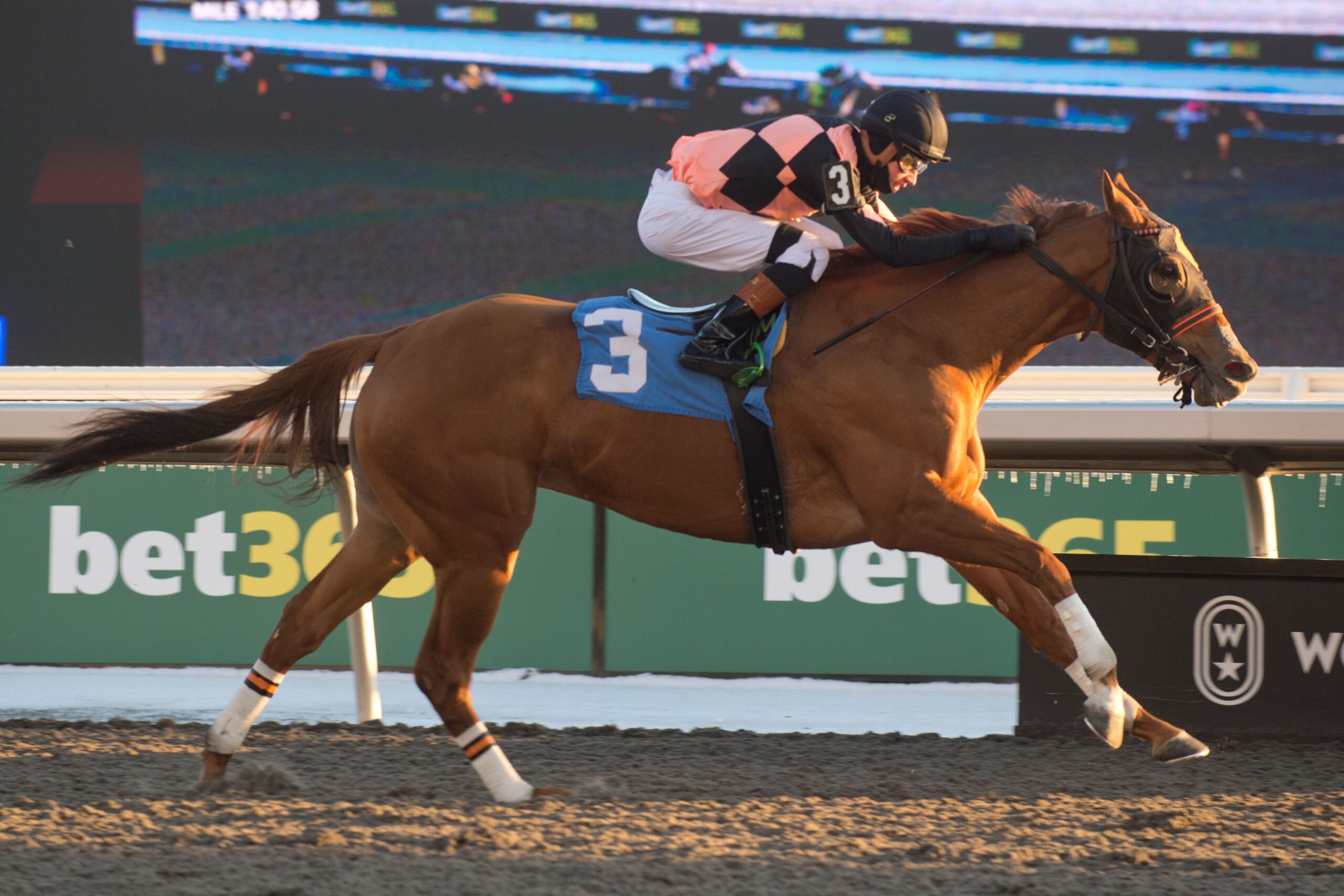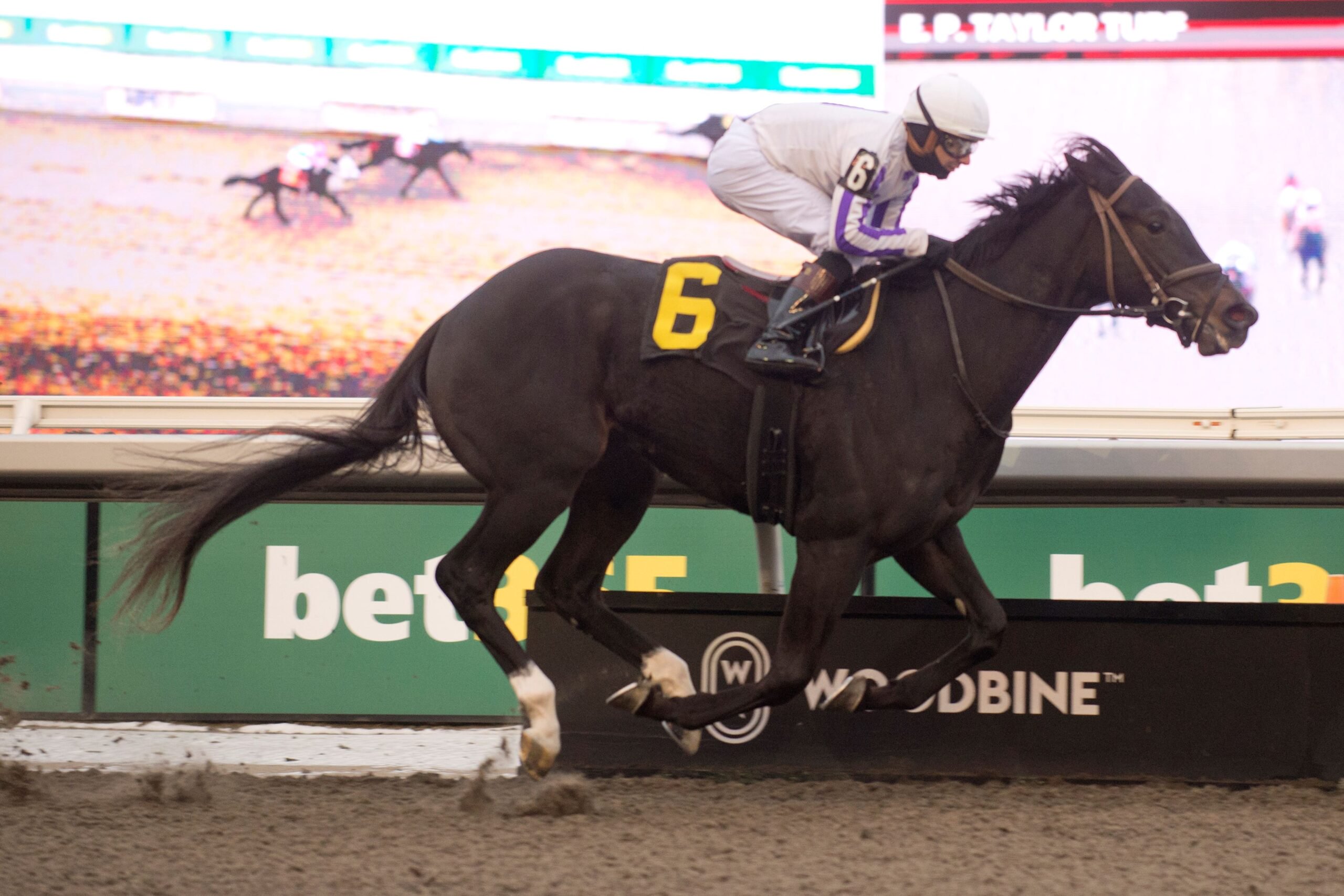 A look at some of the top highlights from the past weekend of racing at Woodbine. Razor sharp Hammerhead, making his fourth appearance in a graded stakes, tracked down his first title in the $150,000 bet365 Valedictory (G3), for 3-year-olds and up, Saturday at Woodbine. With rider Daisuke Fukumoto aboard, Hammerhead, after exercising great patience in the early goings, made his move for the lead just after the three-quarters mark. Still running confidently on top after a mile in 1:45.18, the Kevin Attard charge maintained his poise and effort level while straightening for home and had plenty left in the tank to hold on for the one-length decision. Fellow Attard trainee Jokestar finished second to complete the Attard 3-9 exacta. Hammerhead, a $225,000 purchase at the 2023 Keeneland Association September Yearling Sale, paid $9.70. Hammerhead and Daisuke Fukumoto. Michael Burns Photography V is for victory Rider Rafael Hernandez reclaimed the top spot on Woodbine’s wins ladder courtesy of a five-win performance on Saturday afternoon. The Sovereign Award-winning jockey got the ball rolling with a pair of victories in the card’s second and third, piloting Naughty Destiny and Galley Head, respectively. Hernandez collected wins number three and four also in back-to-back fashion, finding the winner’s circle in the sixth with Gone With Duwyn and the seventh with Tequilasoupernova. What he then followed up with a trio of runner-up outings in the eighth, ninth, and tenth, Hernandez tracked down his fifth tally of the day in the 11th aboard Ever Dangerous. Hernandez currently paces Woodbine’s rider colony with 138 wins on the season. Gone With Duwyn and Rafael Hernandez. Michael Burns Photography Gone with the win It was a Sunday to remember for Good as Gone, who was exactly that after grabbing the early lead in Woodbine’s seventh. Owned and trained by Nick Nosowenko, the chestnut daughter of Nyquist–Rapid Racer made her intentions clear from the get-go, taking command of the 1 1/16-mile claiming contest from the jump and increasing her buffer at every checkpoint for the 3 ½-length triumph. The impressive showing marked Good as Gone’s second visit to the winner’s circle this season and her second in her last three starts (7: 2-1-0). As the 6-5 choice Sunday, Good as Gone paid $4.60. Good as Gone and Pietro Moran. Michael Burns Photography Stay tuned Live racing continues on Thursday at 5:30 p.m. Share This:Share