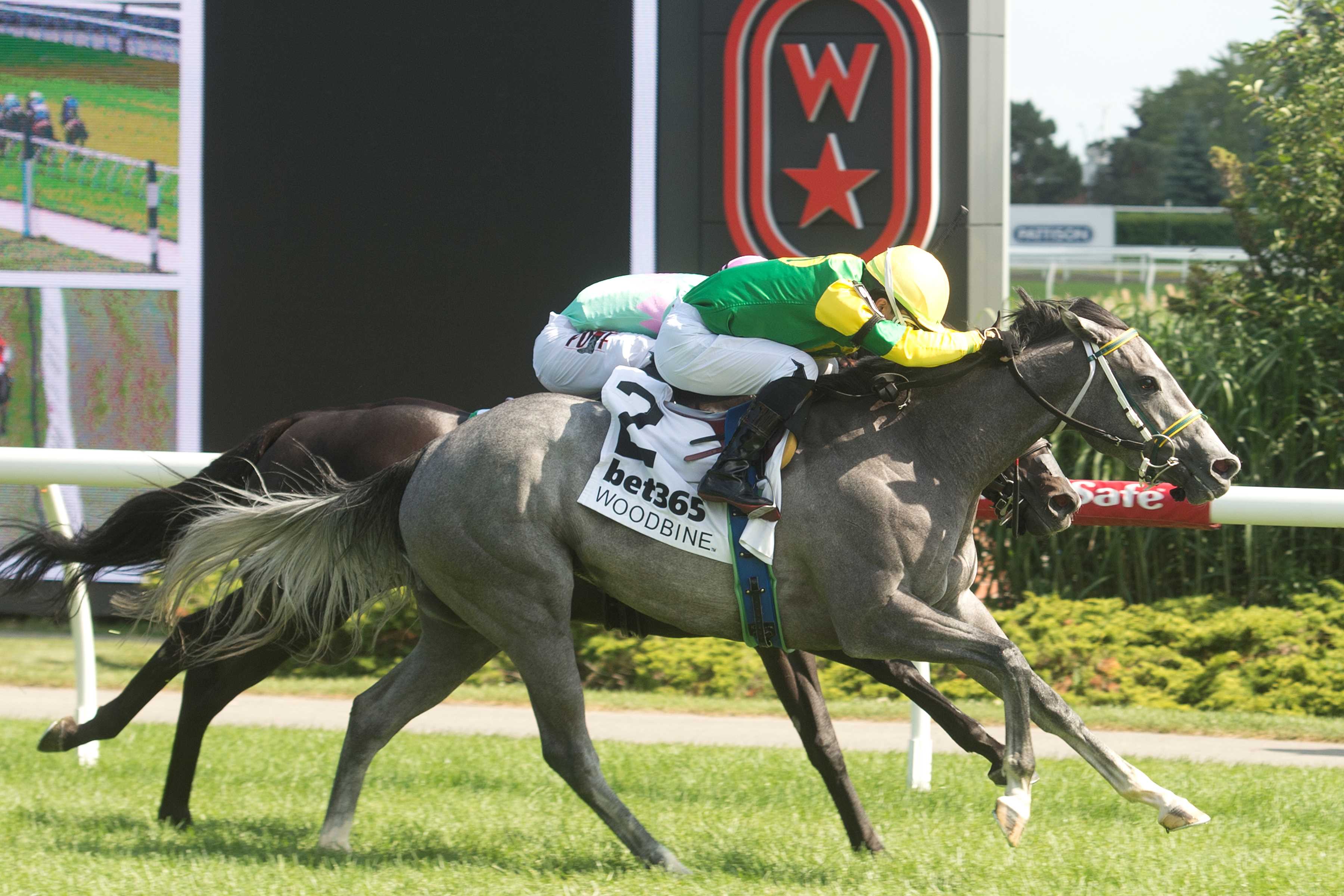 TORONTO, July 7, 2024— In the Georgian Bay, for 3-year-old fillies, Little Teddy dug deep to deliver trainer Santino Di Paola and owner York Tech Racing Stable, nom du course of Carmen and Raffaela Di Paola, with their first Woodbine stakes success. Earlier in the week, Santino Di Paola spoke about what it would mean to win the Georgian Bay. “It would be nice to get my parents, who are longtime supporters of Woodbine racing, into the stakes winner’s circle here,” he said. On Sunday, that wish became a reality. A roan daughter of Frac-Daddy-Explosive Leah, Little Teddy, who delivered her connections a third in last year’s Shady Well Stakes and a win to kick off her 2024 campaign, came up with the biggest victory in her career to date in the five-furlong inner turf sprint. Strike a Chord set the early tone, dashing to the front soon after the gates opened as 2-5 choice Olivia Rose tracked in second, while Kazushi Kimura had Little Teddy tucked in along the rail in fourth through an opening panel in :22.24. It was status quo on the front end as the field headed into the turn for home, with Olivia Rose and Little Teddy having dialed up the pressure on the leader. Mid-way down the lane, Olivia Rose and Little Teddy wore down a game Strike a Chord to set up a thrilling throwdown to the wire. At the line, Little Teddy, in what was her first test on turf, emerged a neck winner. Strike a Chord was third, followed by Just Follow Me and Tabloid Material. Sinclairity was scratched. Olivia Rose’s rider launched a claim of foul against the winner for possible interference in the stretch run, but it was disallowed. The final time was :56.20 over firm ground. Little Teddy and jockey Kazushi Kimura winning the Georgian Bay Stakes on July 7, 2024 at Woodbine (Michael Burns Photo) “I was very happy to win this stakes for Santino,” said Kimura, who won all three weekend Woodbine stakes (including Saturday’s Grade 3 Hendrie) “Last week, I worked this horse. She’s a small horse, but she’s really strong and was really aggressive in the work. I was feeling confident since the morning work.” “This has been the goal since I was born,” said Santino Di Paola. “My dad has been training or owning horses for 50-some odd years now. He’s won a stakes race at Fort Erie, won a stakes race at Greenwood, but now I got the triple for him. To have my mom and dad, my whole family here – it’s what I’ve dreamt of my entire life.” After a seventh to launch her career last September, Little Teddy won next time out, at 48-1, before concluding her 2-year-old campaign with the third in the Shady Well. She arrived at the Georgian Bay off a three-quarter length triumph at 6 ½ furlongs on the Woodbine main track on May 25. Bred by Susan Rasmussen and H. Lothian, Little Teddy was a $15,000 (CDN) purchase at the 2022 CTHS Canadian Premier Yearling Sale. She paid $9.40 for the Georgian Bay win. Chris Lomon, Woodbine Share This:Share