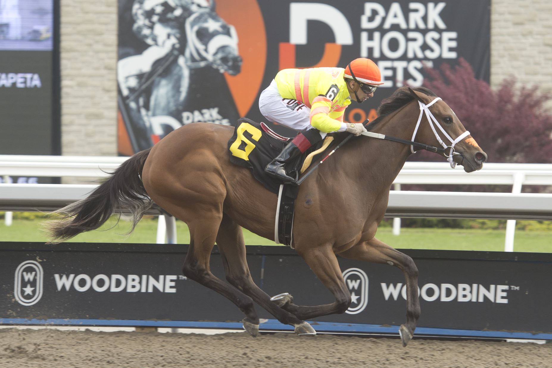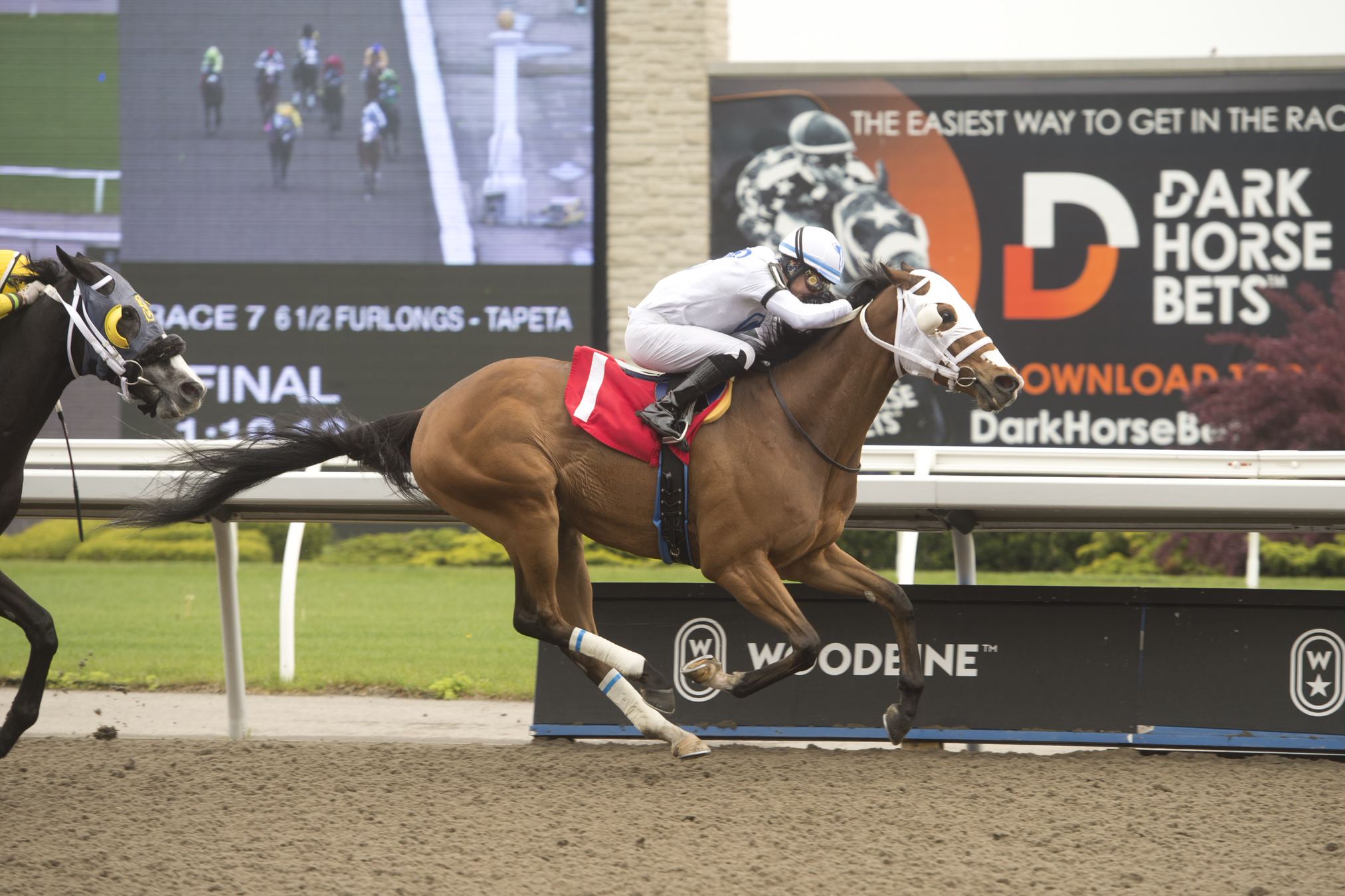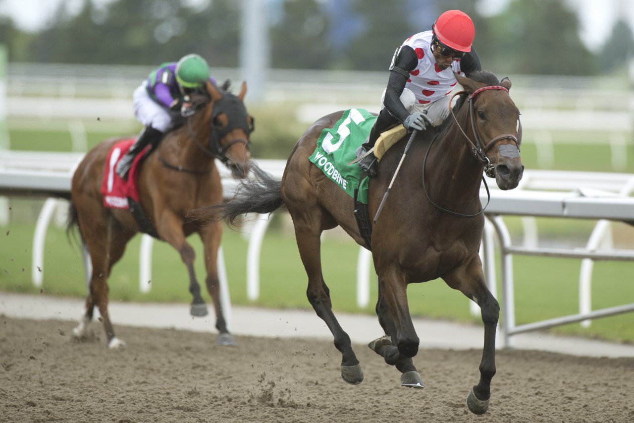 25th time is the charm Hard-knocking 5-year-old Grand Gizmo broke his maiden in Saturday’s first race. The son of Giant Gizmo came into the 1 1/16-mile race with an 0-5-4 mark from 24 starts. Breaking sharply from the gate, the bay gelding built up a big lead and then held on to win by a length. Grand Gizmo and jockey Omar Moreno winning race 1 on May 20, 2023 at Woodbine (Michael Burns Photos) Easy ‘Ryder’ Ryder Ryder Ryder, under Patrick Husbands, dashed away from her rivals in Saturday’s $100,000 Ruling Angel Stakes, converting a one-length lead at the stretch call into a seven-length stunner. Owned by Live Oak Plantation, the 3-year-old filly is now 2-1-0 from three starts. Ryder Ryder Ryder and jockey Patrick Husbands winning the Ruling Angel Stakes Presented by Ketel One on May 20, 2023 at Woodbine (Michael Burns Photo) Making a statement Pennick, a 2-year-old daughter of Hard Spun, made a dazzling debut for owners Al and Bill Ulwelling, and trainer Kevin Attard. Bumped at the break of the 4 ½-furlong Tapeta race, Pennick recovered and rolled to a 5 ½-length score under Rafael Hernandez. Pennick and jockey Rafael Hernandez winning race 5 on May 20, 2023 at Woodbine (Michael Burns Photo) Picture perfect…finally! Twin City, a 3-year-old son of Klimt-Minnie Apple Is, has endured several close defeats, leading to four runner-up finishes (with one win) in five starts last year. On Sunday, in the King Corrie Stakes, the strapping bay gelding finally came out on the winning end of a photo, taking the seven-furlong Tapeta race by a nose. Hall of Fame jockey Gary Boulanger rode the winner for trainer and co-owner Stuart Simon. Twin City and jockey Gary Boulanger winning the King Corrie Stakes on May 21, 2023 at Woodbine (Michael Burns Photo) Worth repeating “He’s always been a special colt and last year as a 2-year-old, he had a couple of unlucky races where he probably should have won with some racing luck. First thing I said to Stu [trainer and co-owner, Simon] was, ‘We finally got the photo our way.’” – Jockey Gary Boulanger, after riding Twin City to victory in Sunday’s King Corrie Stakes. Twin City and jockey Gary Boulanger winning the King Corrie Stakes on May 21, 2023 at Woodbine (Michael Burns Photo) Worth watching Pennick powered to a strong score in Saturday’s fifth race, a head-turning curtain-raiser for the young filly. Worth knowing Jockeys Declan Carroll and Sofia Vives visited fans at the Stella Artois Terrace on Saturday, opening day of one of the city’s most popular outdoor patio destinations. Jockeys Sofia Vives and Declan Carroll visiting racing fans on Woodbine’s Stella Artois Terrace on May 20, 2023 Chris Lomon, Woodbine Communications / @WoodbineComms Share This:Share