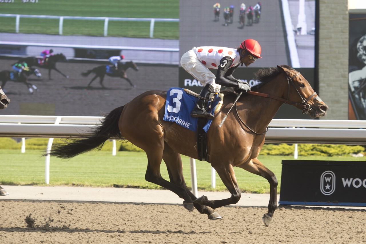 TORONTO, May 13, 2023– Our Flash Drive flashed a fleet turn of foot to win the Grade 3 $158,400 Whimsical Stakes, on Saturday afternoon at Woodbine. Ridden by Patrick Husbands, who celebrated his 100th career graded stakes victory and 350th stakes triumph overall, Our Flash Drive, the 3-5 choice in the six-furlong Tapeta race for fillies and mares, 4-year-olds and up, bested fellow Mark Casse trainee Miss Speedy by 1 ¾ lengths. There was an early tussle on the front end with Forest Drift, to the inside, and Hard Edge, just to her outside, going head-to-head through early splits of :22.57 and :45.03 for a half mile. Husbands kept a patient hand aboard Our Flash Drive, the duo sitting chilly in third as the field readied to navigate the turn for home. Our Flash Drive and jockey Patrick Husbands winning the Whimsical Stakes on May 13, 2023 at Woodbine (Michael Burns Photo) Our Flash Drive then glided past the frontrunners in early stretch and pulled away with ease down the lane as Miss Speedy and U.S. invader Baby No Worries rallied late for the runner-up prize, with the former gaining the upper hand by a half-length. The final time was 1:10.12. “She’s legit,” praised Husbands. “Anything you want her to do, she’ll do. She broke sharp and I was just behind the speed, and I didn’t want the speed to come back and get stopped behind it. So, by the three-eighths pole, I tipped her out into the clear and she got the job done.” It was the second straight graded stakes crown for the daughter of Ghostzapper-Dynamotor, who came into the Whimsical off a campaign-closing victory in the Grade 2 Bessarabian in November. The 5-year-old Florida-bred mare now has four graded triumphs to her name, including the 2021 Selene and Ontario Colleen, both Grade 3 events. Our Flash Drive and jockey Patrick Husbands winning the Whimsical Stakes on May 13, 2023 at Woodbine (Michael Burns Photo) Bred and owned by Live Oak, Our Flash Drive ($3.40 for the win) is now 6-3-1 from 15 starts. After a seventh and a fourth to start her career at Saratoga in the summer of 2020, the bay broke her maiden the following June at Woodbine, the start of a three-race win streak. Miss Speedy, Baby No Worries, Owen’s Tour Guide, Forest Drift, Hard Edge, Ambassador Luna, and Basalt Street completed the order of finish. “You come here, and people treat you with respect and you work hard and get it,” said Husbands, of his riding milestones. “It pays off in the long run.” Live racing resumes Sunday with a first post of 1:10 p.m. Chris Lomon, Woodbine Communications / @WoodbineComms Share This:Share