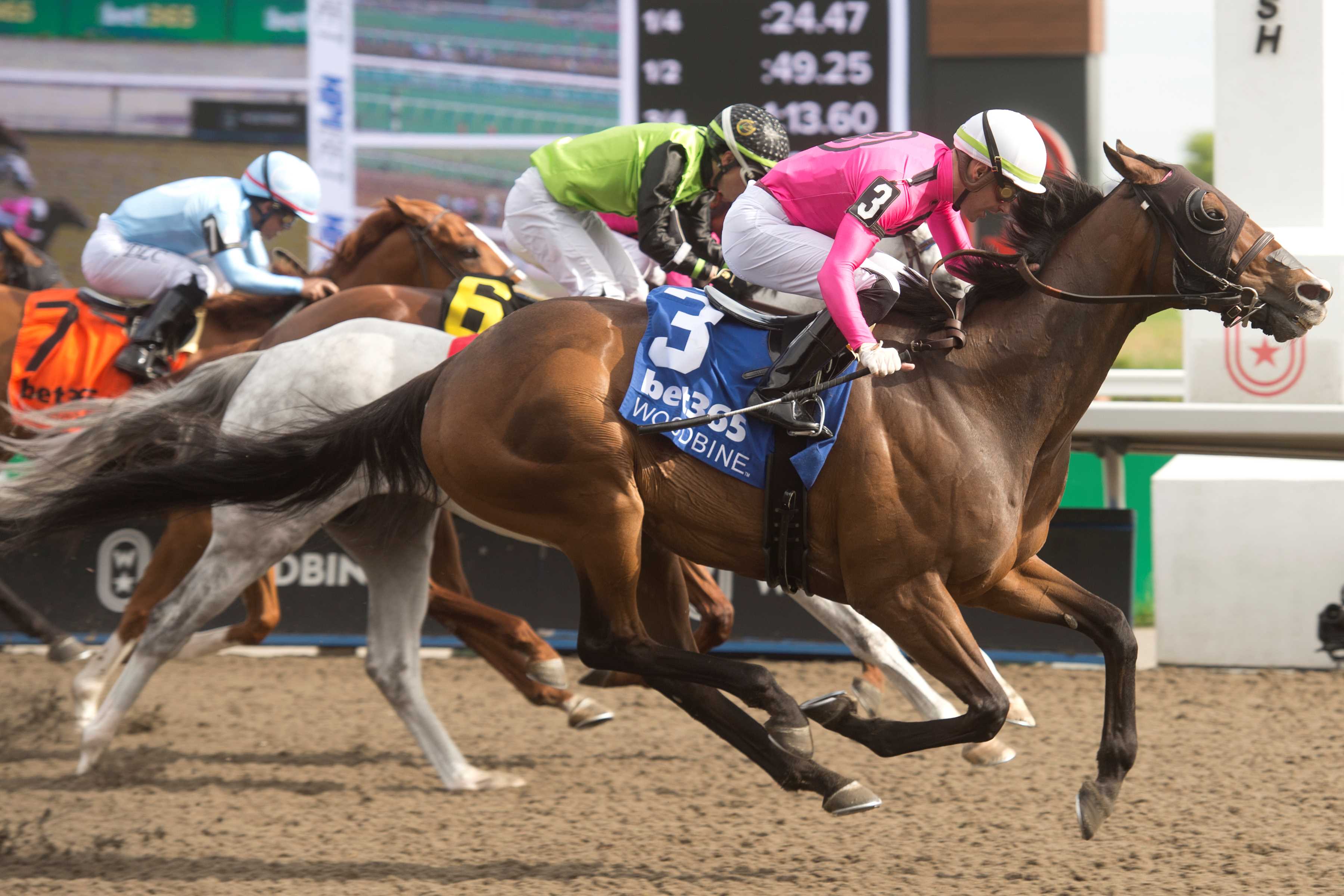 TORONTO, June 1, 2024 – Palazzi, trained by dual Hall of Famer Mark Casse, dug down deep to take the $175,000 bet365 Eclipse Stakes on Saturday afternoon at Woodbine. Making his seventh straight graded stakes appearance, 6-year-old Palazzi, whose last victory came in the Singspiel (G3T) at Woodbine last September, was back in winning form courtesy of a rousing performance in the Eclipse, a 1 1/16-mile main track affair for 4-year-olds and up. Multiple graded stakes victor Get Smokin, who was supplemented to the race, stormed to the front and led Paramount Prince, last year’s King’s Plate winner, by two lengths through an opening panel in :24.47. Palazzi, under Sahn Civaci, sat last of seven. Palazzi and jockey Sahin Civaci winning the bet365 Eclipse Stakes (G2) on June 1, 2024 (Michael Burns Photo) Get Smokin and Paramount Prince, also Casse pupils, continued to set the pace through a half in :49.25, while Palazzi remained seventh. It was status quo for the leaders around the turn, but others, including Palazzi and multiple stakes winner Tyson, soon arrived on the scene. Fifth at the stretch call, Palazzi, on the far outside, was able to reel in his two game stablemates and fend off a hard-charging Tyson to earn a half-length win a time of 1:43.86. Tyson finished a head in front of Paramount Prince, while Get Smokin was a further three-quarters of a length back in fourth. War Bomber, who contested the Grade 3 Jacques Cartier earlier on the card, was scratched. “I did want to be coming off the pace,” said Civaci, who was also aboard the Gary Barber-owned gelding for the Singspiel win. “There were a few speed horses here and I thought that’s the only chance we have. Staying mid-pack, he won’t fire as well as he would. That was the plan and it worked out.” “Usually, he’s really calm in post parade, but today he was more active and bouncing around here and there. I’ve been working him this season throughout, and he’s been working great.” Bred by HnR Nothhaft Horseracing LLC & Pioneerof the Nile Syndicate, the well-travelled son of Pioneerof the Nile-Kindle broke his maiden in his fifth start, at 15-1, in a one-mile turf race at Fair Grounds on December 19, 2020. His first stakes success came in the 2021 running of the Texas Turf Mile Stakes at Sam Houston. Palazzi paid $15.10 for today’s win. Chris Lomon, Woodbine Communications / @WoodbineComms Share This:Share
