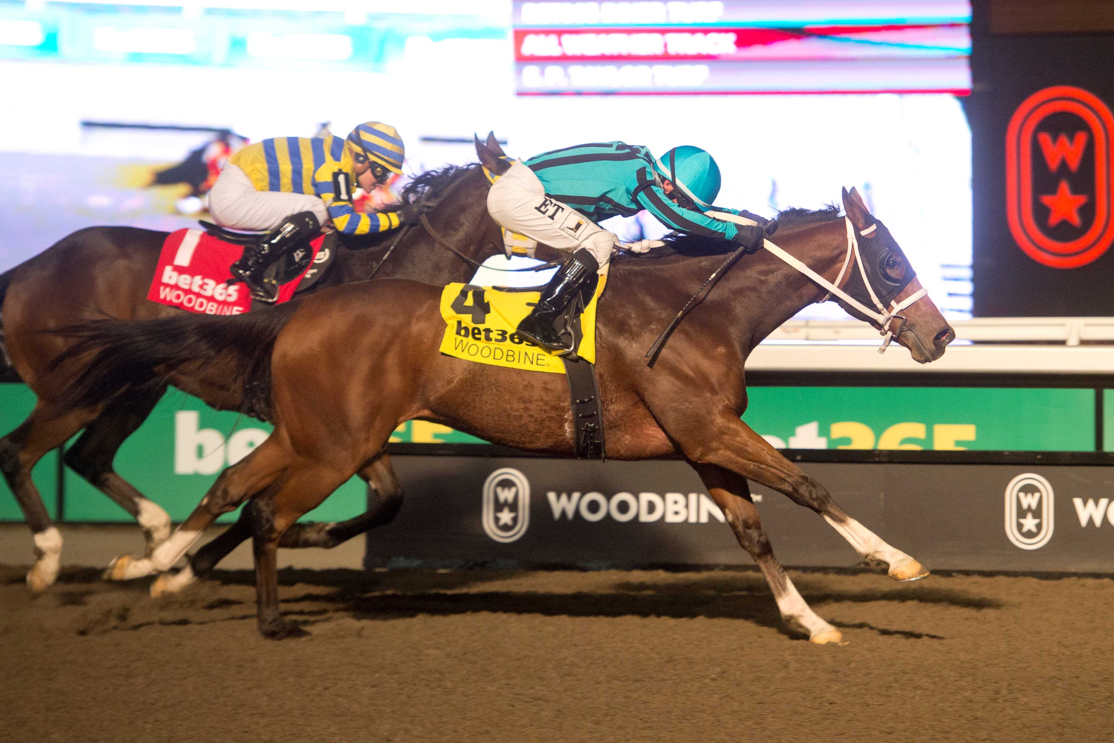 TORONTO, November 16, 2024 – Nobals, with E.T. Baird in the irons, worked overtime to come out on top in Saturday’s $175,000 bet365 Kennedy Road (G2) at Woodbine. The expected sprint showdown between Nobals and local standout Patches O’Houlihan materialized at the outset of the six-furlong main track tilt for 3-year-olds and up, with the speeders locking horns seconds out of the gate. It was multiple graded stakes winner Patches O’Houlihan, riding a four-race win streak, who fired the first shot, grabbing the lead after breaking last of six, as 2023 Breeders’ Cup Turf Sprint champ Nobals, winless in three tries this year, shadowed his rival through a lively opening quarter in :21.80. The front-end tussle carried on after a half in :44.24, as the duo continued to spar coming off the turn for home. Nobals, to the outside, looked to wear down Patches O’Houlihan, and took a narrow advantage in mid-stretch, but the 11-time winner from 13 starts, feted as Canada’s champion male sprinter of 2023, fought back gamely along the inside. With 20 yards to the wire, Nobals finally gained the upper hand to prevail by a hard-fought three-quarters of a length in a time of 1:08.59. War Bomber (IRE) was third. Remuda and Armstrong dead-heated for fourth. Nobals and jockey E.T. Baird winning the Kennedy Road Stakes (G2) on November 16, 2024 at Woodbine (Michael Burns Photo) Baird, who found out he had the mount just days ago, had to scramble to get to Toronto. “I rode him before, but I was actually caught off guard,” said Baird. “Larry (trainer, Rivelli) had given me a call, I think maybe on Thursday, and told me I was going to Woodbine on Saturday. My passport expired, so I was all day yesterday at the passport agency in Chicago. I went in there at nine o’clock and made it home at eight o’clock at night.” It ended up being well worth it. “My horse broke really well, and I was happy because I let him come out of there running,” said Baird. “He just sat real comfortable and it worked out well.” It was a triumphant return to Woodbine for 5-year-old Nobals. Nobals and jockey E.T. Baird winning the Kennedy Road Stakes (G2) on November 16, 2024 at Woodbine (Michael Burns Photo) In 2022, the son of Mission (GB) out of the Empire Maker mare Pearly Blue won the Woodstock Stakes on May 1 and finished twelfth in the Grade 3 Bold Venture three months later. Baird felt confident about his chances the moment he stepped on the track Saturday. “The way he acted today, in the post parade and everything about him, was really professional. I had a really good feeling about him in the post parade. He was wanting to jump and move and seemed really bright and ready to go at it.” With the win, Nobals, owned by Patricia’s Hope LLC, is 11-3-0 from 22 starts, to go with over $1.6 million in career earnings. The next stop for the well-travelled gelding is a date in Hong Kong for the 2024 Longines Hong Kong International Races at Sha Tin Racecourse Sunday, Dec. 8., to compete in the HK$26-million ($3.35-million U.S.) Sprint. Bred in Kentucky by Dr. John A. Chandler, Nobals was a $3,500 (U.S.) purchase at the 2020 Fasig-Tipton Fall Yearling Sale. He paid $8.40 for the Kennedy Road win. Chris Lomon, Woodbine Share This:Share