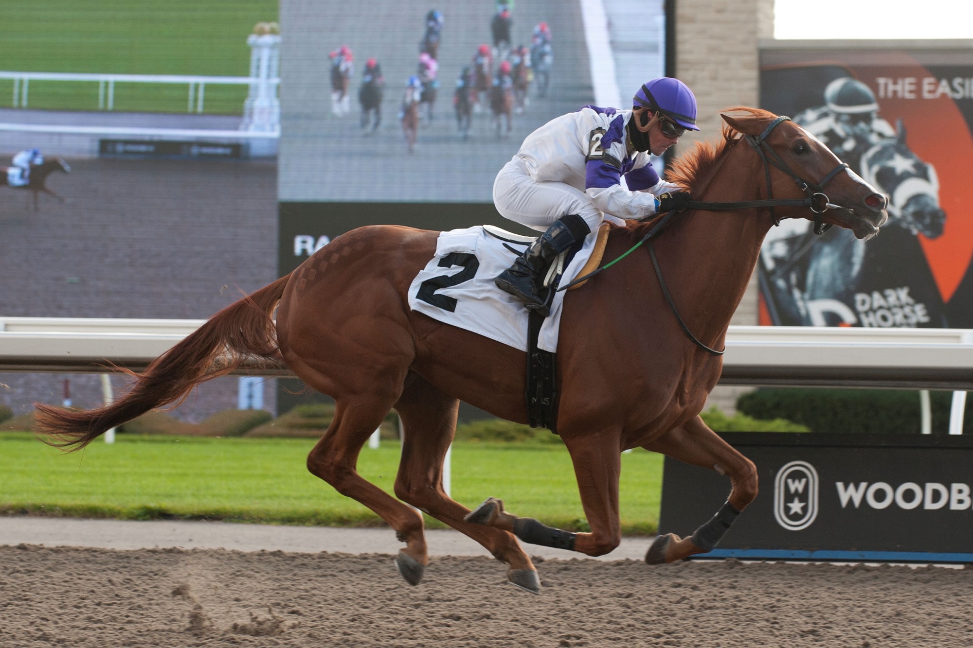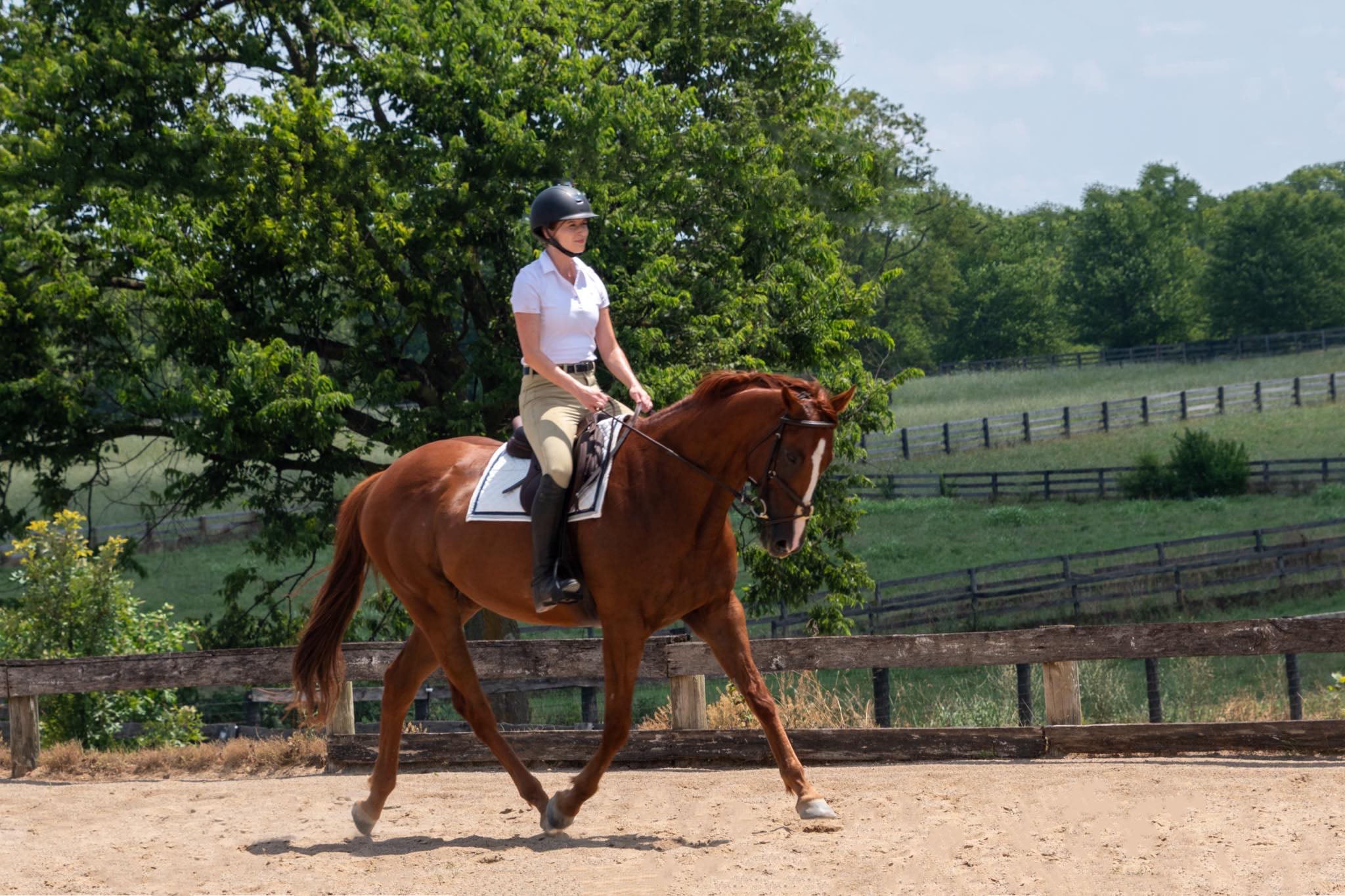 For years, Hannah Reynolds would gaze out the window of the Kentucky farm and envision the strapping chestnut gelding looking right at home in the grassy field. The tight-knit Reynolds family, who call the Bluegrass State home, had special reason to track the racing life of Pitching Fast, a handsome son of Munnings who would make the first start of his career at Turfway Park on December 4, 2019. Hannah’s adoration for the horse named after former MLB star and baseball hall of famer Walter Johnston was forged long before he stepped into the starting gate for that milestone moment four-plus years ago. “My father [Kevin Reynolds] bred him,” said Hannah, of the horse who was co-bred by Kellie Holland and Tim Holland. “He always had a special place in his heart for this horse. So did I.” Pitching Fast stepped into the 2018 Keeneland September Yearling Sale ring as Hip No. 2467. He was sold for $40,000 to Up Hill Stables by his breeders. The racing career of Pitching Fast would be fleeting, one that started with two races at Turfway Park. After those appearances, which yielded a fifth and a seventh, he made his way to Woodbine, specifically, to the barn of trainer Rachel Halden. Pitching Fast raced four times at the Toronto oval, winning his final two starts. On October 31, with Justin Stein in the irons, he took on 10 rivals over seven furlongs on the Woodbine main track. Under cloudy skies, Pitching Fast got away ninth and moved up to sixth by the half-mile marker. Fifth and gaining at the stretch call, he seized command and crossed the wire a 2 ¾-length winner as the 7-2 second choice. It would mark his final start. Pitching Fast and jockey Justin Stein at Woodbine (Michael Burns Photo) “I watched video of those wins more times than I can recall,” said Hannah. “Everything about him, his stride, his heart, was compelling.” When Halden and owner Leonard Zenith discovered Pitching Fast had tendonitis, the decision was immediately made to retire the horse. The chestnut soon found a home with LongRun Thoroughbred Retirement. Established in 1999, LongRun is one of the most respected horse retirement and adoption organizations, and the first industry-funded adoption program in Canada. Its picturesque property, home to over 50 retired Thoroughbreds, is situated in Hillsburgh, less than an hour’s drive northwest of Woodbine Racetrack. Not long after Pitching Fast stepped off the van at the 100-acre property in December 2021, Hannah and her father were in contact with the organization’s staff. “We found out that he had been given to LongRun and in my mind, I had him back before I had even signed the adoption papers,” Hannah said with a laugh. “But I understood that I had to fill out the forms and that they had to ensure he was going to a loving home.” That is exactly what LongRun staff discovered. “We called him [Pitching Fast] Walter,” recalled Lauren Millet, LongRun’s farm manager. “He wasn’t with us very long for a rehab horse, only six months. “The main thing I remember is that he came in December at the end of racing season in 2021. We also have a lady who works at the track during the year, but when the track closes, she comes and works with us over the winter. She really took a liking to Walter, and she groomed him, cared for his feet and wrapped his legs every single day while she was here. He was such a fun, kind horse. “When we heard from Hannah that her family had bred Walter and that she wanted to adopt him for his second career, we thought it was really cool that the family who bred the horse and followed him throughout his career, wanted to give him his retirement.” Hannah put in a lot of steps the day Pitching Fast was to arrive at her farm. “LongRun sent me photos and information – he was 17 hands and gorgeous. But I had these butterflies, and I couldn’t sit still on the day he was scheduled to come here.” She watched intently as the trailer pulled into her property. “It was surreal. He came on a massive trailer – a professional hauler – and there is a tiny road that leads into our farm. This big, beautiful creature hops off the trailer and is all business.” Hannah was not the only overcome with joy. Kevin Reynolds and Red (formerly Pitching Fast) “My dad is so happy to have him back. My dad will say, ‘The Red Rocker, it is so good to see you!’ I don’t know why he calls him that, but he does. He will come visit him and take him out to graze or just spend time with him. It’s wonderful to see them together.” Hannah’s husband, Jeremy Maynard, has also taken a shine to Pitching Fast. The feeling is mutual. “He sees my husband coming and he will gallop from whatever part of the field he is in because he thinks, ‘If this man is here, I get treats.’ He always has his head out of the stall hoping someone will come by and pay attention.” Hannah and Jeremy with Red and friend Pitching Fast has gained plenty of attention in a new arena. Hannah, a lifelong show jumping participant, introduced the horse affectionately known as “Red” to dressage after he fully recovered from his tendonitis. “Red is so smart and always up for a challenge. The first show he did was dressage at RRP (Retired Racehorse Project), so there are thousands of competitors that go to that show. “He was so professional the whole time. He never put a hoof out of line. It was as though he knew what he was there to do and was very serious about it. He scored in the high 60s for his first recognized show, which is a very good number.” The plan is to stay on the show path. Where it will lead Hannah and Red is to be determined. Red at his new job “I want to see him continue to develop as a nice show horse. He has shown in Hunters, Jumpers, Dressage – I’m not sure what he likes the best, but I am excited to figure it out. “He has growing and learning to do, but he will get there – we will get there together.” Red has taken others