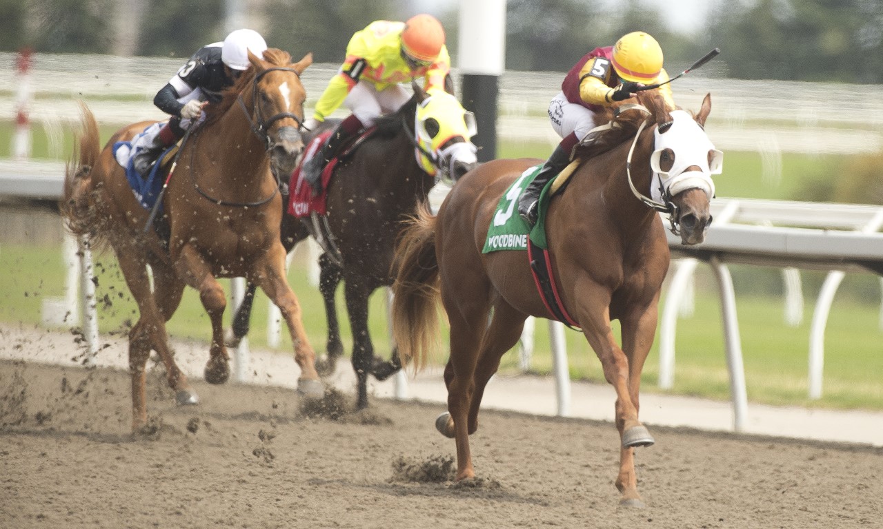 TORONTO, July 17, 2022 – Poulin in O T didn’t need any late race heroics to capture Sunday’s $125,000 Victoria Stakes at Woodbine Racetrack. The Steve Owens trainee, named for Canadian women’s hockey hero Marie-Philip Poulin, posted a statement 3 ¼ length victory over five rivals in the 5 ½ furlong event for two-year-olds on the Tapeta. Owens admitted he was surprised by how easy his rookie won the Victoria. “I would be a lot surprised (if told pre-race Poulin in O T would win easily) because there is a lot of preparation to get to this particular event,” said Owens. “We gave him a hard workout the other morning just because he didn’t get enough out of it a week and a half ago, so he worked :34.2 to get some air into him and today was a performance from that workout.” Poulin in O T and jockey Luis Contreras calmly got away third in the early stages before rushing to the lead heading into the turn. The gelded son of Reload had separation on his rivals at the head of the lane and would power home to win in a final time of 1:04.71. Even-money choice Battle Strike finished second, while Velocitor held off Kaukokaipuu for third. Following up a victory from June 24, Poulin in O T is now two for two to start his young career for owners Owens and Empress Stable. The stakes victory is extra sweet for Owens as Poulin in O T is homebred. “There is a lot of hours that go into this, especially 3 a.m. starts every morning. You get to see them develop from the day that they’re born and until the day they make their appearance at Woodbine.” Poulin in O T and Luis Contreras winning Sunday’s Victoria Stakes. (Michael Burns photo) A $2 win ticket on Poulin in O T returned $8.50. Live racing resumes Thursday at Woodbine Racetrack. Post time is 5 p.m. Share This:Share