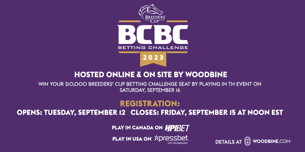 TORONTO, September 13, 2023 – Woodbine Entertainment will be hosting a Breeders’ Cup Betting Challenge on this Saturday’s Turf Champions Day, headlined by the Grade 1 Ricoh Woodbine Mile. The 2023 Woodbine Mile Breeders’ Cup Betting Challenge is a “real money” online and onsite handicapping tournament, opening to players across North America. Registration to play online is available through HPIbet in Canada and Xpressbet in the United States. Online registration is open now and closes Friday, September 15 at 12 p.m. (ET). Players looking to participate on-site Saturday at Woodbine will go to “The Nook”, located on the Third Level beside Champions Bar. Check-in opens Saturday at 10 a.m. and registration closes at Noon. Those playing on-site will enjoy a continental breakfast while they prepare for the tournament. Lunch and refreshments are also provided during the tournament for those participating in the tournament area. To participate, the tournament buy-in is $1,353 (CAD) or $1,000 (USD), with $1,015 (CAD) or $750 (USD) for bankroll and the $332 (CAD) or $250 (USD) going towards prize pool). HPIbet and Prestige members can receive a discount on their entry fee if they participate on-site. The discounts are listed below: HPIbet: 5% Prestige Level 1: 10% Prestige Level 2: 15% Prestige Level 3: 20% Prestige Level 4: 25% The 2023 Woodbine Mile Breeders’ Cup Betting Challenge requires participants to wager on a minimum of five (5) races up to and including the Woodbine Mile this Saturday at Woodbine, with minimum wager of $203 CAD on each of the five (5) races. Bet Types: Win, Place, Show, Exacta, Trifecta and Daily Double – No Superfecta wagering. Eligible races: All live Woodbine Races on Saturday, September 16th up to the completion of the Ricoh Woodbine Mile. Prizes included: TWO seats to the 2023 Breeders’ Cup Betting Challenge (est. $1 M purse). TWO seats to the 2023 NTRA National Horseplayers Championship (est. $2.9 M purse). TWO seats to the 2024 Woodbine Mile BCBC Tournament. For official 2023 Woodbine Mile Breeders’ Cup Betting Challenge rules and details, click here. Share This:Share