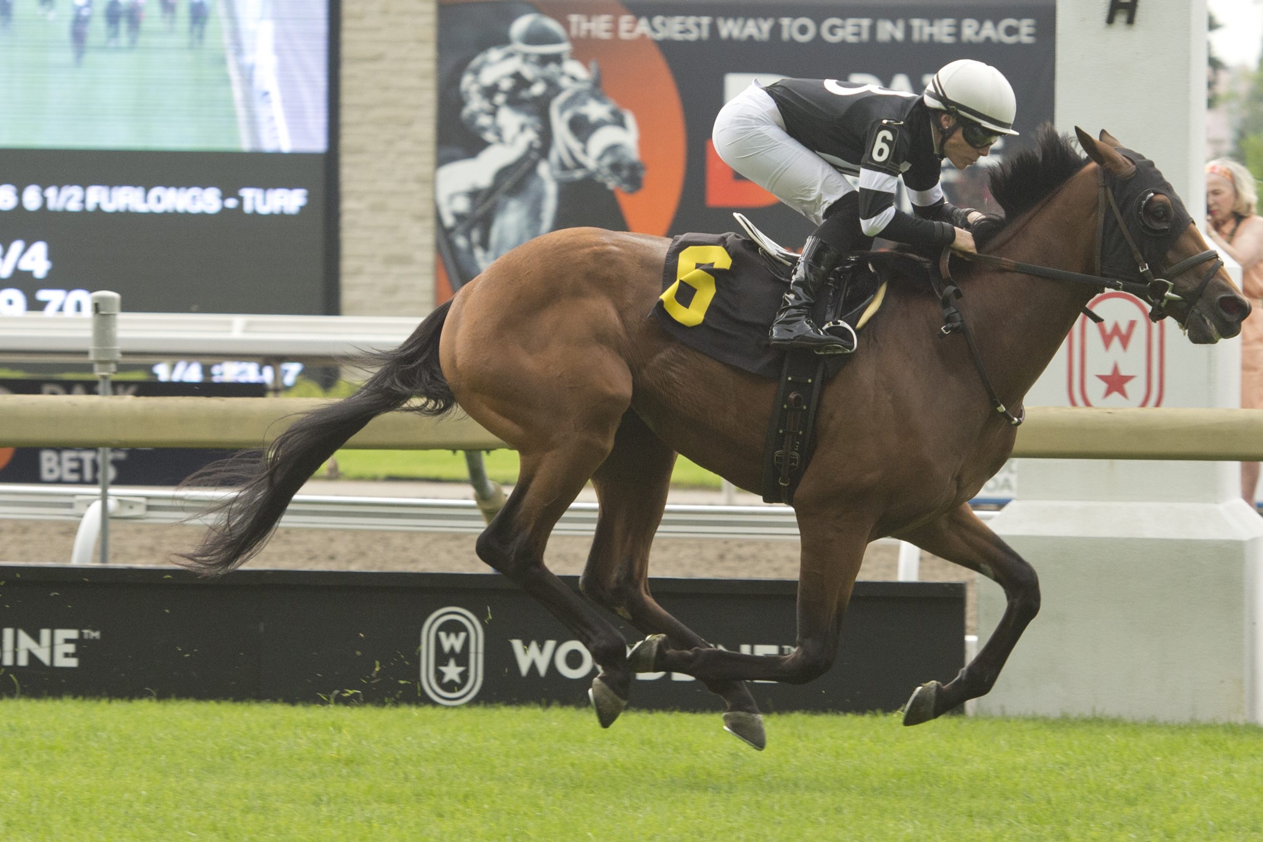 TORONTO, November 1, 2023 – Ten hopefuls, including Barb Minshall trainees Tunechi and Two Ghosts, will go postward in the $150,000 Grey Stakes (G3), part of a Saturday Woodbine card that also features the $150,000 Mazarine Stakes (G3). A bay son of Outwork-Stasha Minasha, Tunechi, 1-0-2 from four starts, arrives at the 1 1/16-mile Tapeta race for 2-year-olds off a game fourth-place effort in the Summer Stakes on (G1T) on September 16. “He missed the Display Stakes (October 15),” said Minshall. “He had the runny nose and cough – which a lot of them have had – so he wasn’t able to run. Knock on wood, he’s doing well, and we’ve got him ready for this race.” Owned by Hoolie Racing Stable, LLC, Legion Racing, Conover Stable and Ribble Farms LLC, Tunechi debuted in May and finished third in the 4 ½-furlong race over the Tapeta. After a third (elevated from fourth) in his next start, at six furlongs on the Tapeta, he broke his maiden in style, a 3 ¾-length score at 6 ½ panels over the E.P. Taylor turf. Tunechi and jockey Emma-Jayne Wilson winning Race 6 on July 23, 2023 at Woodbine (Michael Burns Photo) Originally sold for $20,000 (U.S.) at the 2021 Keeneland Association November Breeding Stock Sale, Tunechi was purchased by the current connections for $40,000 (U.S.) at the 2022 Fasig-Tipton Kentucky Selected Yearling Sale. “I think two turns is right up his alley,” said Minshall of the horse bred in Kentucky by Fred Hertrich III and John Fielding. “He definitely acted like a two-turn horse from the day I got him. He’s not mean, but you just have to watch yourself around him because he’s a big, good-feeling colt.” Minshall’s other entrant, Two Ghosts, brings a record of 1-2-0 from five starts into the Grey. Bred in Kentucky by Ghostzapper Syndicate and Brushy Hill Enterprises LLC, the son of Ghostzapper-Celia’s Song finished second in his most recent engagement, the Display Stakes, contested at seven furlongs on the main track. “I thought he was a winner until that filly [Tripolina] came running by us,” said Minshall. “He ran a good second and I think the distance should help him. He’s a very durable horse, very strong. He’s not a big horse, but he is very strong, physically. The distance, especially with his pedigree, should just help him.” After a pair of fifth-place results to launch his career, Two Ghosts broke his maiden this August courtesy of a head victory in a 6 ½-furlong maiden special weight race. In his next race, he was second, at the same distance and over the same surface. Two Ghosts and jockey Emma-Jayne Willson winning Race 3 on August 27, 2023 at Woodbine (Michael Burns Photo) Owned by Hoolie Racing Stable LLC, Two Ghosts was an $85,000 (U.S.) purchase at the 2022 Keeneland Association September Yearling Sale. “He is kind of funny in the sense that he is very quiet in the stall, but if you don’t know him, he can be very cheeky,” said Minshall. “He is just that kind of horse. He can be a little impatient, you have to keep him moving with the pony. He’ll stop, stamp his feet, and carry on. But he’s always been a real pro once he leaves the gate.” Other starters include Victoria Stakes-winning filly Pipit, trained by Kevin Attard (who also sends out King Rosso) and Mark Casse trio Jayhawk, Midnight Mascot and Sherif Ali. The Mazarine has attracted six starters, including Uphill Dance. Trained by Rachel Halden for Uphill Stable, the daughter of Tonalist-Stormy Below sports a record of 2-0-0 from three starts. Uphill Dance started her career in winning fashion courtesy of a 1 ¼-length score at six furlongs over the Woodbine Tapeta on August 5. After a bump at the break, the dark bay settled into stride and came home in impressive fashion to notch the milestone victory. “She came to me in the late spring,” said Halden. “She actually hadn’t shown a whole lot when she was in the States, where she had been training. When she came to Woodbine, her first work was mediocre, I worked her back with some blinkers on after that and they really seemed to change her around. We did run her for $40,000 in that first start, but that was more on what she had shown up until that point. She won that first start very nicely.” In her next start, a 6 ½-furlong Tapeta race on September 22, Uphill Dance drew off for a four-length win. Uphill Dance and jockey Emma-Jayne Wilson winning Race 3 on September 22, 2023 at Woodbine (Michael Burns Photo) “She did that very well too,” said Halden. “She just hasn’t done much wrong to date.” Last time out, in the seven-furlong Glorious Song Stakes, Uphill Dance circled five-to-six wide on the turn and finished fourth, beaten just 2 ½ lengths. “She got very unlucky with a wide trip. With a better trip, I think she could have been second in that race.” Halden’s praise for her rookie pupil extends beyond her racing lines. The multiple graded stakes winning trainer has been impressed by the maturity the filly has shown since her first start. “She’s a very straightforward, uncomplicated filly. She’s actually a very physically mature filly to look at. She’s quite big, but she’s also mentally mature as well, which makes my job a lot easier.” Halden doesn’t expect any issue with Uphill Dance tackling two turns for the first time in her career. “This is our first opportunity to do it [go two turns]. It just seems logical, considering she’s doing so well. She deserves a chance here and we’re looking forward to it. The owners are great people and it’s exciting for them too. This horse, when she came, there weren’t any big expectations originally. So, it’s nice when they show that they are something more than what everyone had first thought.” Other starters include Display Stakes winner Tripolina and Glorious Song Stakes runner-up Mystic Lake. First post for the 10-race card is 1:05 p.m. Fans can watch and wager on all the action through HPIbet.com, bet365,