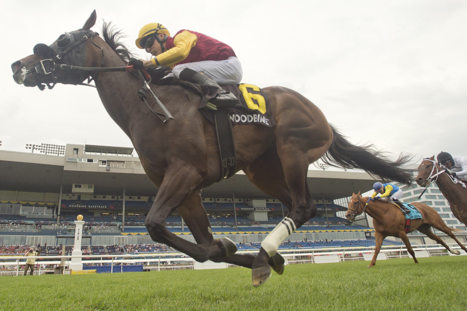 TORONTO, July 8, 2023 – In the Georgian Bay, for 3-year-old fillies, 9-2 Souper Sunday powered home to record her third straight victory and first stakes triumph in a time of :57.24 over firm ground. The margin of victory was 2 ¼ lengths. Trained by Steve Owens, who co-bred with Beverly Lewis and co-owns with Empress Stables, the dark bay filly was making her stakes debut and third start of the campaign. After breaking on top, Souper Sunday yielded the lead to Cara Cara, who took her 10 rivals through an opening quarter in :21.86. Several riders were forced to check along the backstretch, but the frontrunners remained unaffected. Souper Sunday, with Eswan Flores aboard, seized control, finding themselves a length on top at the stretch call, as a determined Cara Cara dug in gamely along the rail, while the duo of Flowers n’ Berries and Foolish Games had rallied into contention. Souper Sunday and jockey Eswan Flores winning the Georgian Bay Stakes on July 8, 2023 at Woodbine (Michael Burns Photo) In the final yards, Souper Sunday pulled away to earn the win. Flowers ‘n Berries was a neck in front of Foolish Games for the runner-up spot. Cara Cara was a further neck back in fourth. A long delay at the starting gate that saw one of her rivals hesitant to load didn’t affect Souper Sunday before the race got underway. “She was standing pretty quiet in the gate,” said Flores. “I was very happy how she handled herself in there. Everything was playing great, even from the gate.” Making her debut last June, Souper Sunday posted a pair of thirds in her first two starts, both sprints over the Woodbine Tapeta. After a ninth and sixth over the E.P. Taylor turf and the Tapeta, respectively, in August, she was third in a $15,000 claiming race at seven panels over the Tapeta in December, and then sent to the farm to regroup for her sophomore season. It turned out to be a winning move by Owens, who has watched his filly go undefeated in three starts in 2023. “Last year, she was growing, a 2-year-old with lots of aches and pains. Rushed her a little bit. In the end, we sent her to the farm. She came back in real good order.” Saturday’s win was a special one for the multiple graded stakes-winning trainer. “The Ontario sire program is what our family always looks for. We are Ontario breeders, and we try and support the industry the best we can.” Souper Sunday, now 3-0-3 from eight starts, paid $11.70 for the win. Chris Lomon, Woodbine Communications / @WoodbineComms Share This:Share