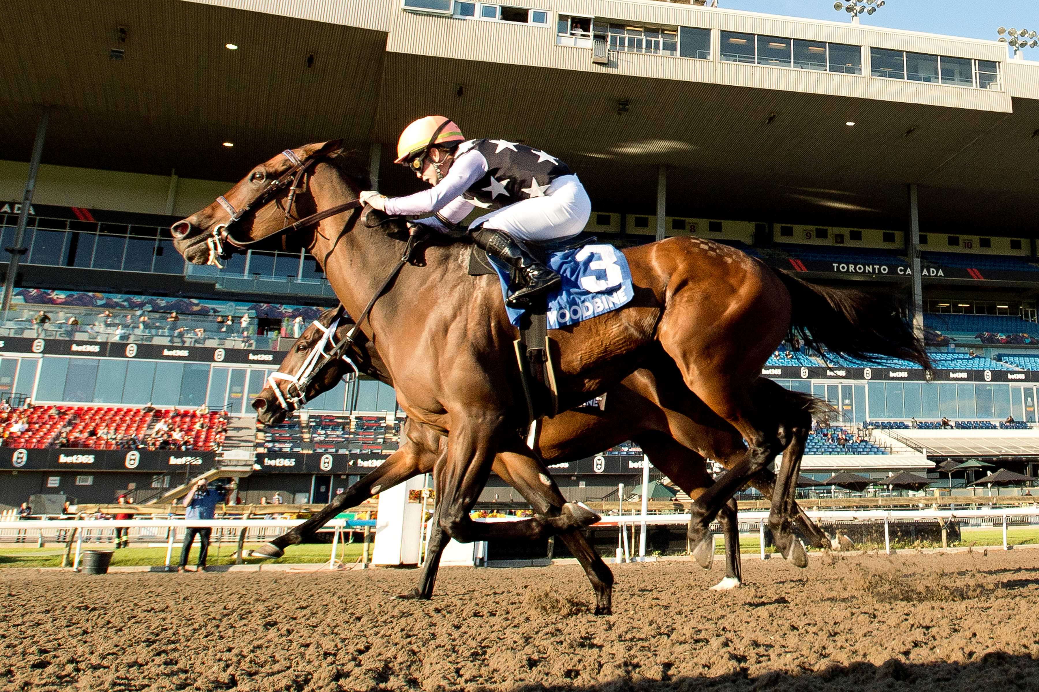 Stakes sizzle, times two Jockey Fraser Aebly had himself a Saturday. The rider celebrated his first Woodbine stakes success when he piloted 27-1 Ecstasy to victory in the Ontario Damsel Stakes and then, one race later, earned his first graded stakes crown when he partnered 48-1 A Game to glory in the Grade 3 Ontario Fashion Stakes. A Game and jockey Fraser Aebly winning the Ontario Fashion Stakes on October 12, 2024 at Woodbine (Michael Burns Photo) Batting .625 Jockey Sahin Civaci won five of eight races on Saturday, including the first and second with Will Reign and Golden Boss, respectively. Woodbine’s leading rider also made trips to the winner’s circle with Mrs. C, My Sunny Valentine, and Tosen Wish (IRE). The multiple graded stakes winning rider is closing in on 600 career victories. Winterberry and jockey Sahin Civaci winning the Glorious Song Stakes on October 13, 2024 at Woodbine (Michael Burns Photo) Thundering struck Thundering, under Eswan Flores, pulled off a 10-1 upset in the $125,000 Display Stakes, Sunday at Woodbine. Sired by Mosler out of the Street Cry (IRE) mare Keep Right, Thundering paid $23.90 for the milestone win. Patrick Dixon trains for owner and breeder Dastur Racing. Thundering and jockey Eswan Flores winning the Display Stakes on October 13, 2024 at Woodbine (Michael Burns Photo) On Tap Live racing continues this weekend. On Saturday, the Grade 3 $135,000 Ontario Derby takes centre stage. The $100,000 South Ocean Stakes and $100,000 Frost King share the spotlight on Sunday. Chris Lomon, Woodbine Share This:Share